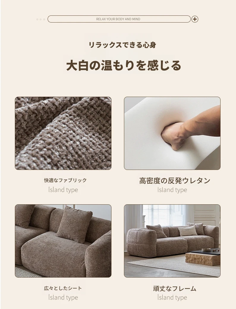 【ラグジュアリー版・座り心地Qバウンス】抗菌防ダニ防水防汚シェニール生地(アップグレードされた幅広で厚い無垢材フレーム+50D高密度スポンジ+ウォッシャブルラテックス)