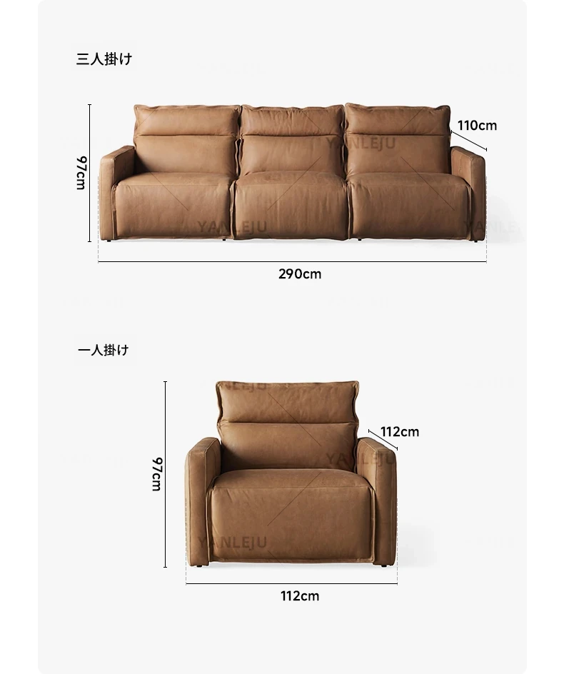 三人用【290*110*98cm】マオタイ/360°全本革 輸入一級牛革/無料サンプルカード郵送
