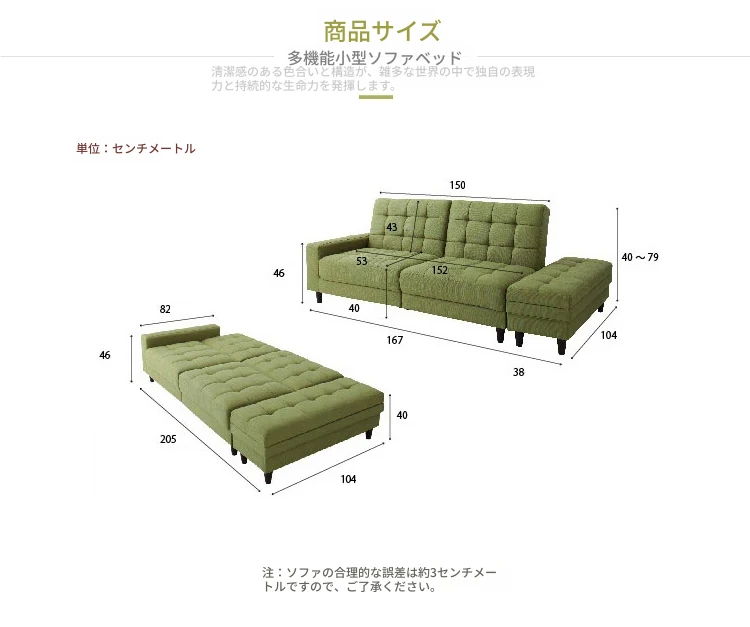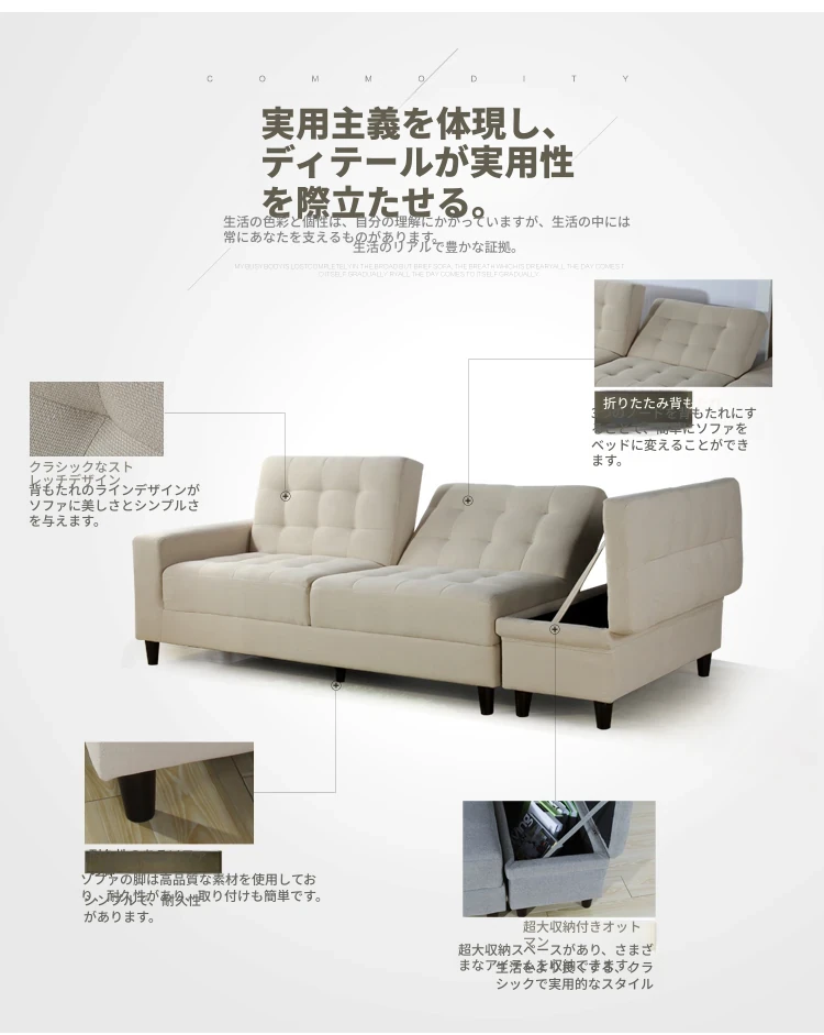 香港直送!小型スペースに最適な収納ソファ。ラテックステクノロジー布製で、折りたたみ可能な2WAYソファベッド。おしゃれで機能的なリビングにぴったり!