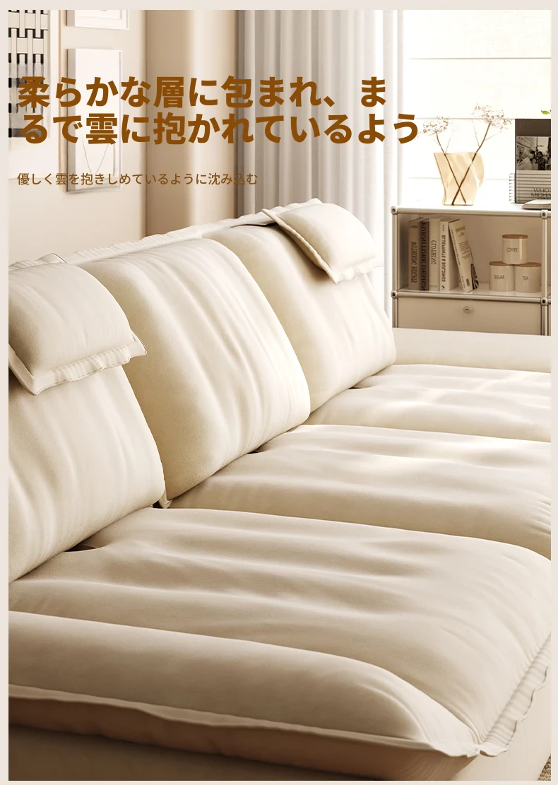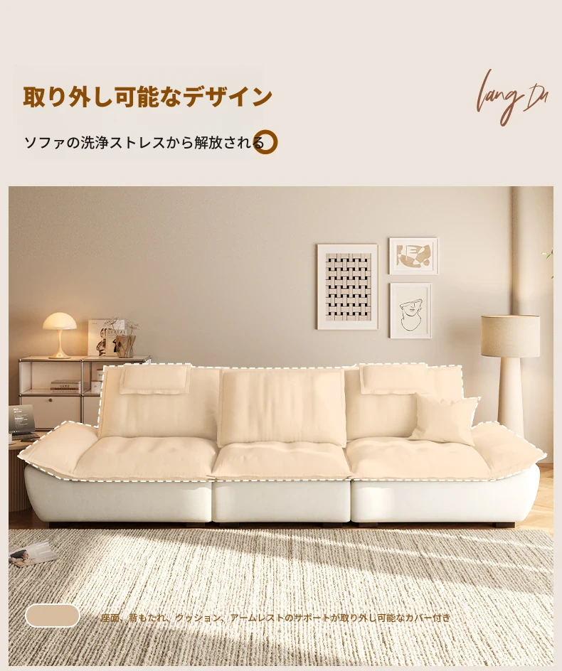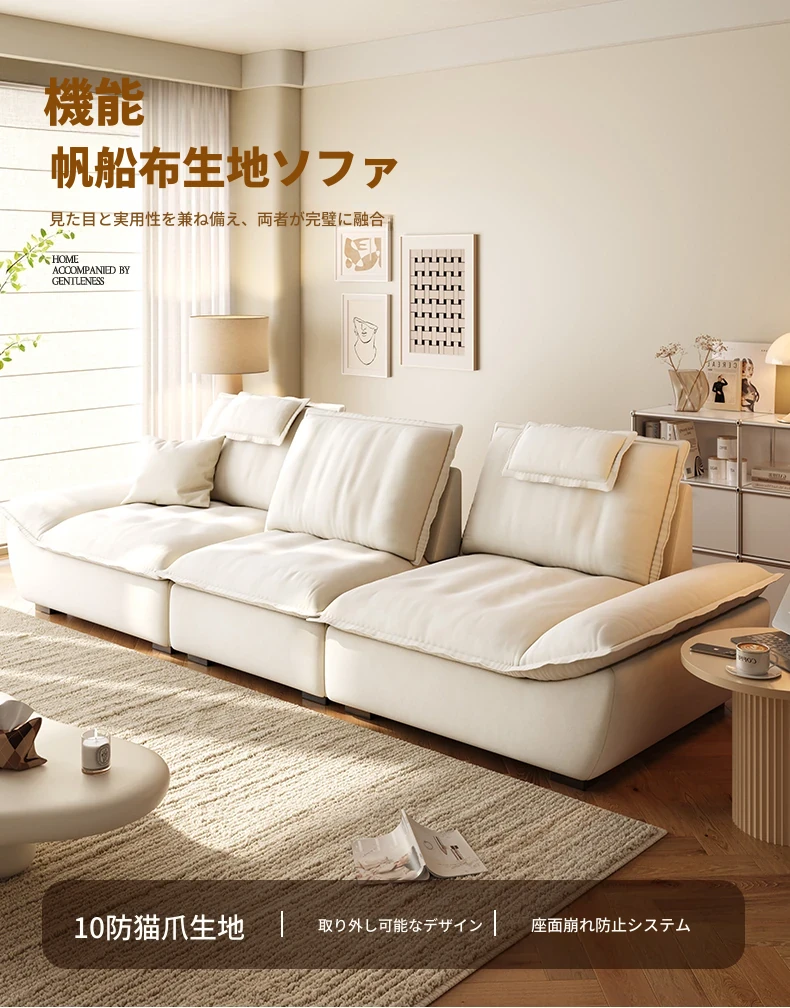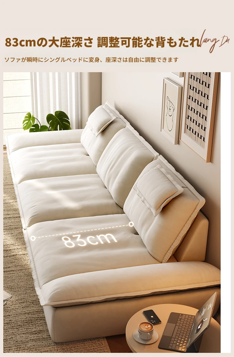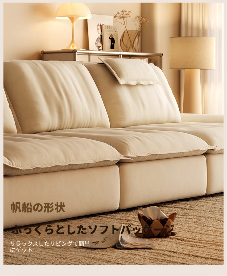 ラウンドクリーム風調節可能な深さのセイルボートソファ|モダンシンプルデザイン|広々とした背もたれで快適な座り心地|移動が簡単な機能付き!あなたのリビングに最適な一品です!
