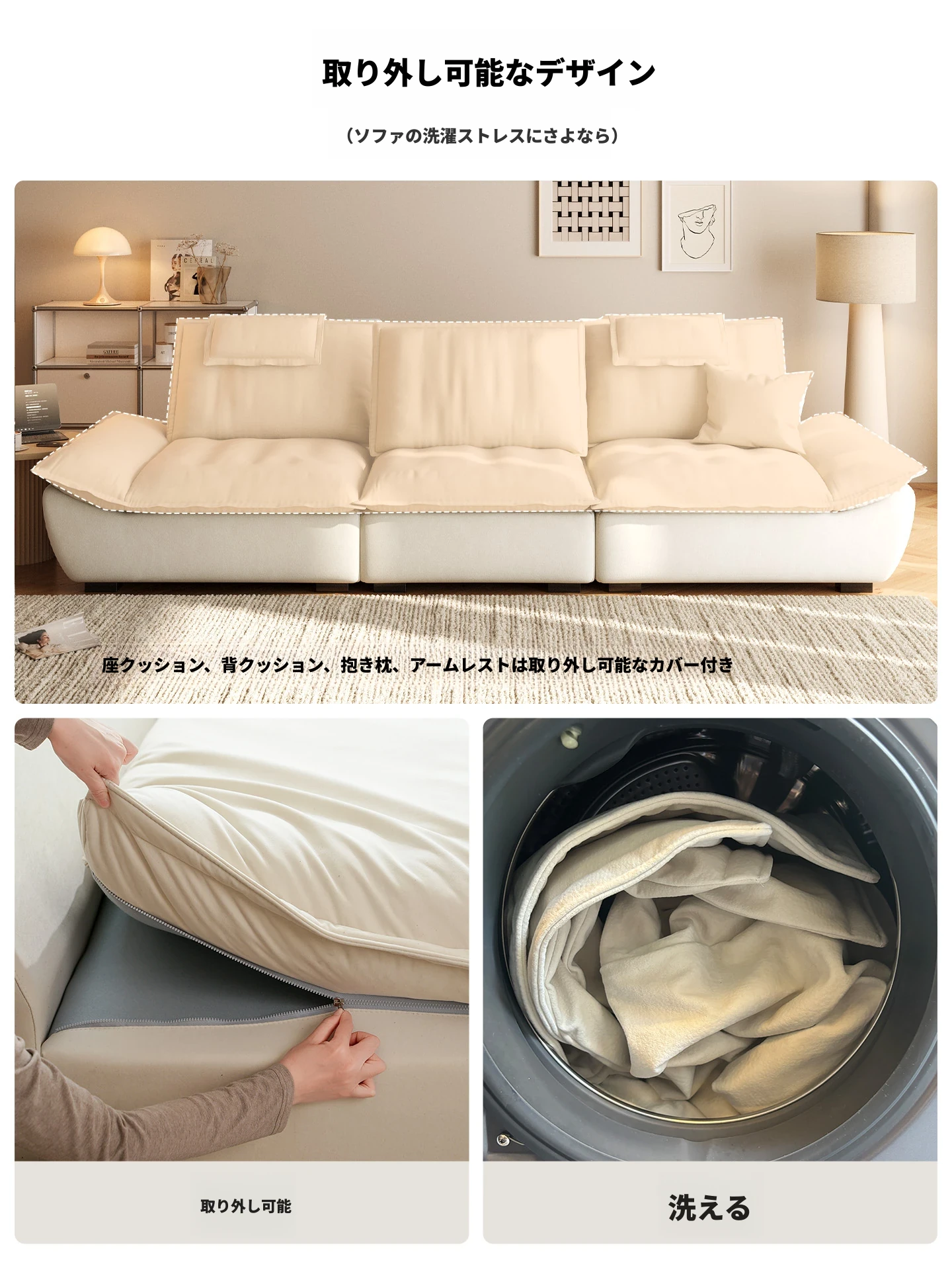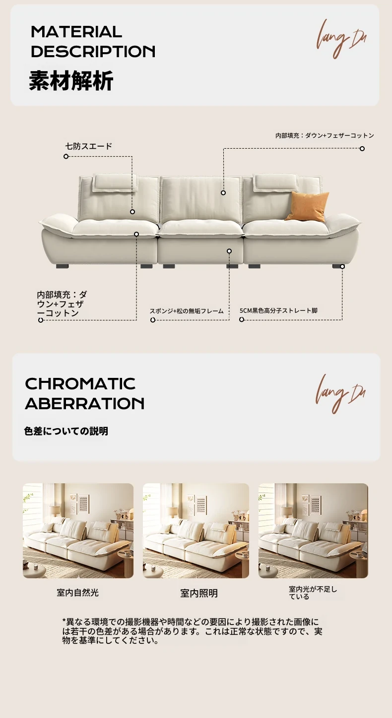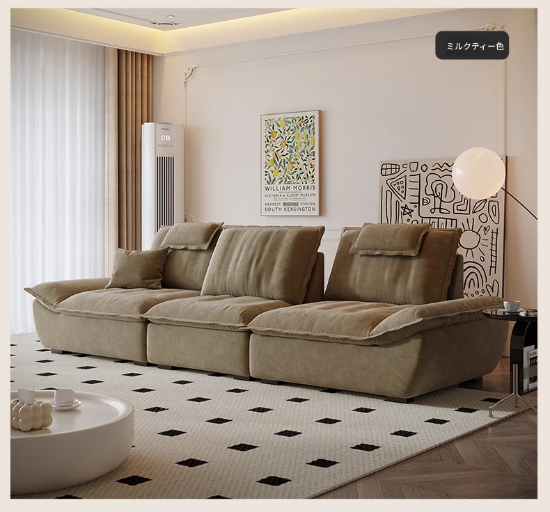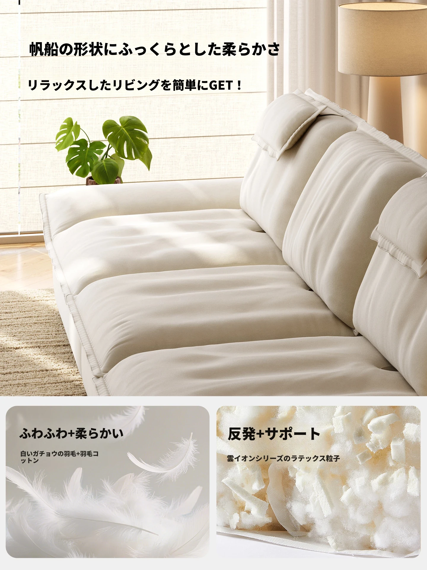 ラウンドクリーム風調節可能な深さのセイルボートソファ|モダンシンプルデザイン|広々とした背もたれで快適な座り心地|移動が簡単な機能付き!あなたのリビングに最適な一品です!