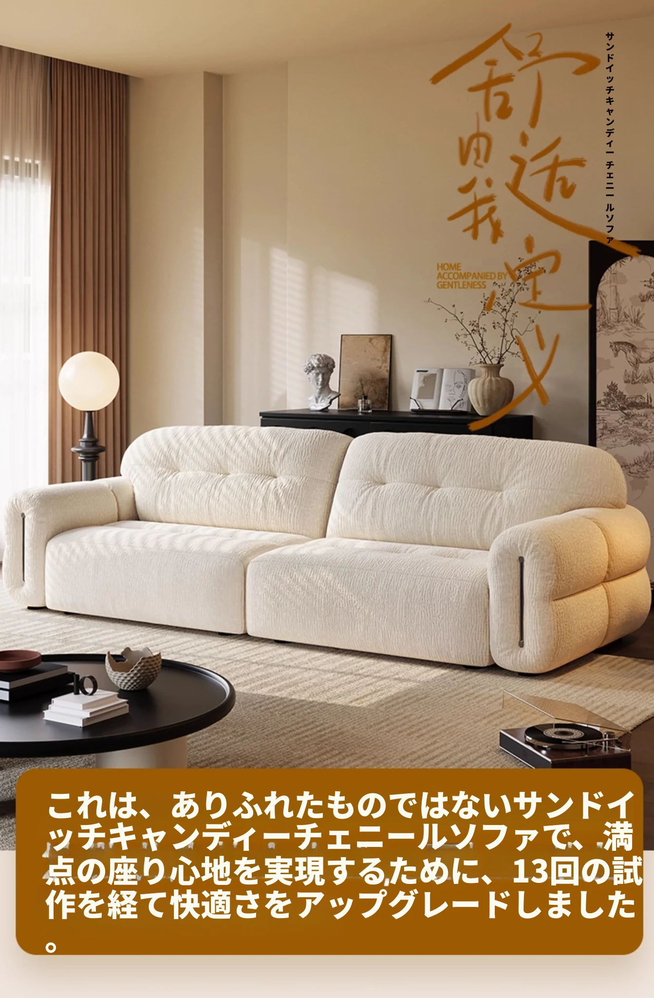 新登場!浪度クリーム風デザインのサンドイッチソファ、シェニールベロア素材で心地よい座り心地。小さなお部屋にもぴったりなスタイリッシュな直排ソファ。2025年の最新モデル、リビングを華やかに彩ります!