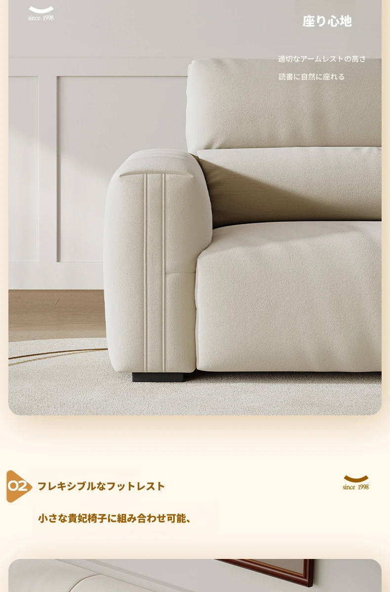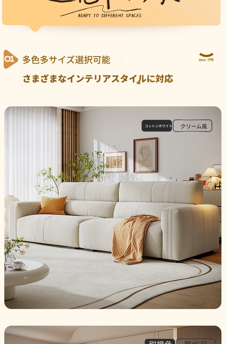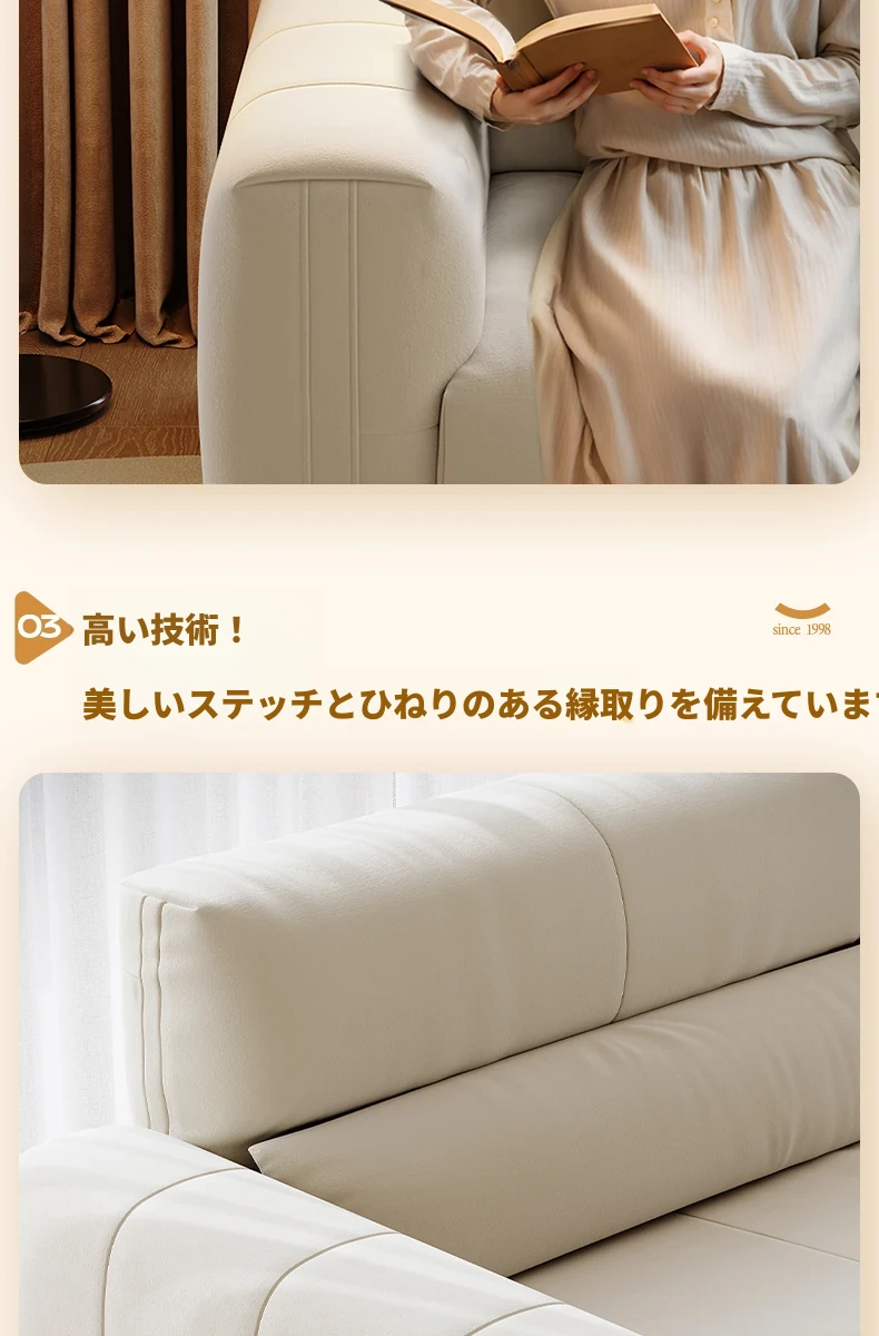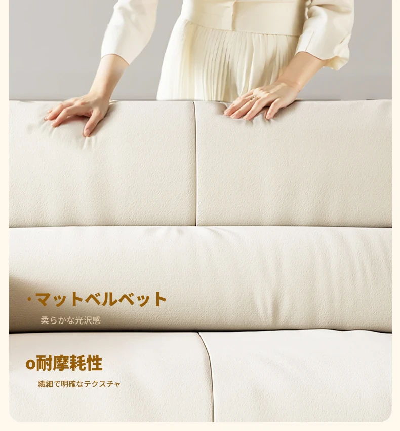 ラウンドピアノキー布製ソファ 小型リビング向け クリームカラーの直立高背クッション 防猫爪対策 おしゃれで快適な空間を演出!