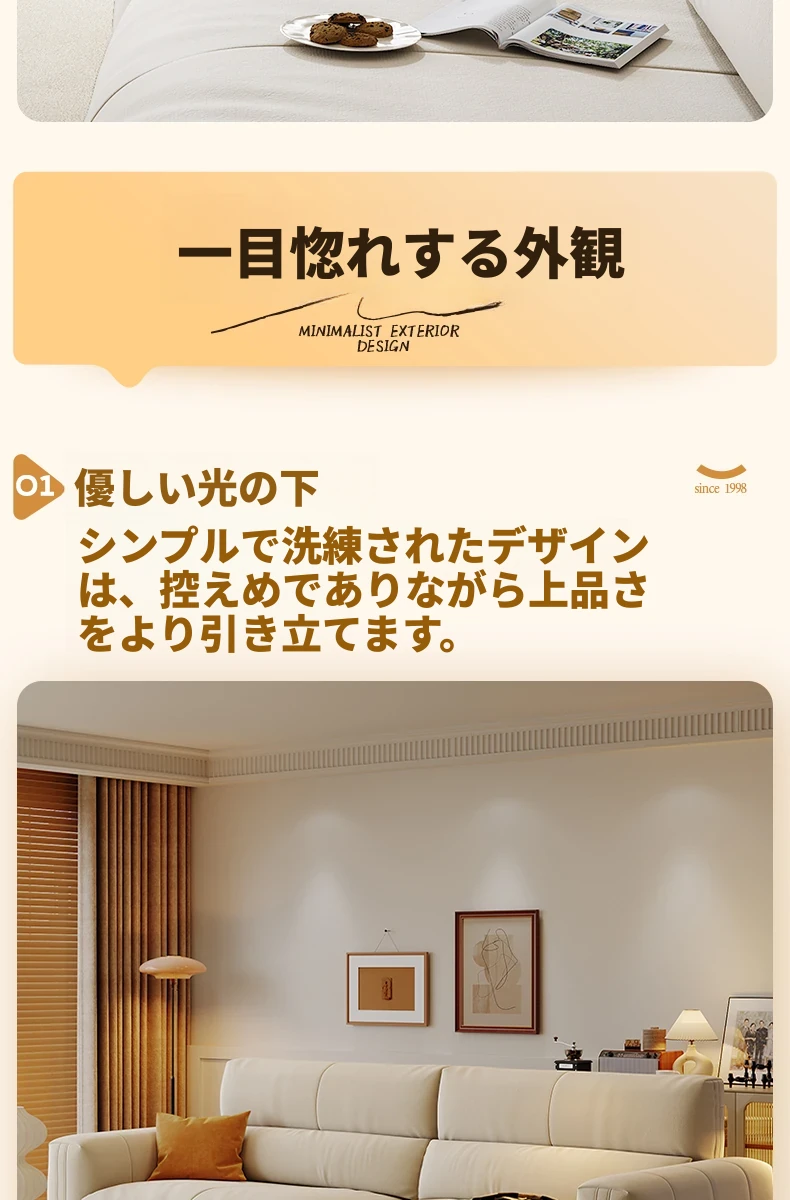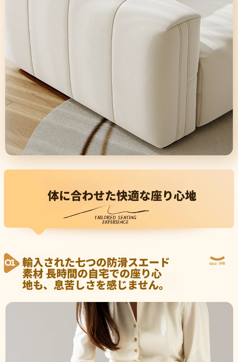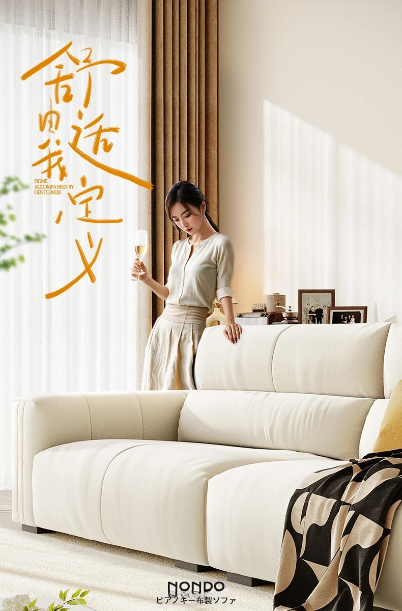 ラウンドピアノキー布製ソファ 小型リビング向け クリームカラーの直立高背クッション 防猫爪対策 おしゃれで快適な空間を演出!