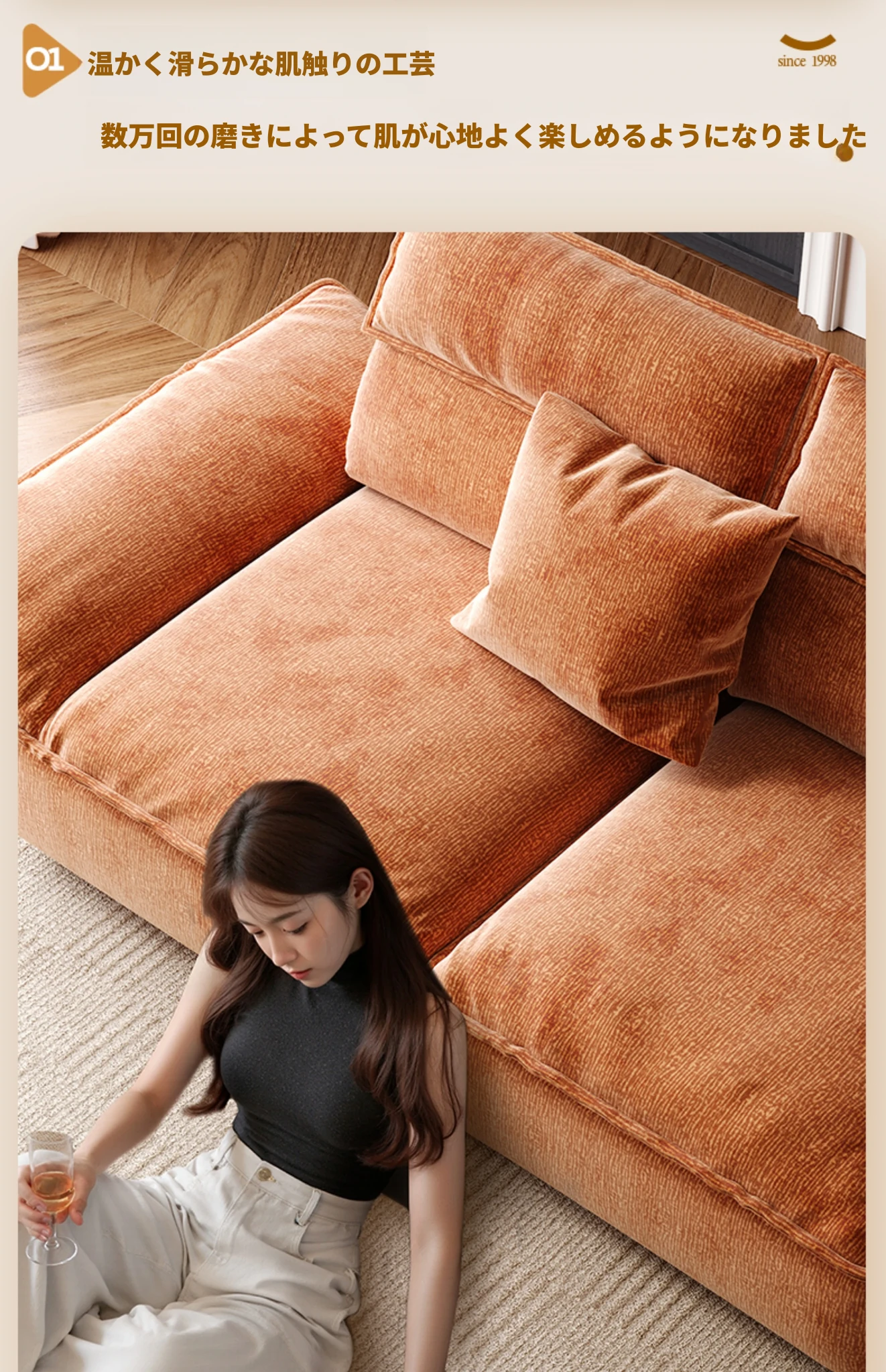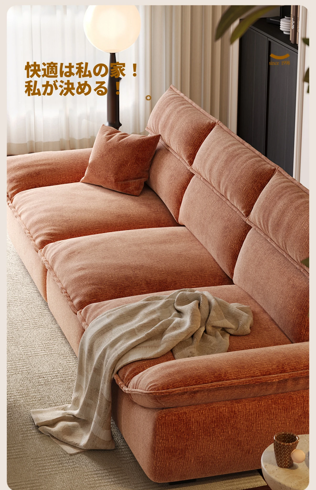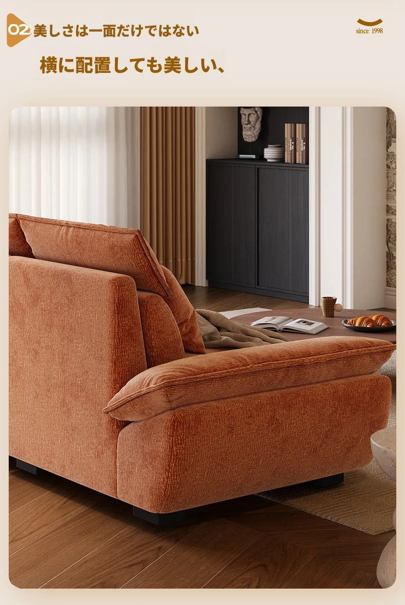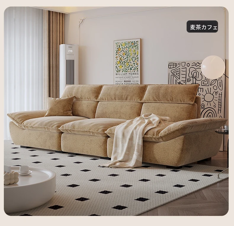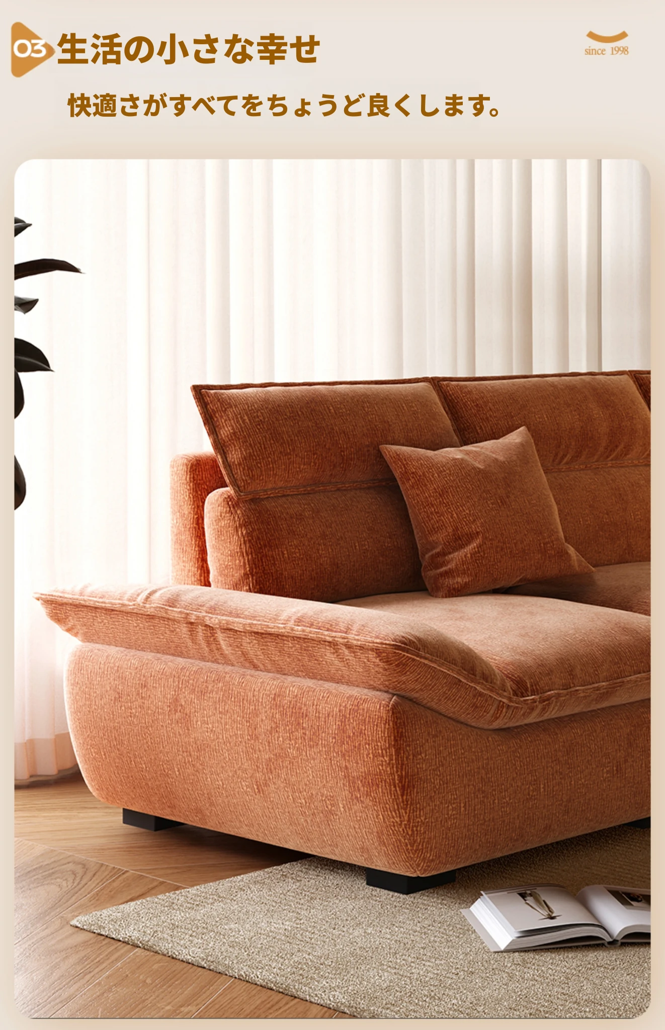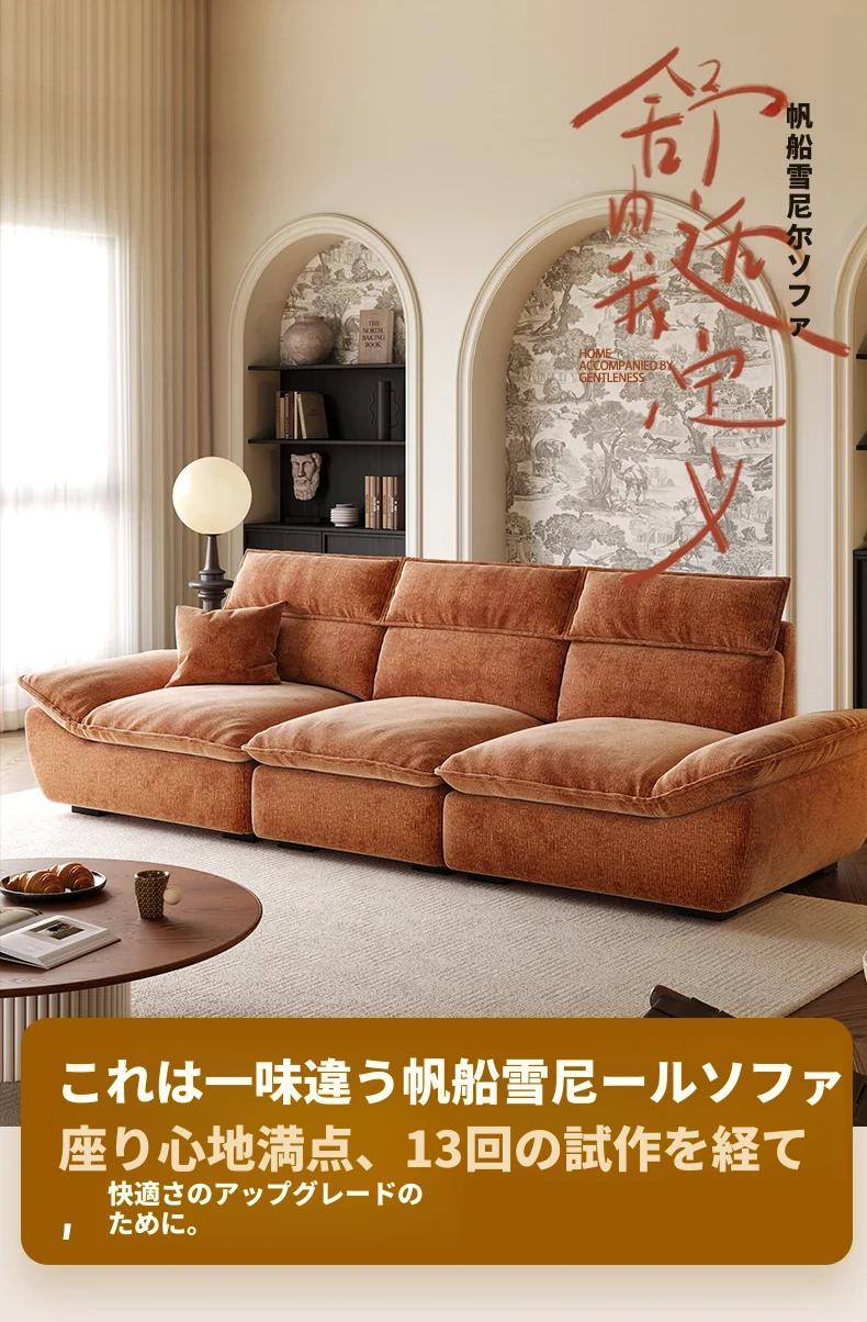 ラウンドハイバック帆船布製ソファー新作!小型住宅にぴったりなクリーム風デザイン、大きな座面で快適さ抜群!猫の爪にも強いシェニール素材使用で、安心してお使いいただけます。