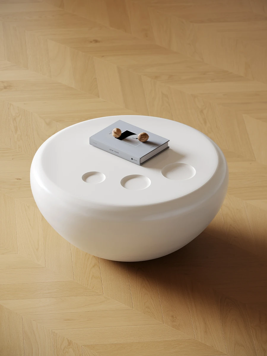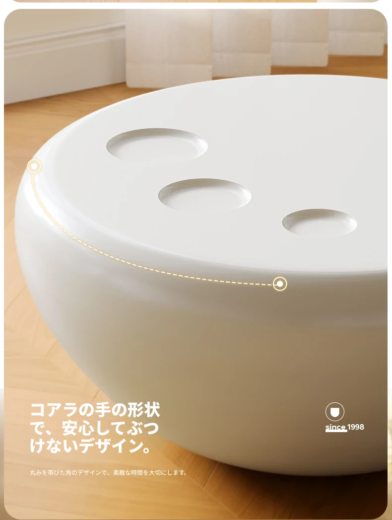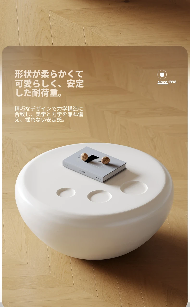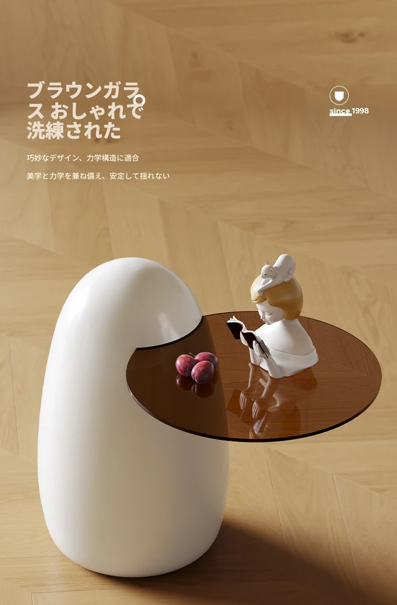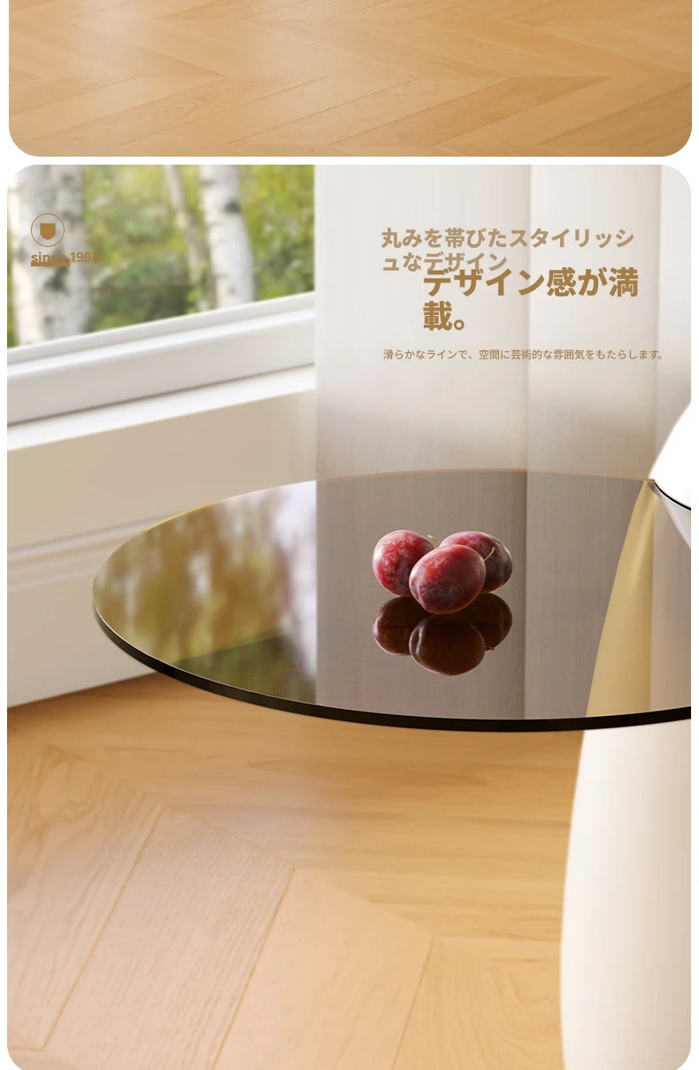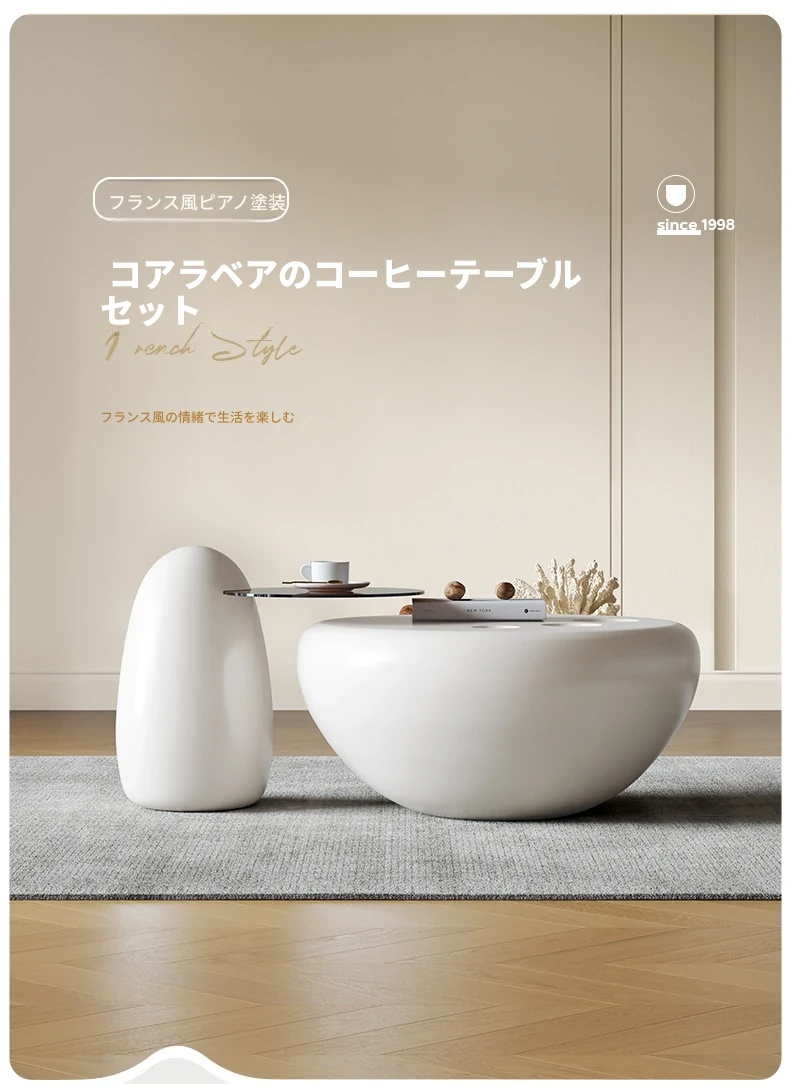浪度ホームのクリーミー風シンプルな円形ネット流行ティーテーブルセット - 小型リビングに最適な高級感溢れるサイドテーブル付き!