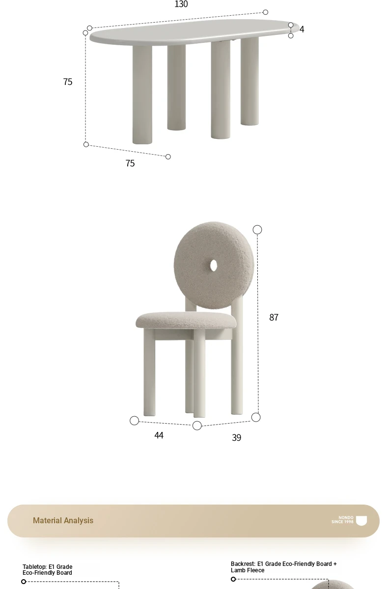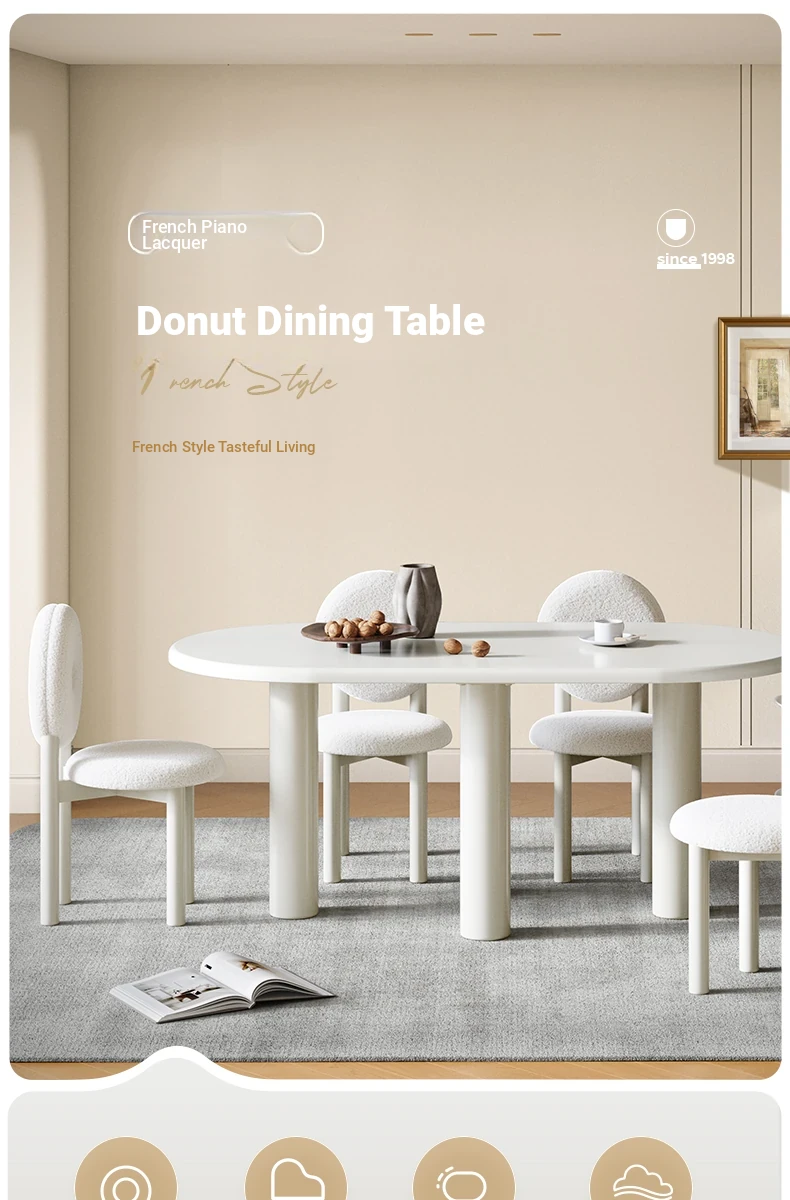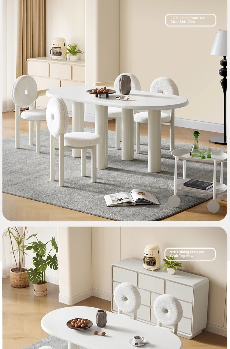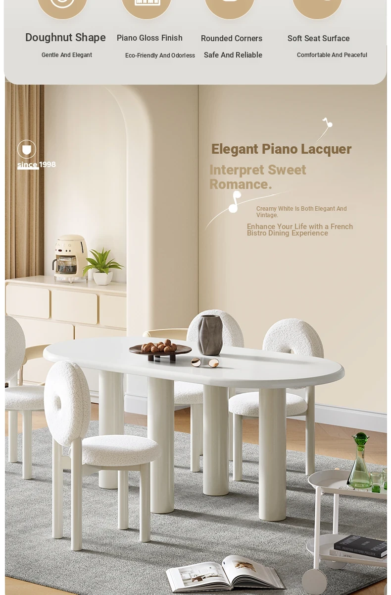 Lando Home Sweet Donut Dining Table and Chair Set - Round Creamy Aesthetic, Minimalist Modern Design for Small Spaces, Perfect for Home Use