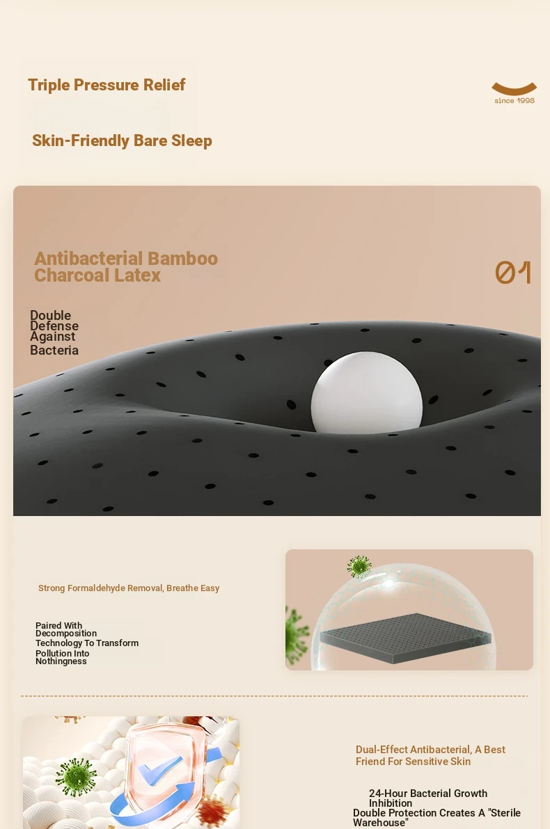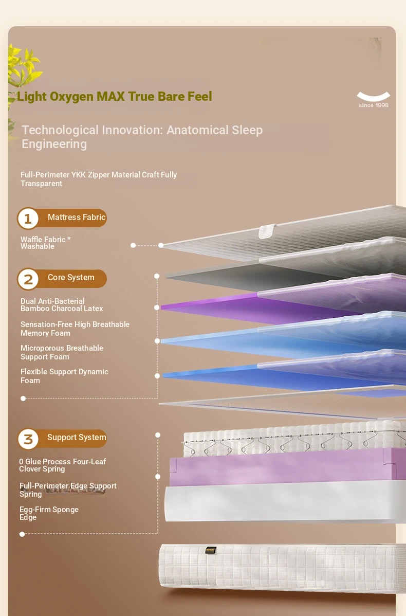 Lando Light Oxygen 0-Pressure Latex Mattress - Spring Class A Antibacterial, Ideal for Babies and Mothers, Thick and Supportive, Perfect for Spine Protection and Comfort in Your Bedroom.