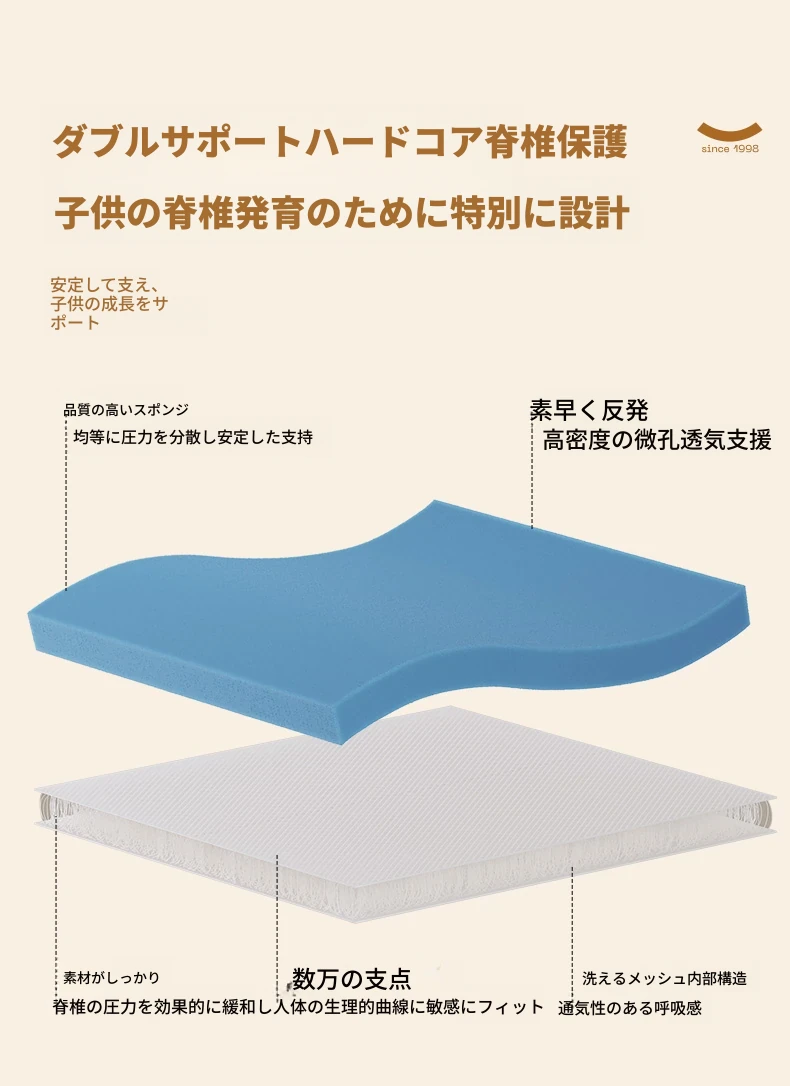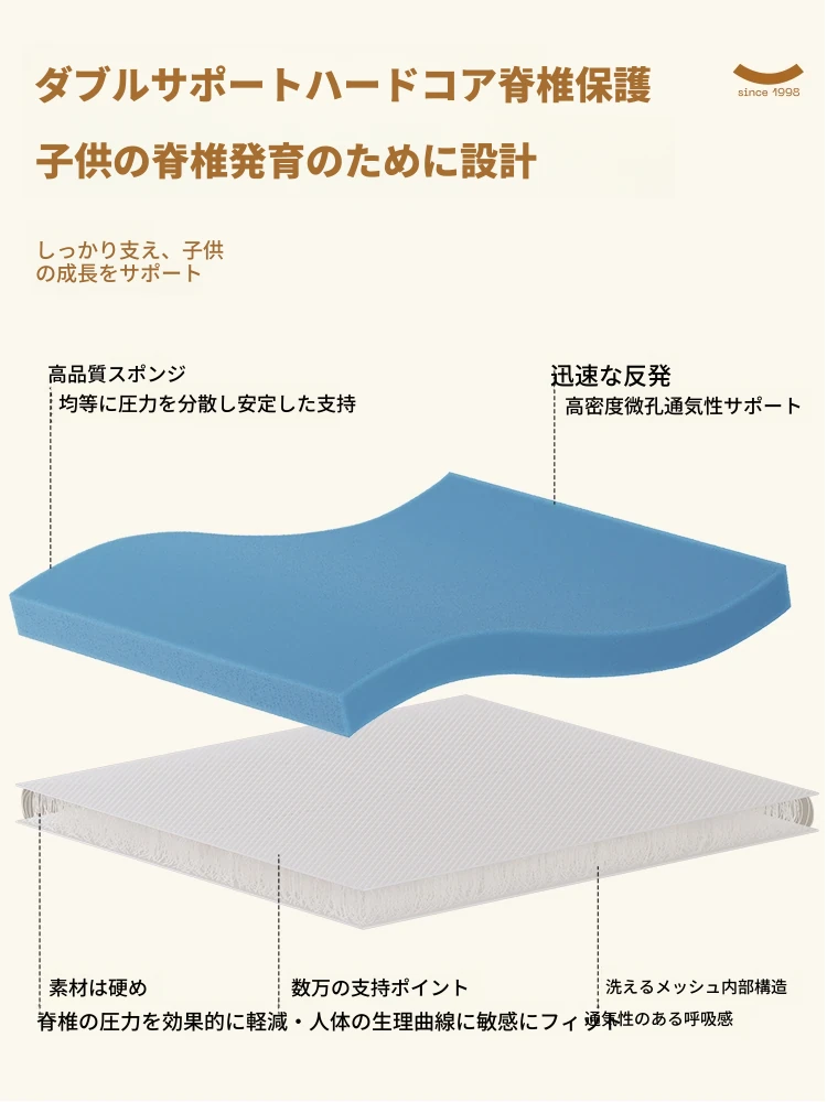 ラウンドマルト0接着剤通気性キッズ&ティーンズ用腰部&脊椎サポートスプリングマットレス - フォーマルデヒドフリーの硬めシモンズマットレスで安心の睡眠を提供!