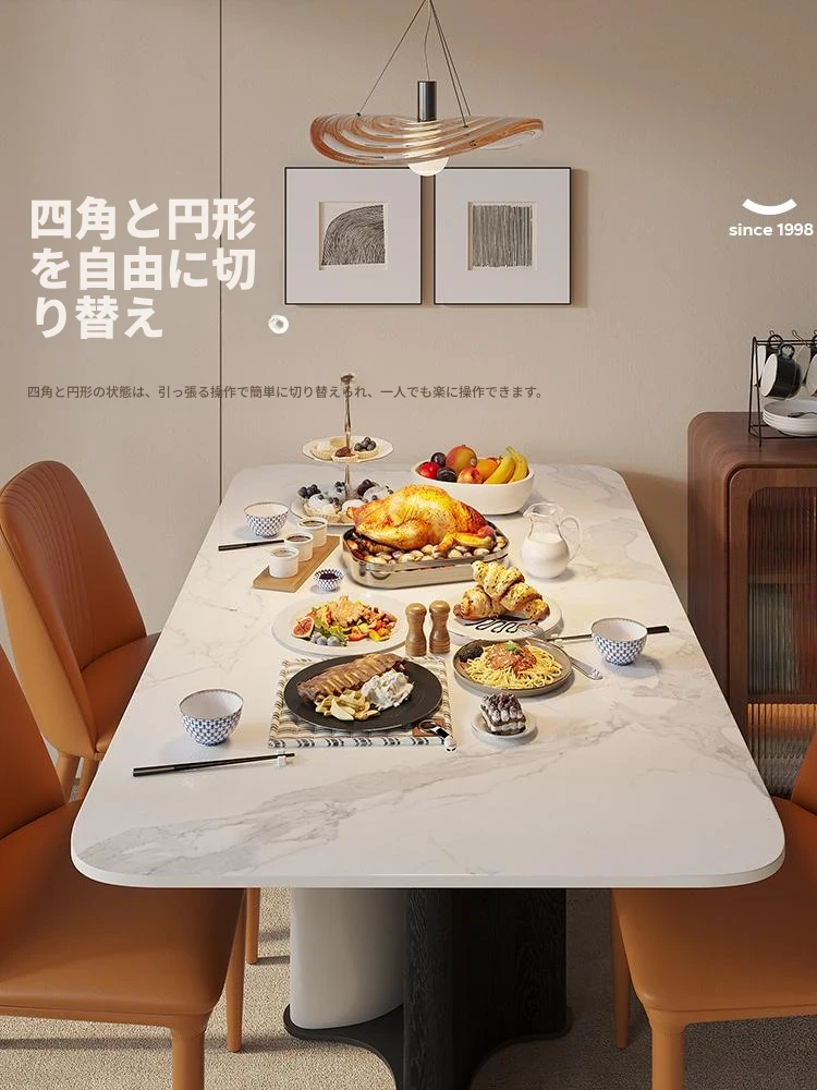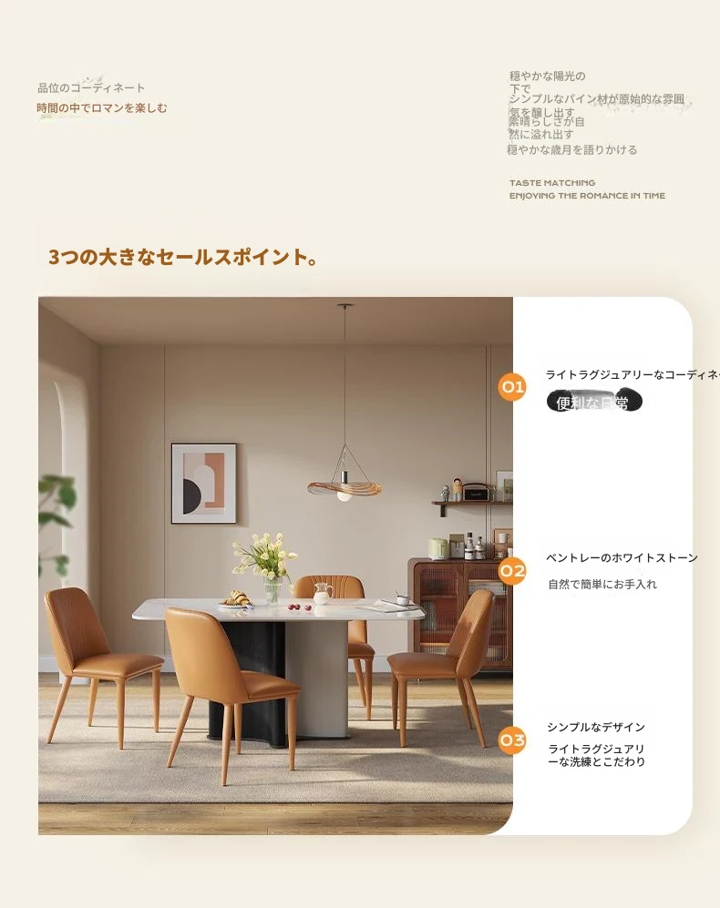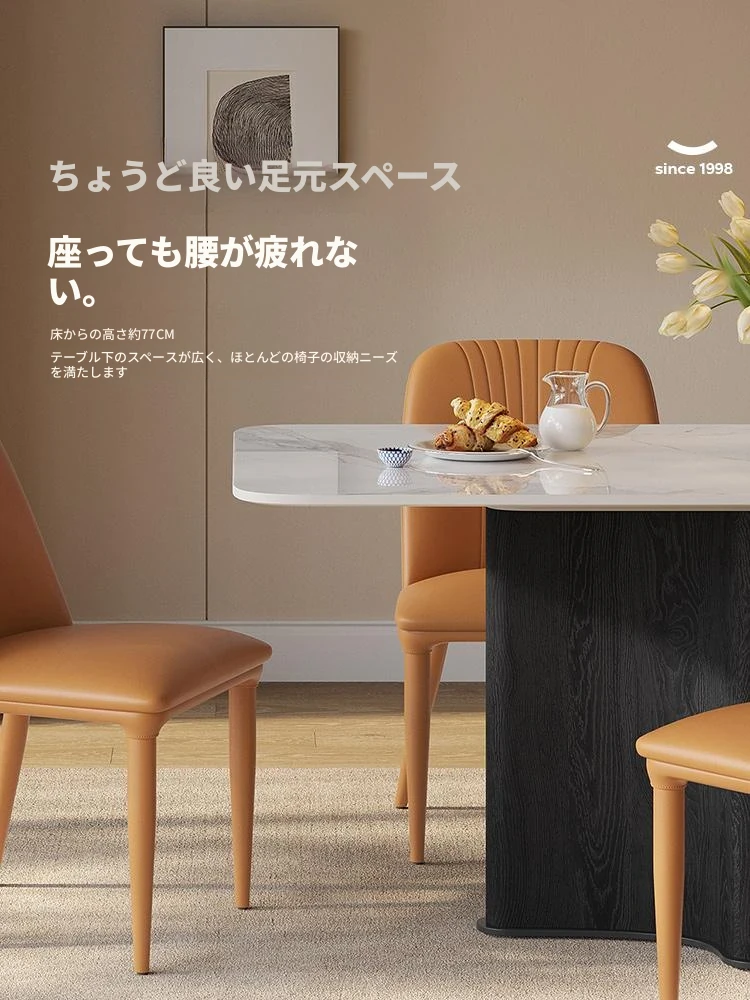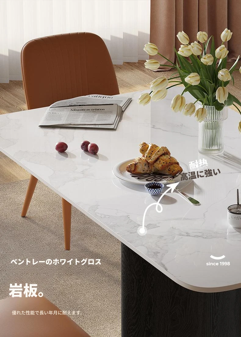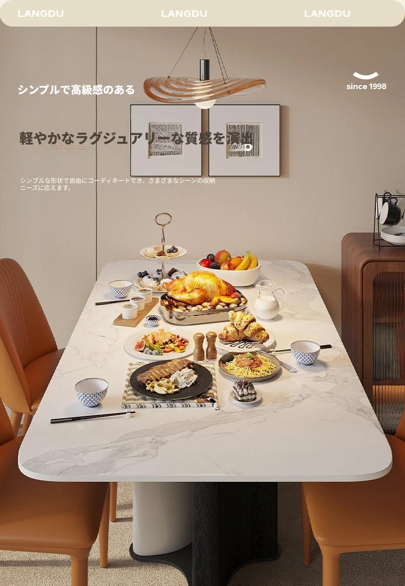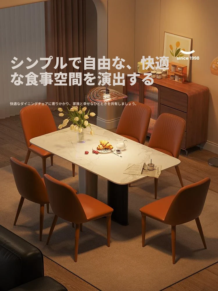 ラウンドホーム イタリアンミニマルスタイルの大理石調ダイニングテーブル&チェアセット 小型住宅向け モダンでラグジュアリーな光沢仕上げ 長方形デザイン おしゃれで機能的な食卓を実現!