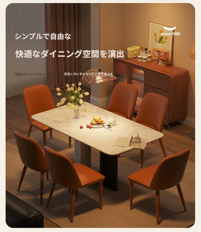 【1.6メートル】岩板ダイニングテーブル+ダイニングチェア*6