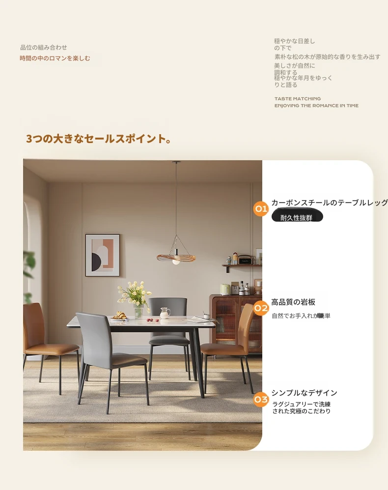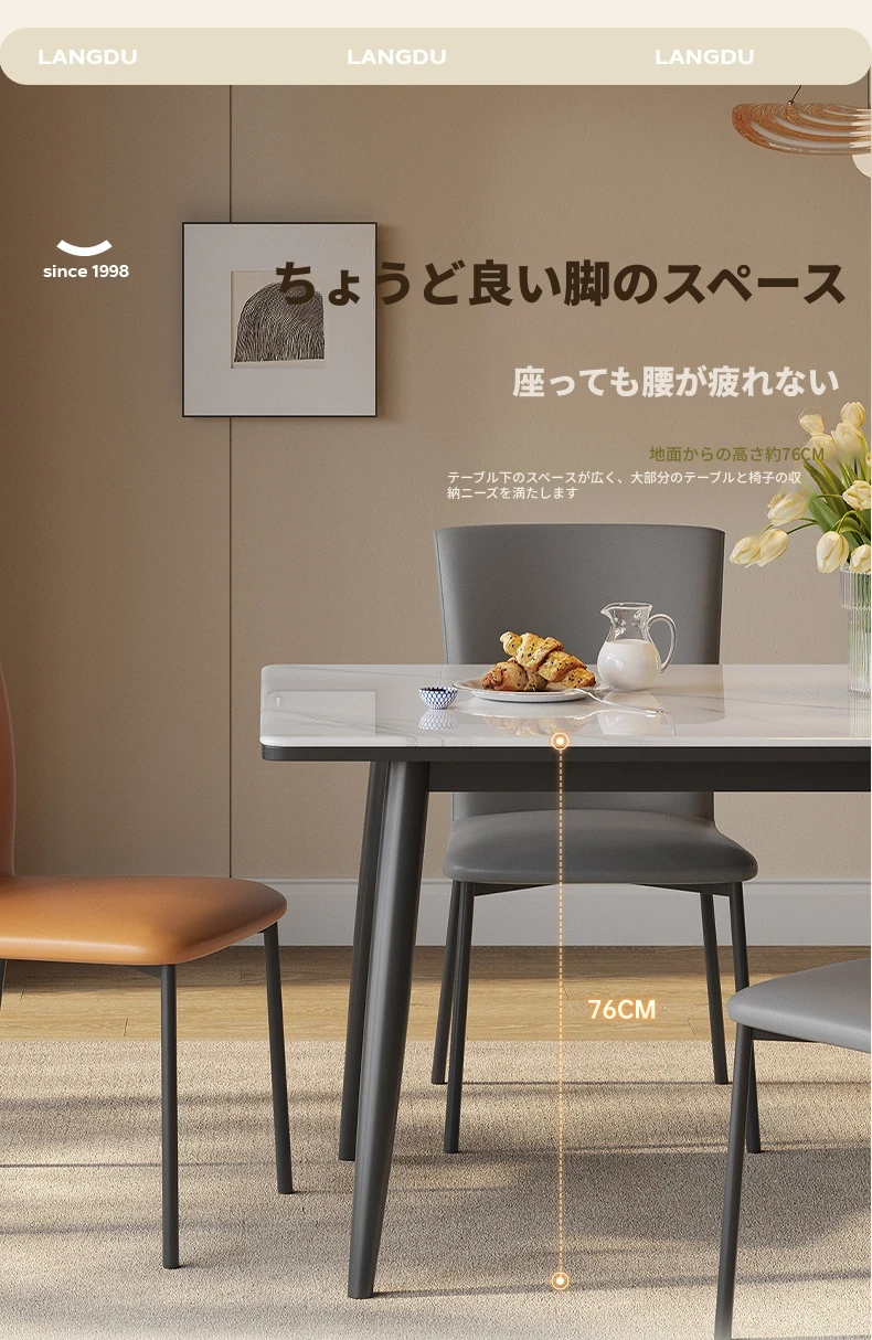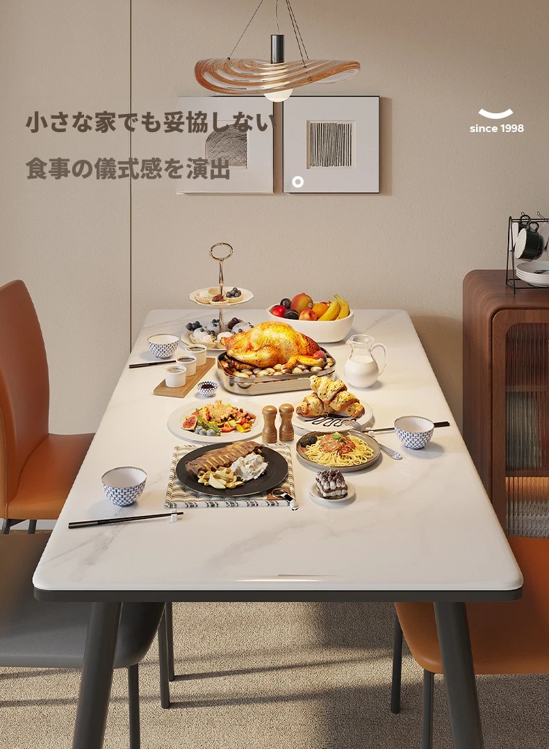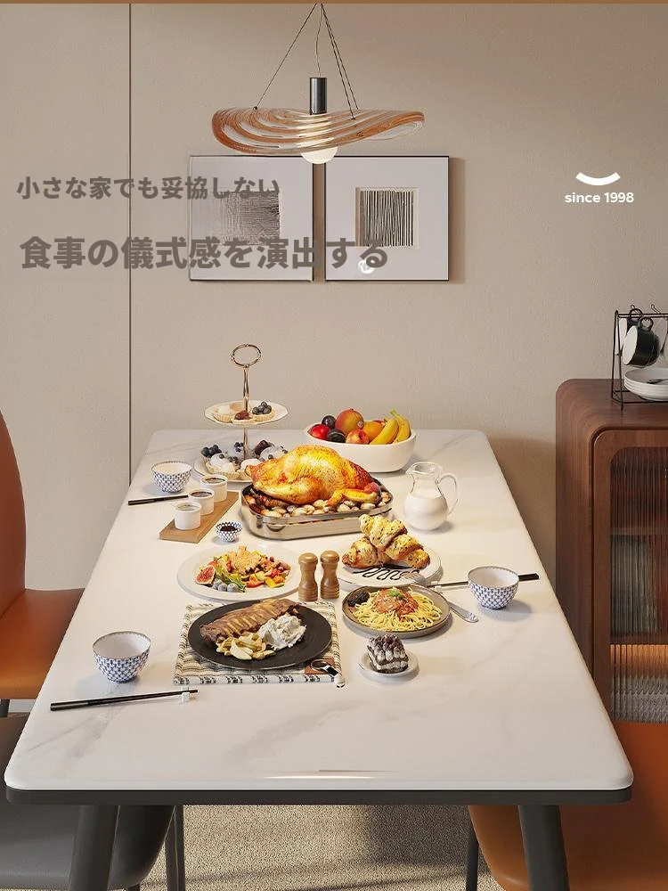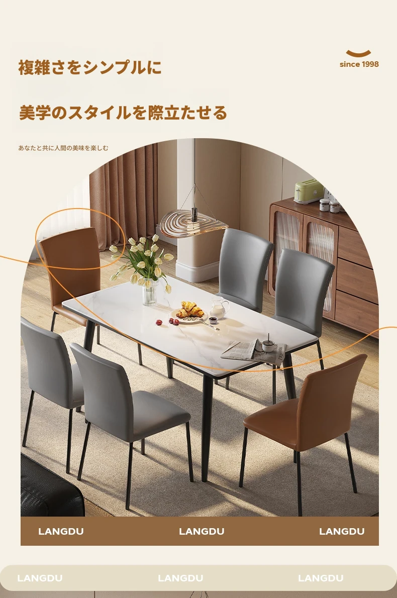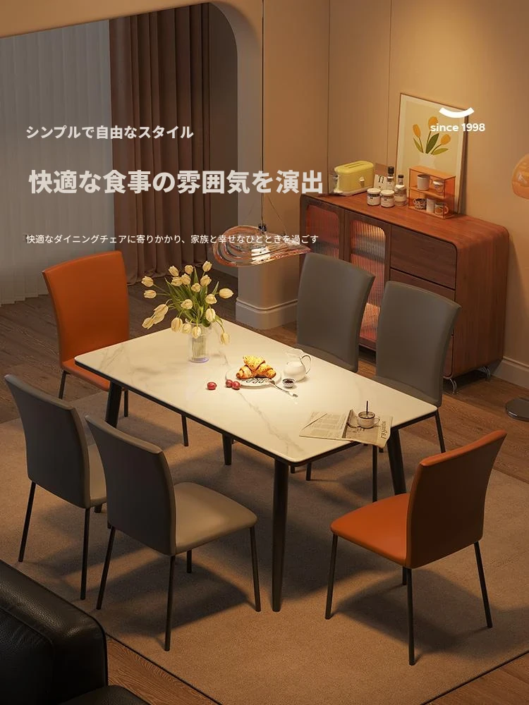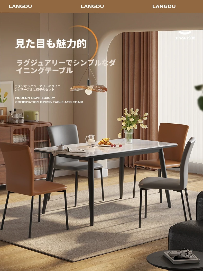 ラウンドホームの軽奢な現代的なダイニングテーブルとチェアセット - 小さなリビングにぴったりなシンプルで洗練された長方形の食卓。おしゃれな空間を演出し、家族や友人との素敵なひとときをお楽しみください!