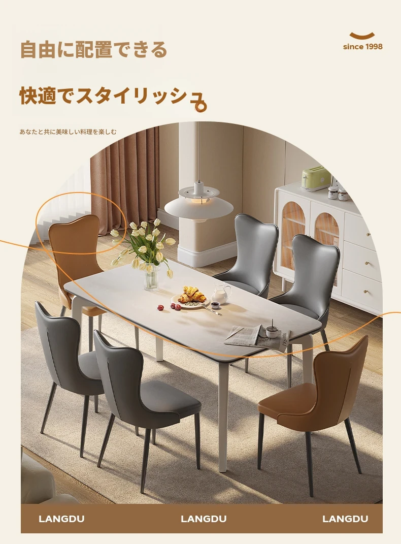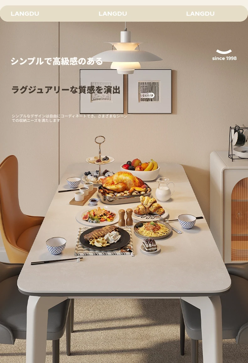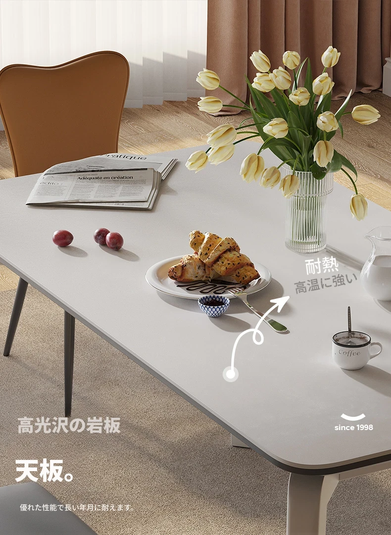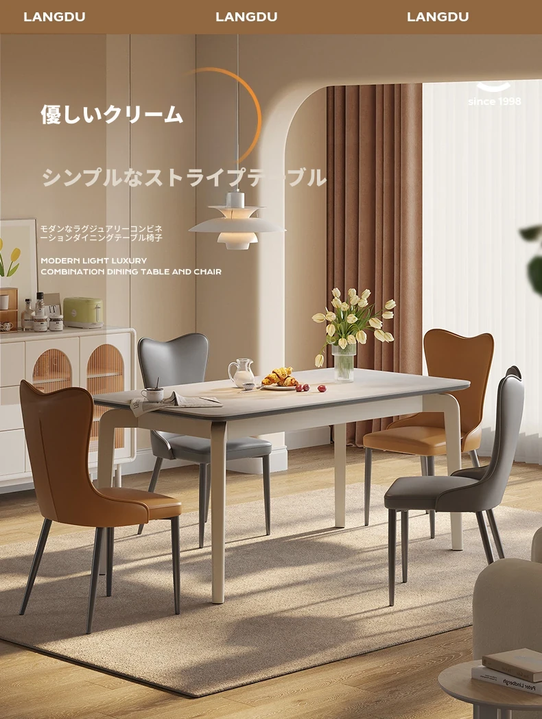 ラウンドホームの岩板ダイニングテーブルとチェアのセット - 小型住宅にぴったりなモダンでシンプルなライトラグジュアリーデザイン、リビングルームに最適な長方形テーブル!