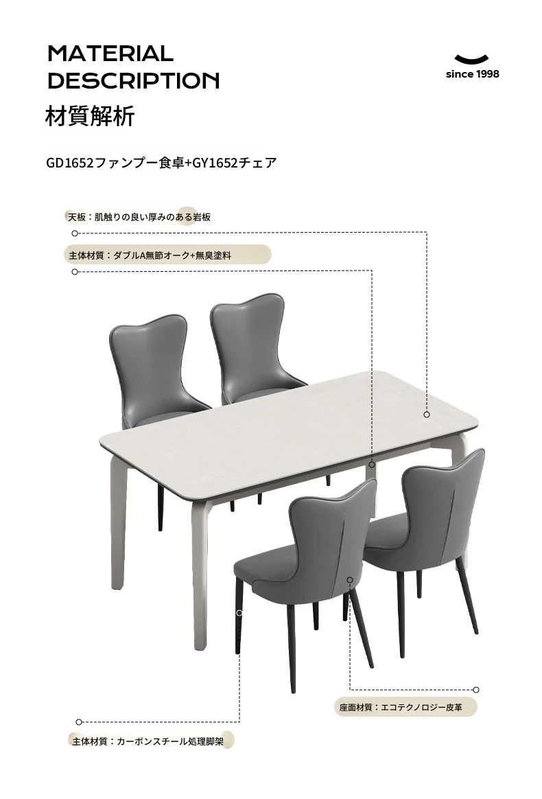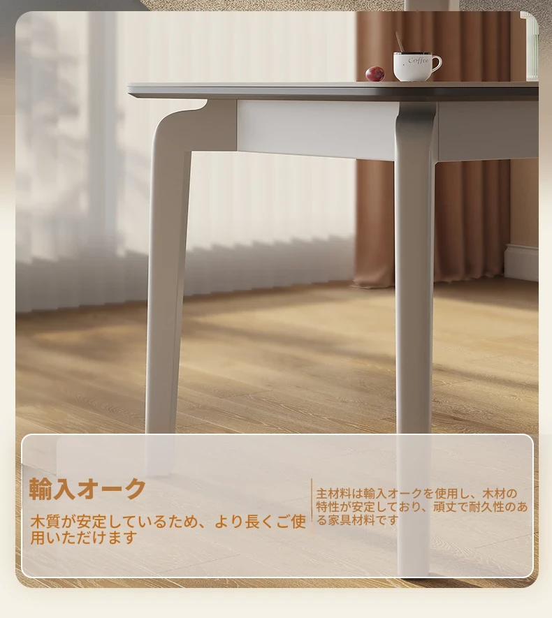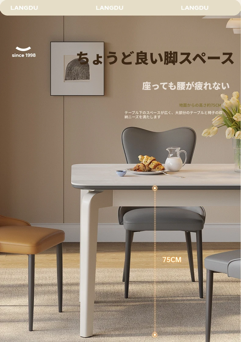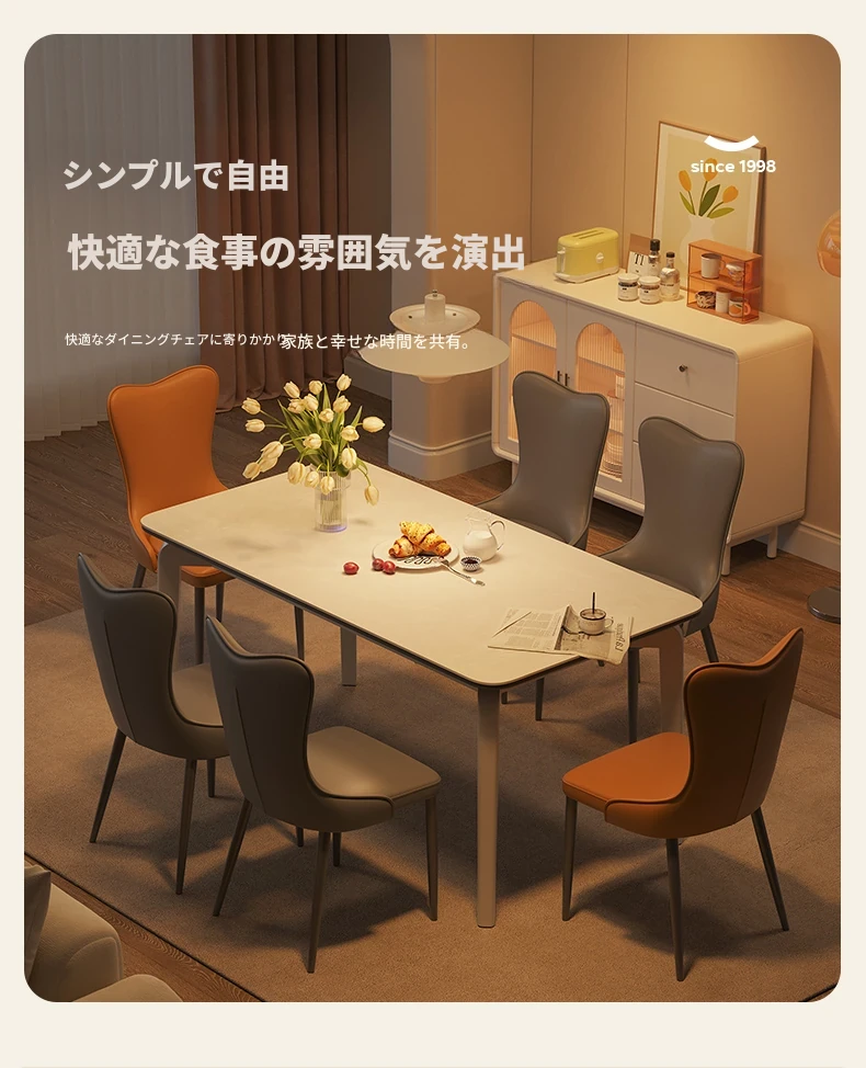 ラウンドホームの岩板ダイニングテーブルとチェアのセット - 小型住宅にぴったりなモダンでシンプルなライトラグジュアリーデザイン、リビングルームに最適な長方形テーブル!
