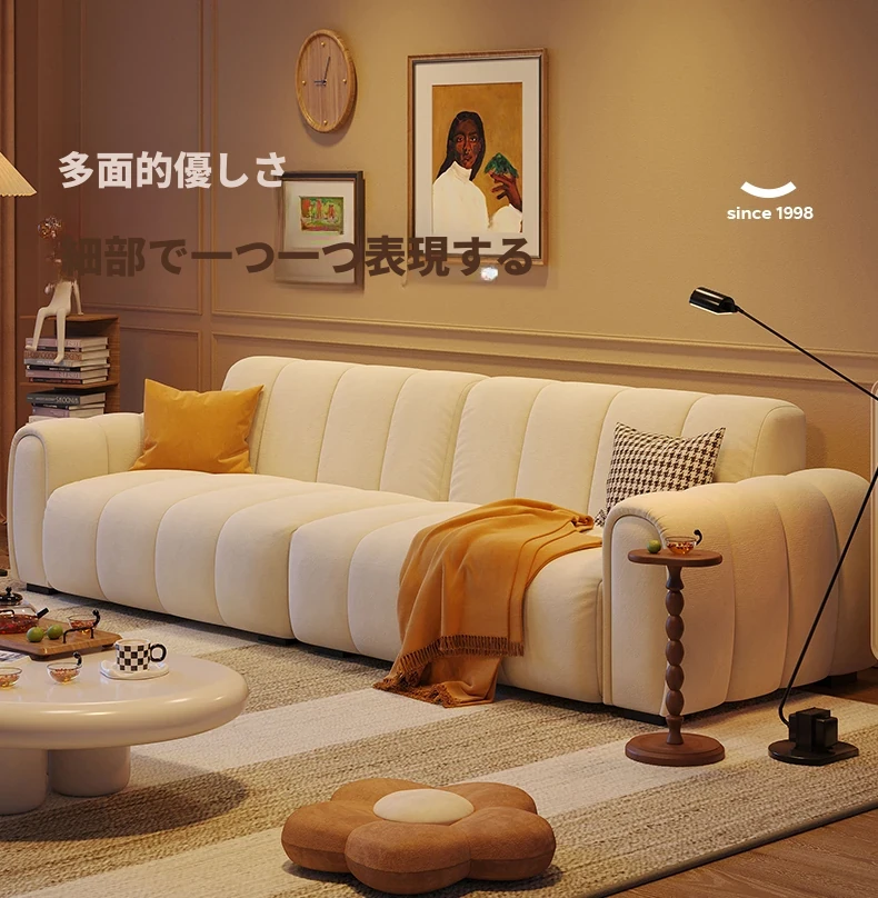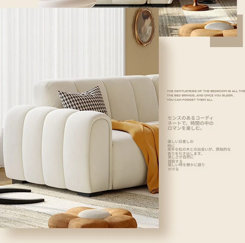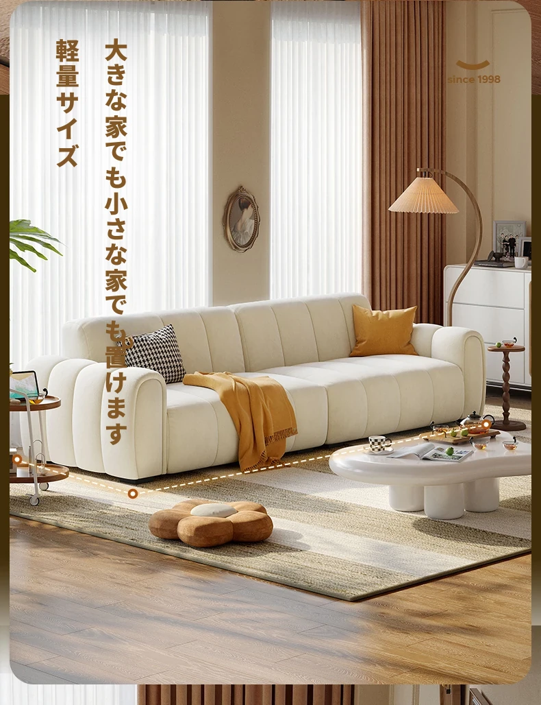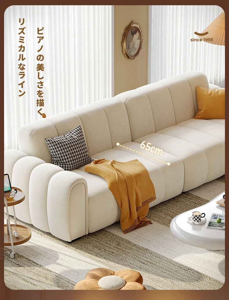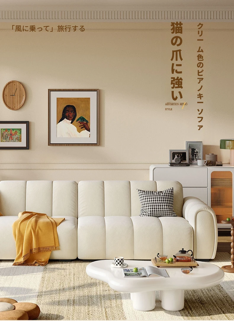 2025年新作!浪度のピアノキー布製ソファ - おしゃれなクリーム風デザイン、コンパクトな小型サイズでリビングに最適。猫の爪とぎにも強い、耐久性抜群の豆腐ブロック型!