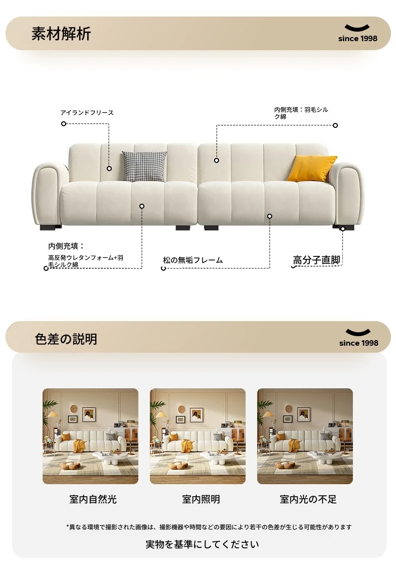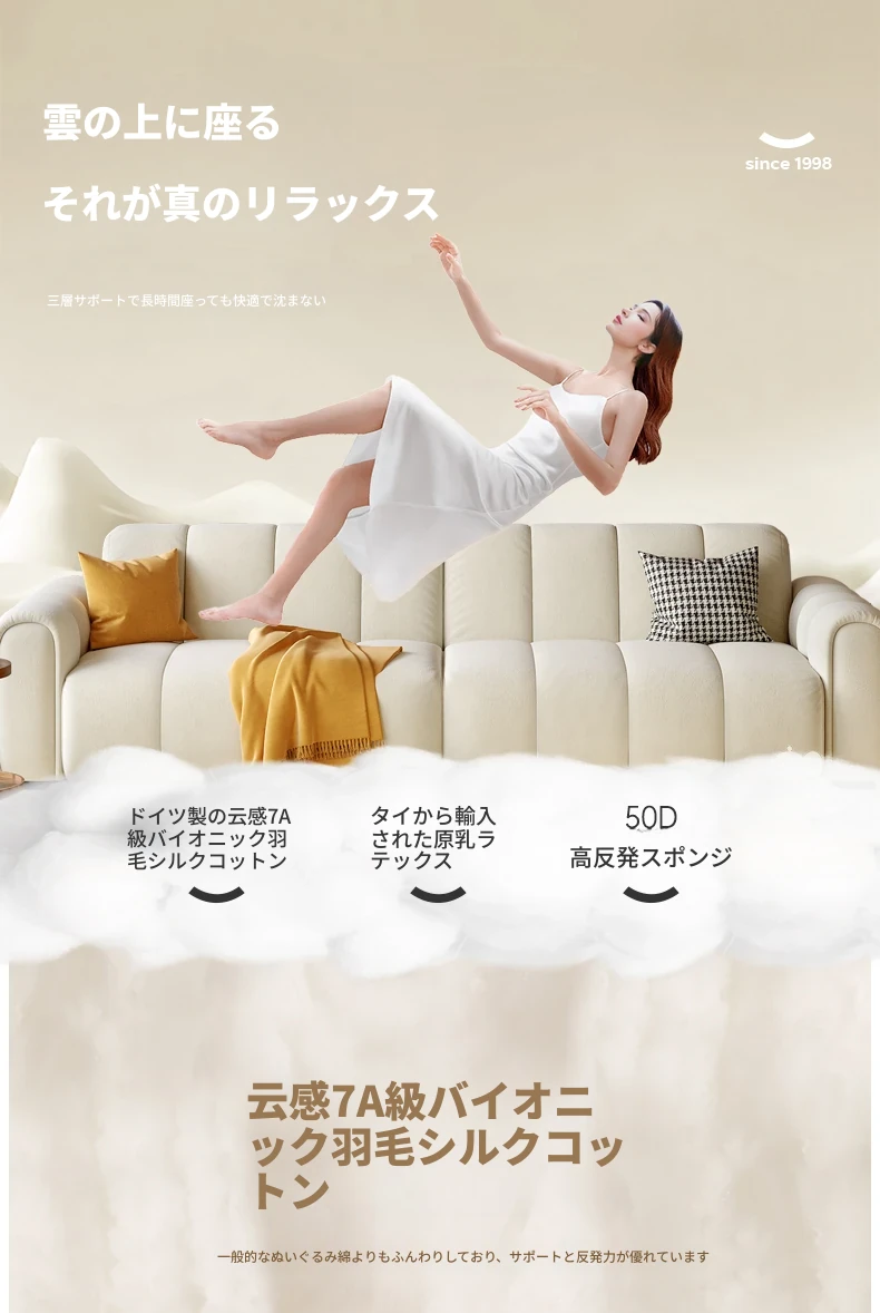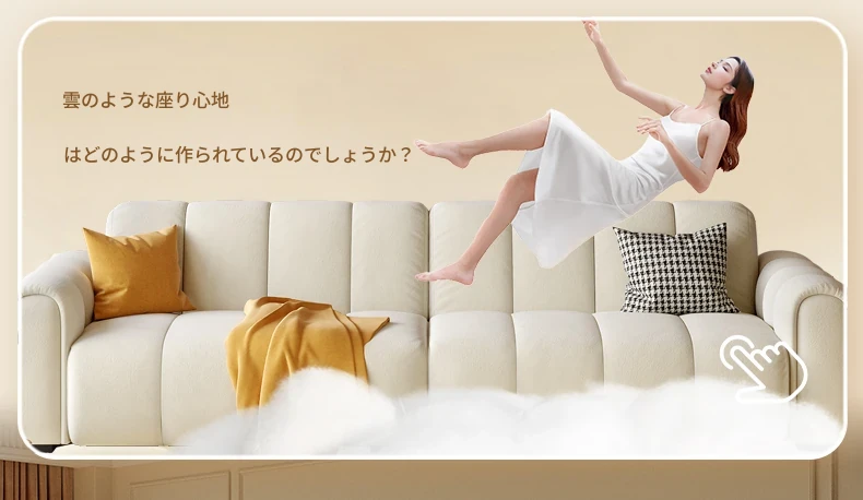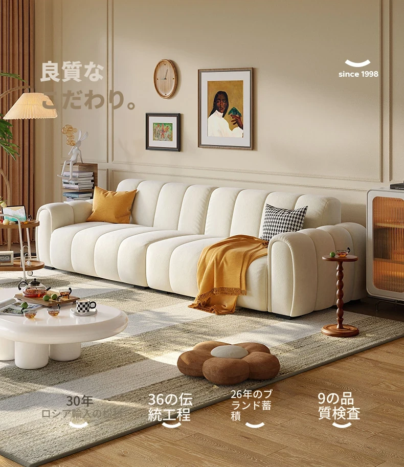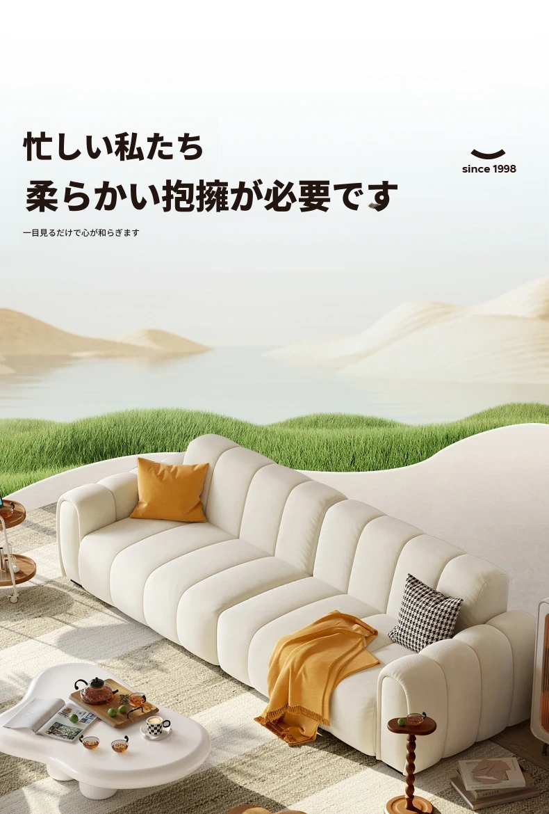 2025年新作!浪度のピアノキー布製ソファ - おしゃれなクリーム風デザイン、コンパクトな小型サイズでリビングに最適。猫の爪とぎにも強い、耐久性抜群の豆腐ブロック型!