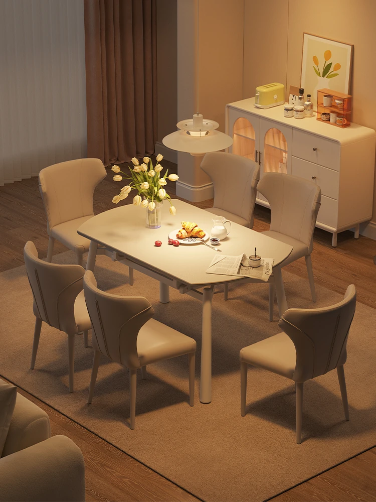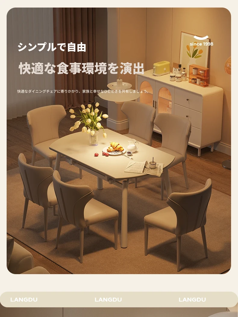 【1.3メートル】伸縮式岩板ダイニングテーブル+ダイニングチェア*6