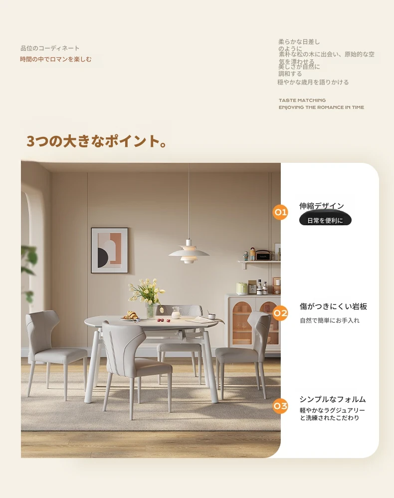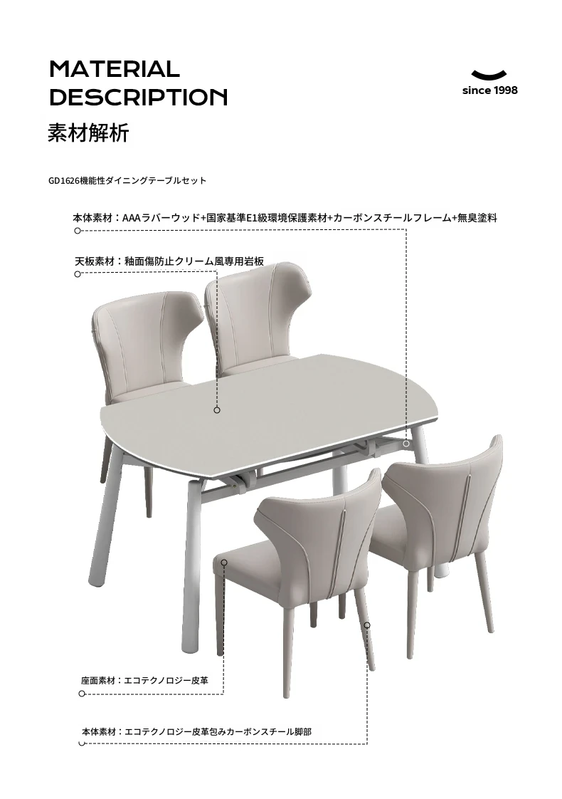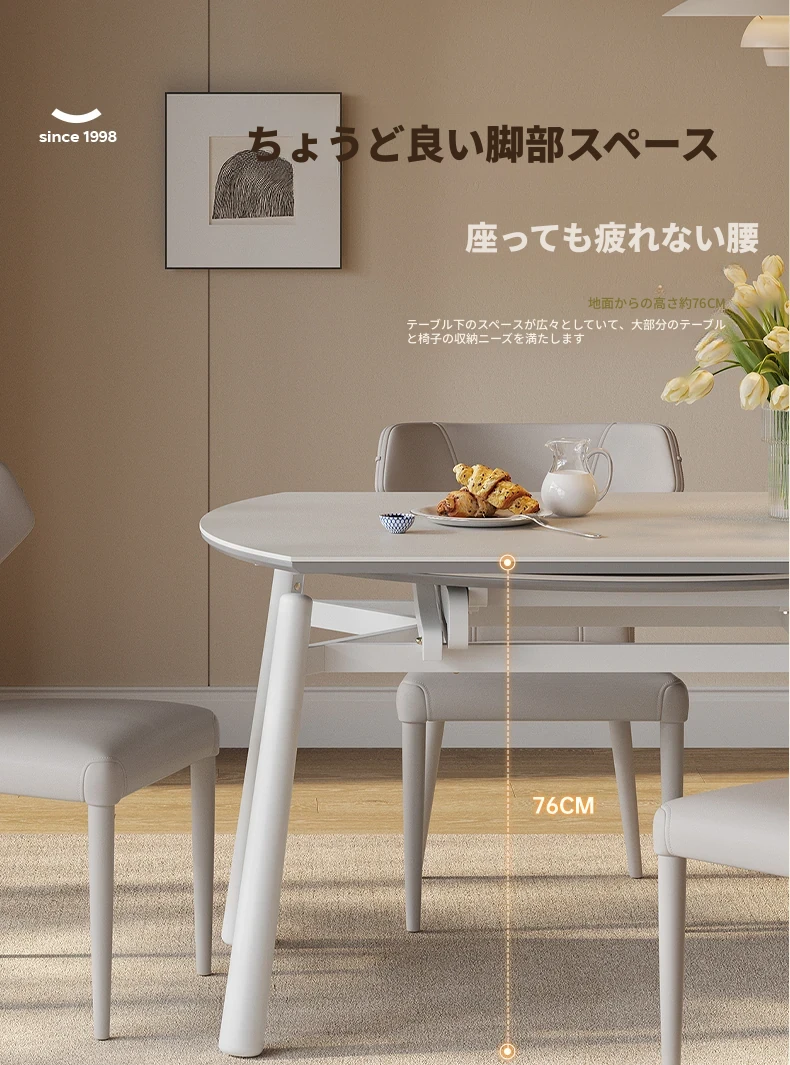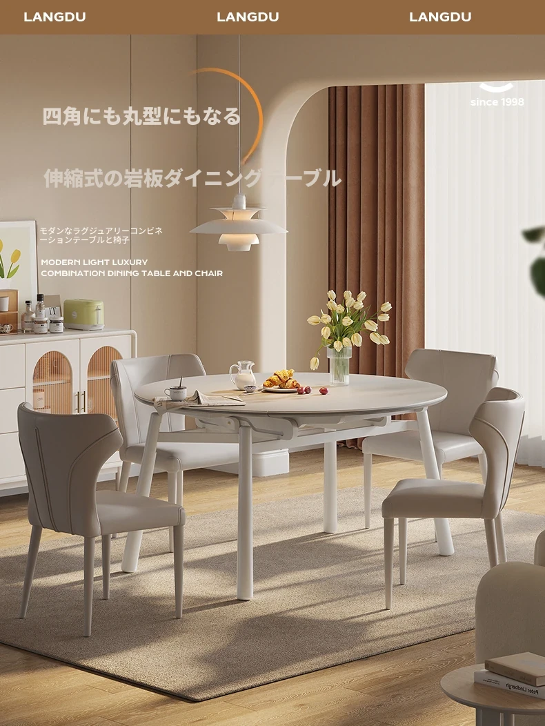 【1.3メートル】伸縮式岩板ダイニングテーブル+ダイニングチェア*4