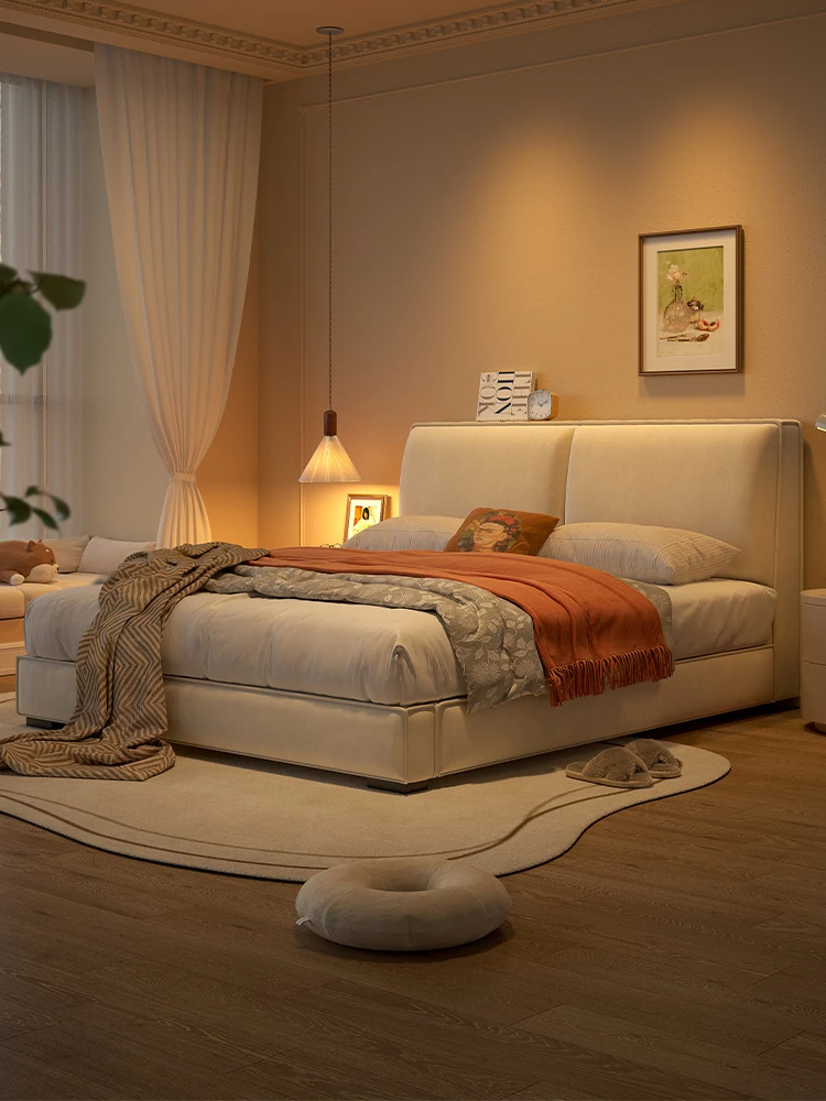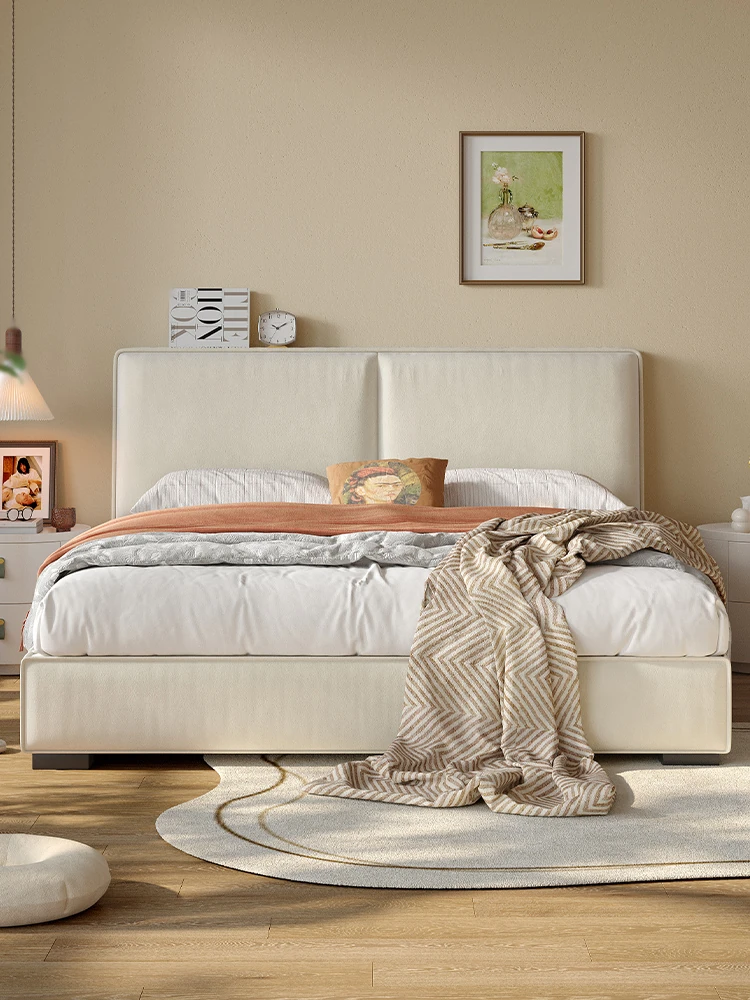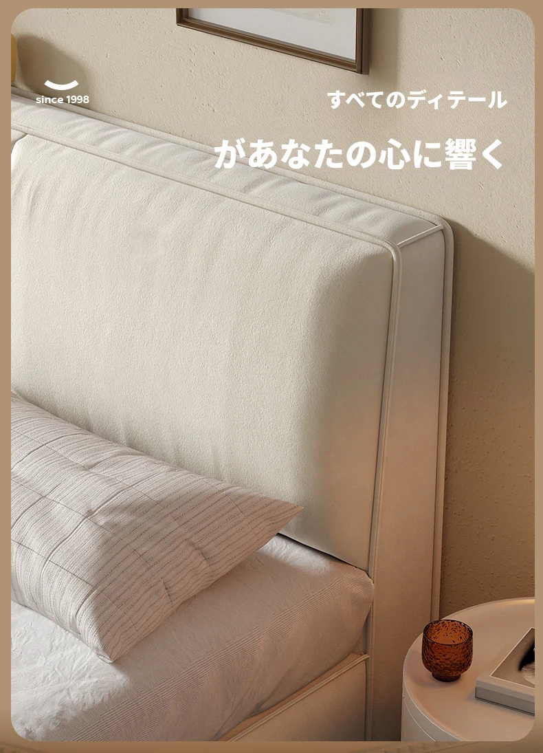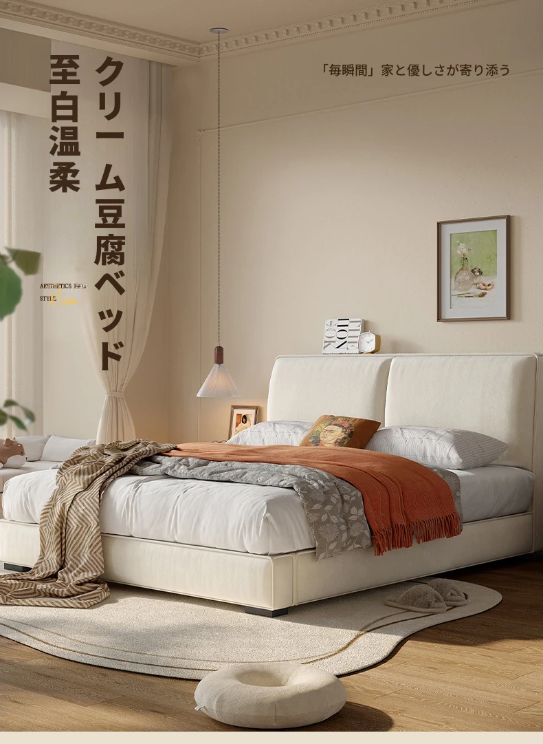 ラウンド豆腐ブロック布製ベッド|シンプルでモダンなデザイン|主寝室に最適なダブルベッド|猫の爪とぎにも対応|収納機能付きソフトパッケージベッドフレーム
