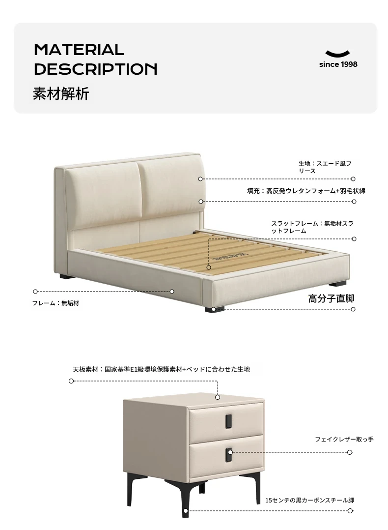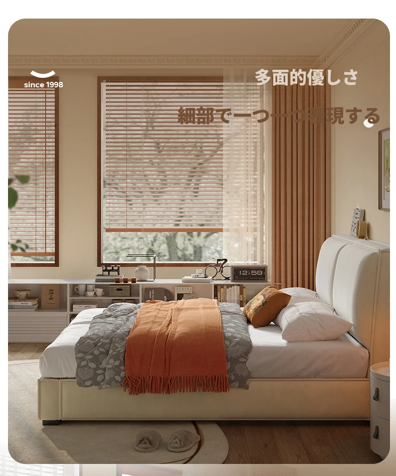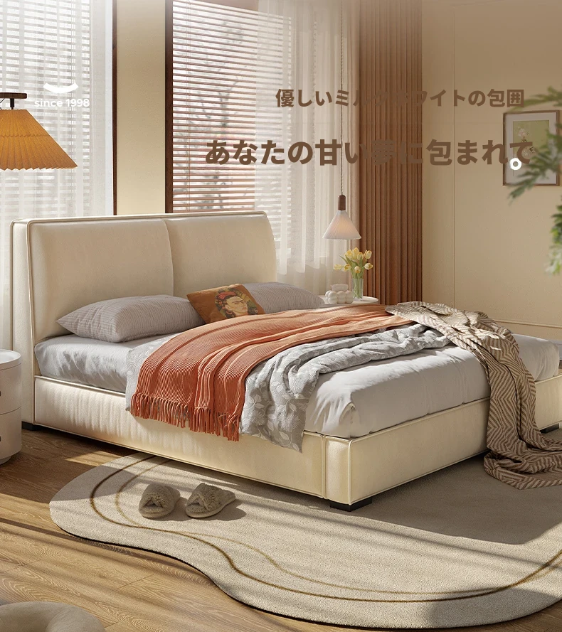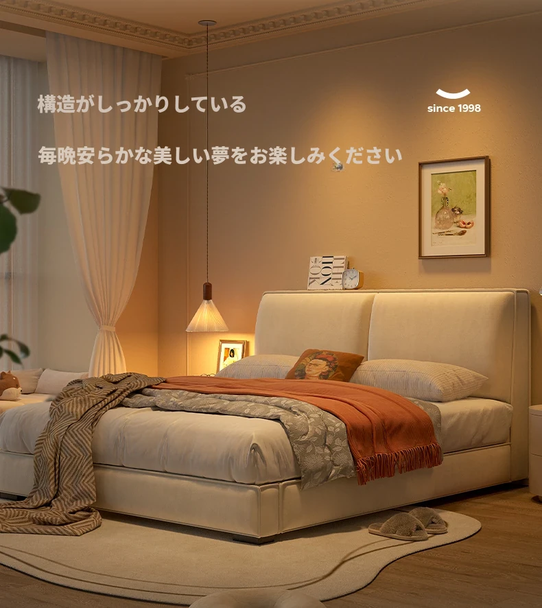 ラウンド豆腐ブロック布製ベッド|シンプルでモダンなデザイン|主寝室に最適なダブルベッド|猫の爪とぎにも対応|収納機能付きソフトパッケージベッドフレーム