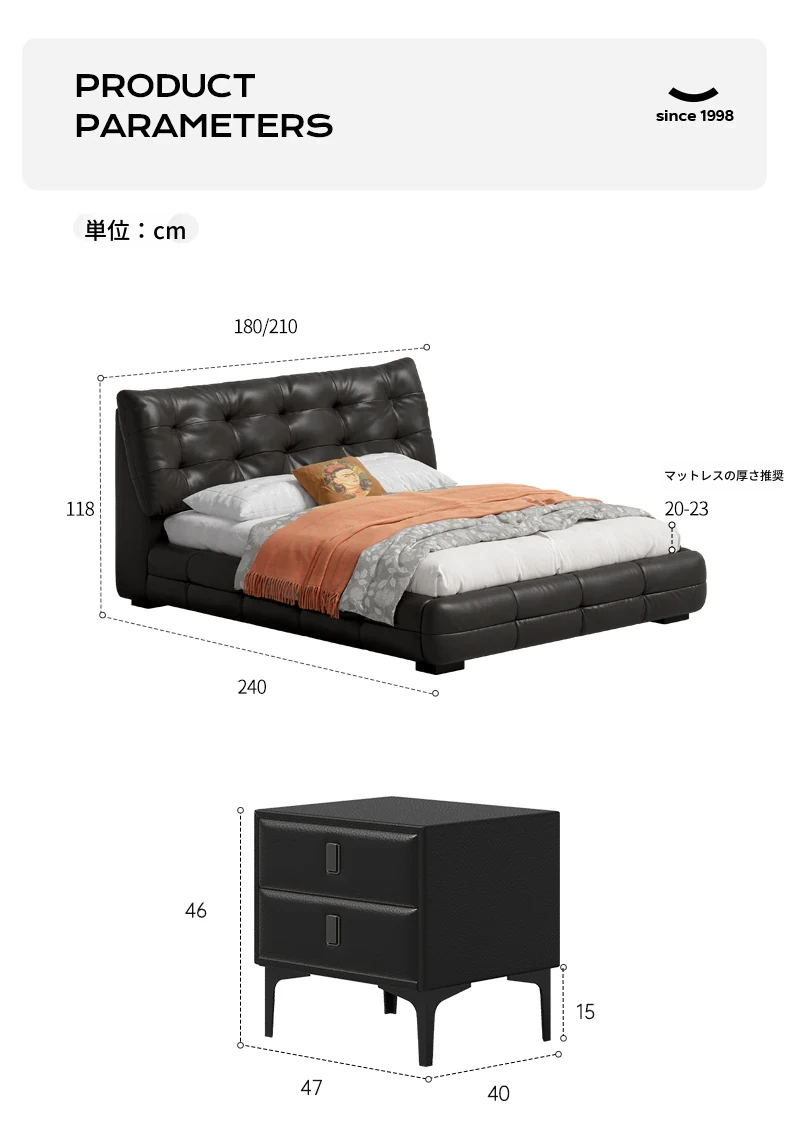 【加厚1.8mm】トップグレード牛革スワンベッド+ナイトテーブル*1+マットレス