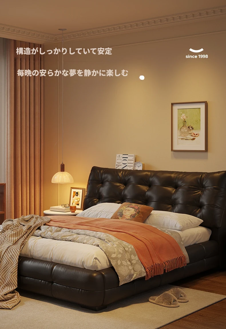 【加厚1.8mm】トップグレード牛革スワンベッド+ナイトテーブル*1