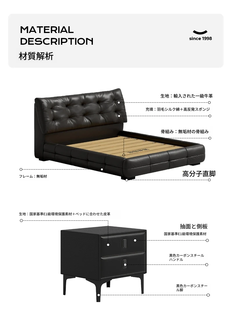 【加厚1.8mm】トップグレード牛革スワンベッド+ナイトテーブル*2+マットレス