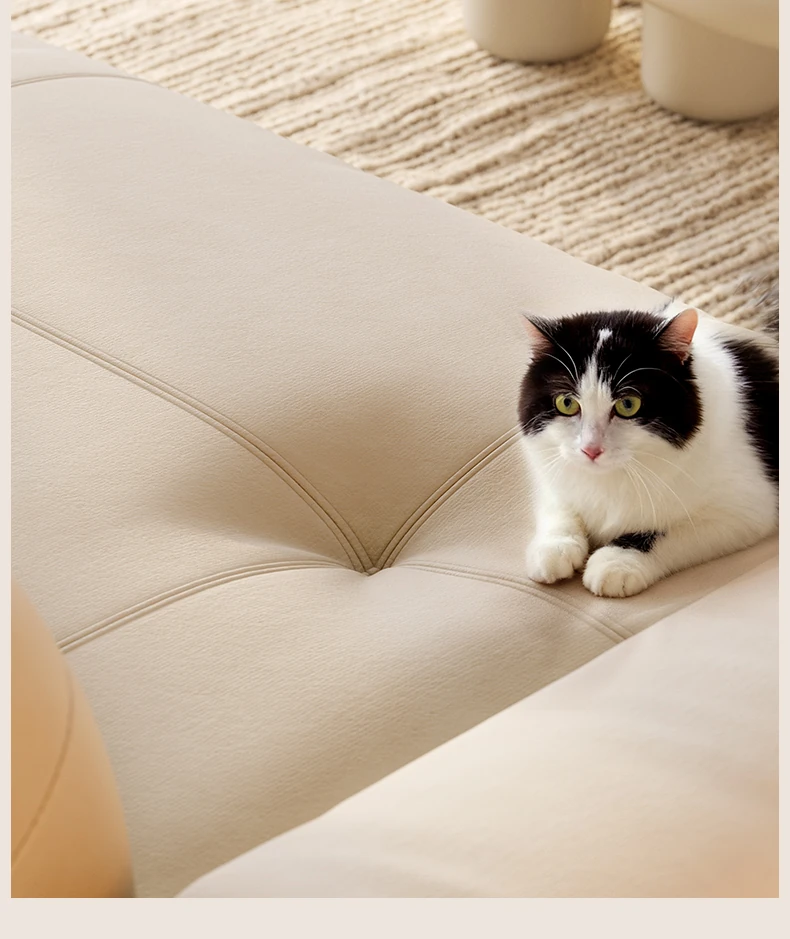 ラウンドスワンソファークリーム風猫爪布製小型リビングモダンシンプルスタイル、ふわふわ雲のようなデザインで、快適な空間を演出!おしゃれで機能的なインテリアに最適です。