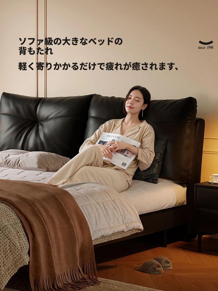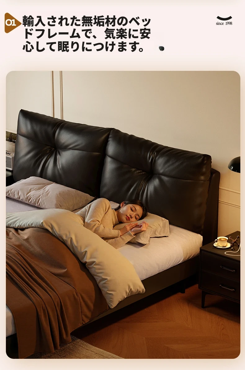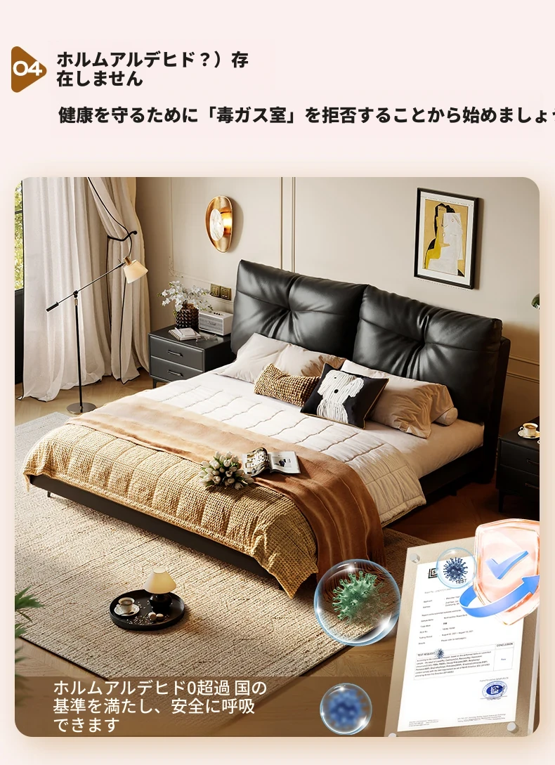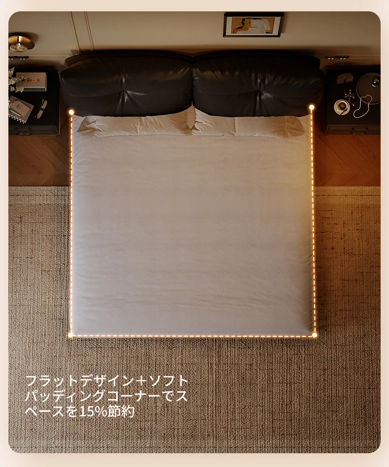 【ラグジュアリーバージョン1.8mmトップレザー】ベッド+ナイトスタンド*1+マットレス