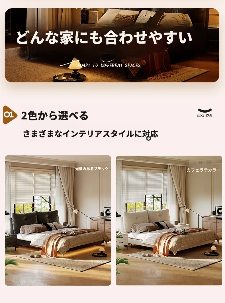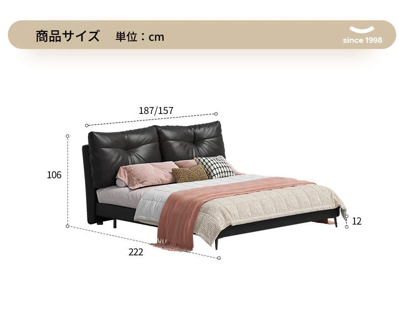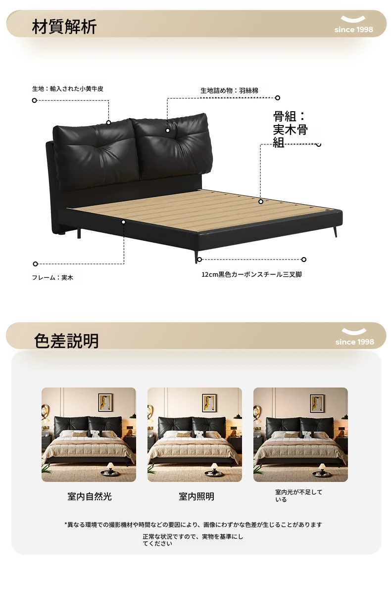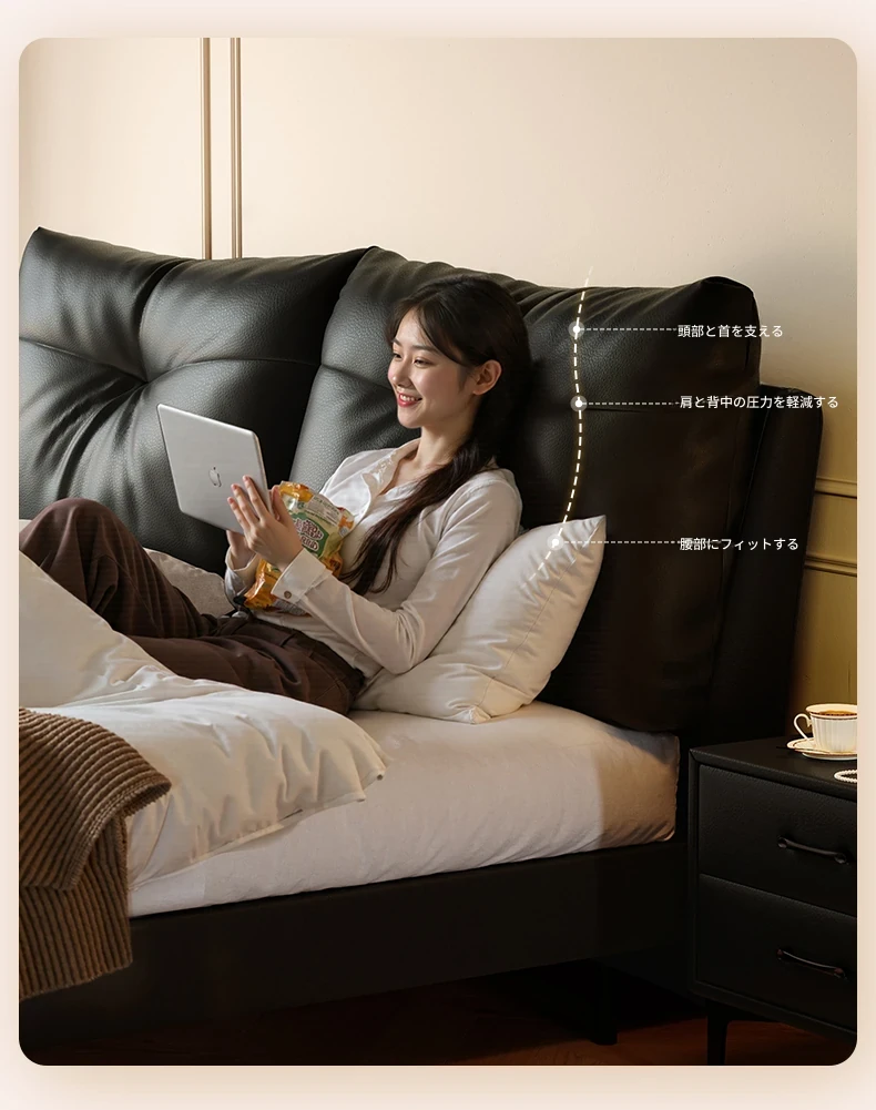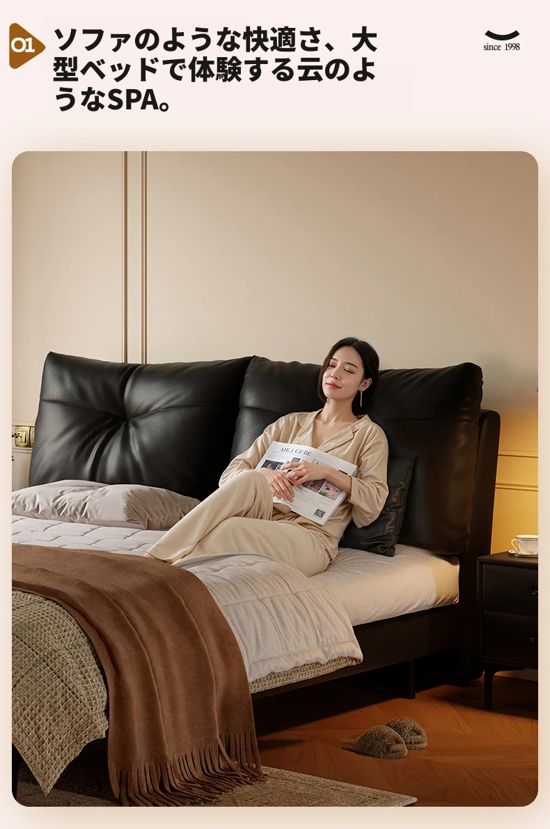 【ラグジュアリーバージョン1.8mmトップレザー】ベッド+ナイトスタンド*1+マットレス