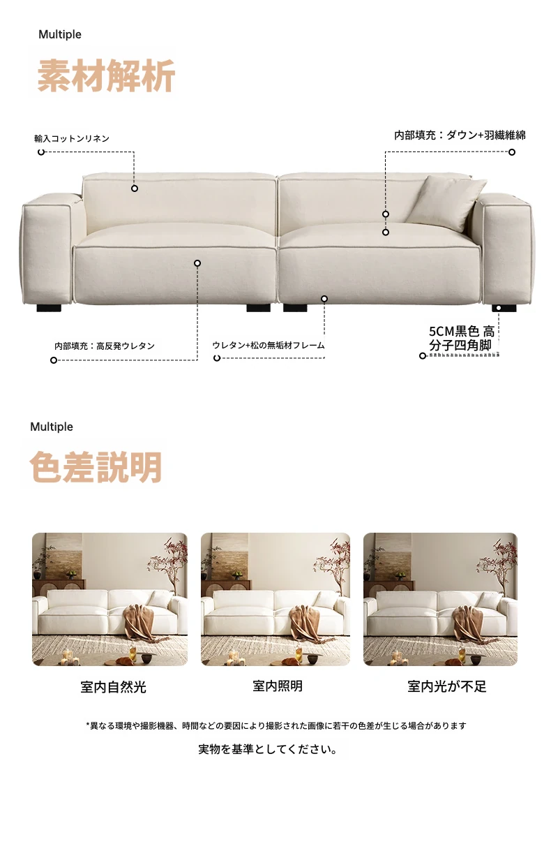 【全分解洗浄デザイン】2.96メートルストレートタイプ・クラウド包み込む座り心地
