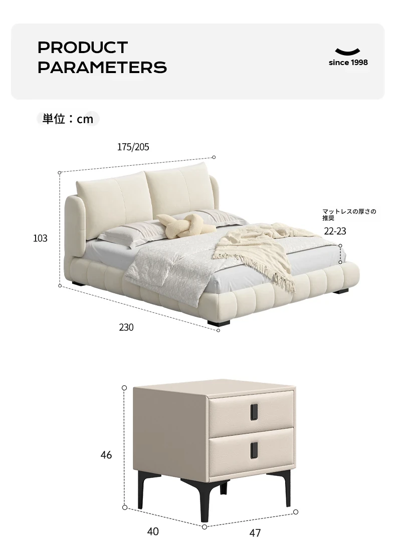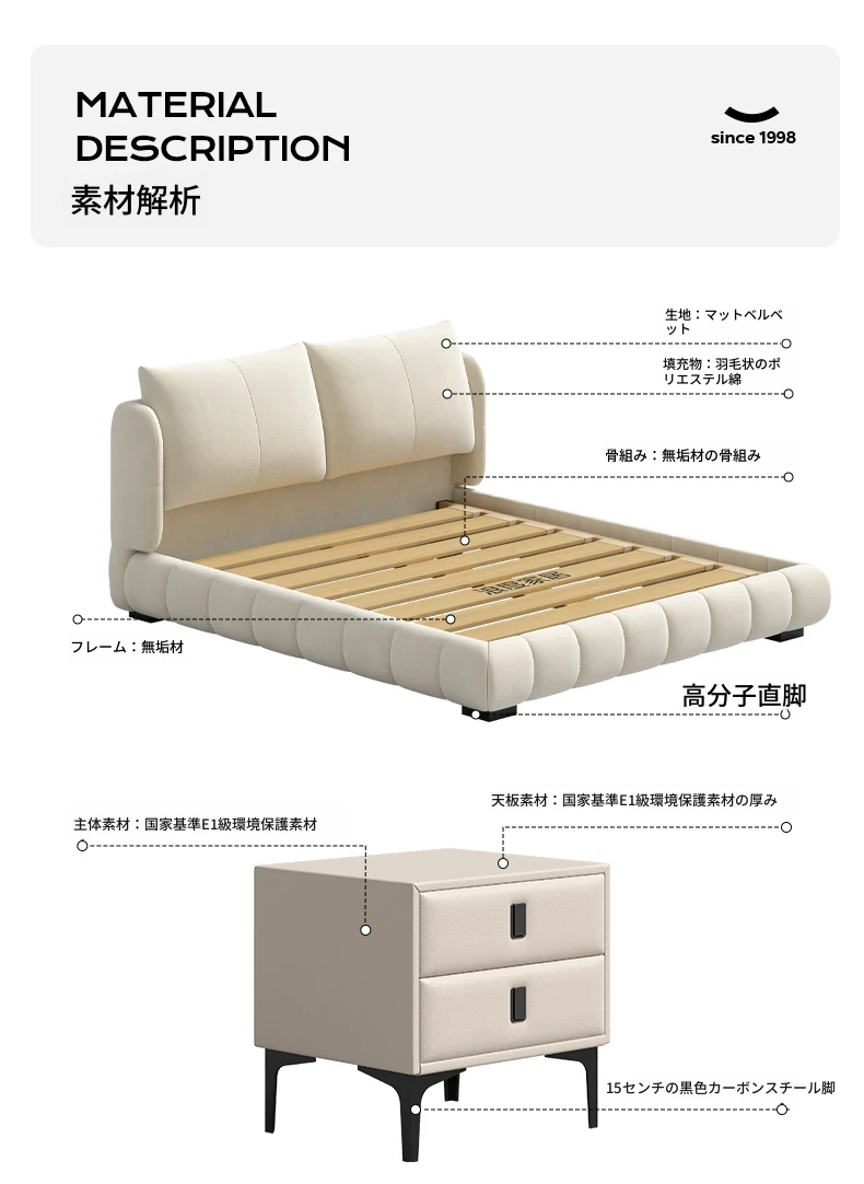 ポーフ床+マットレス【静音独立スプリング】+ナイトテーブル*2