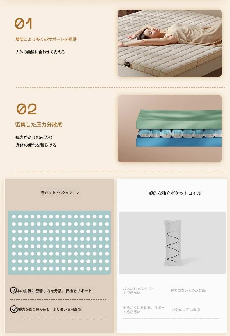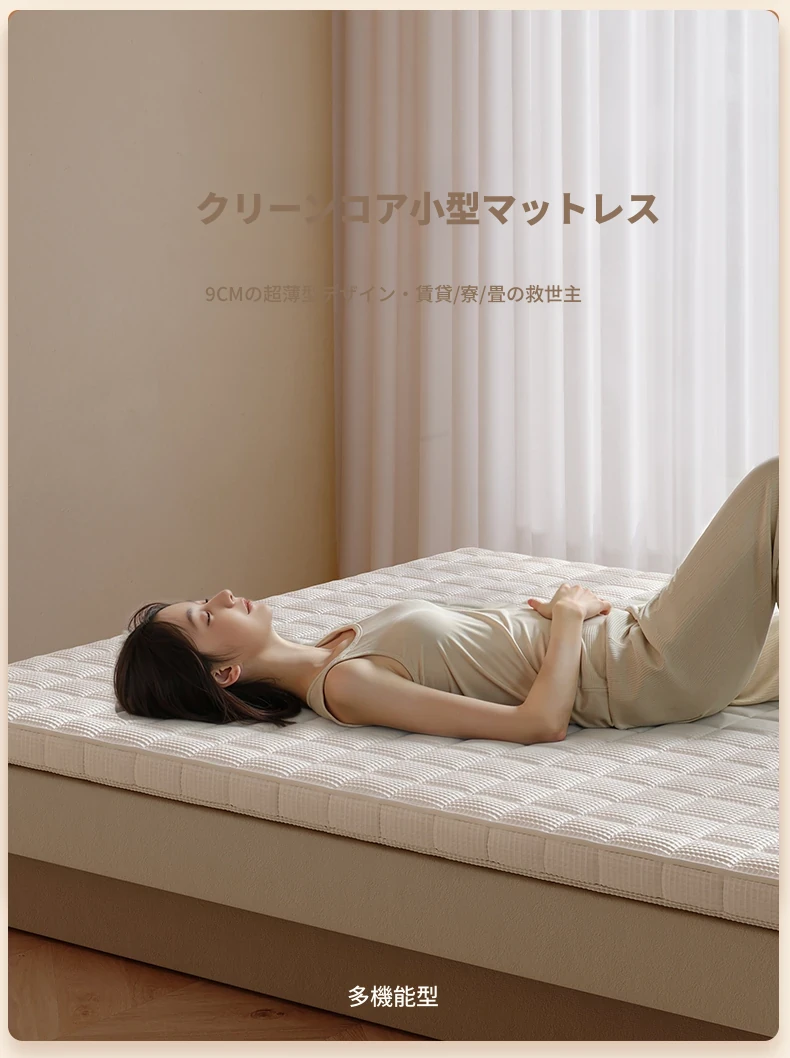 浪度のクリーンコア0接着剤マットレス - 9cm薄型スプリング、抗菌・防ダニ仕様、タタミや寮に最適なソフト・ハード両用ベッドマットレス!快適な睡眠をサポートします!