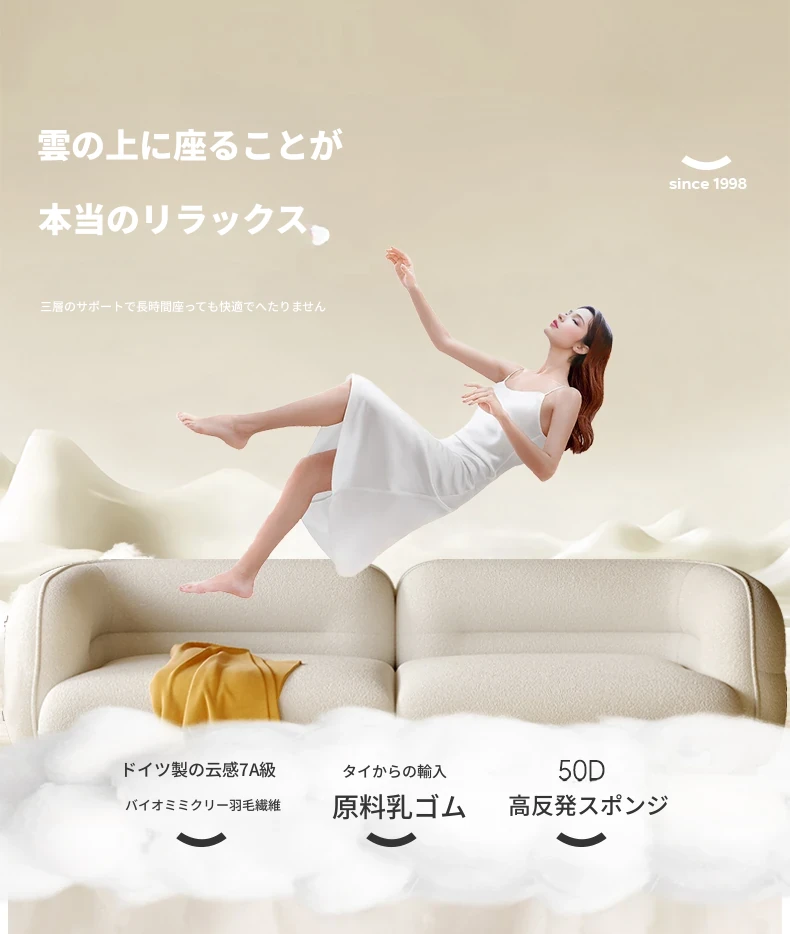 【フラッグシップ版・雲のような座り心地】防水防汚のラビットファー(ラテックス+高反発ウレタン+竹炭ウレタン+バイオレットウレタン)