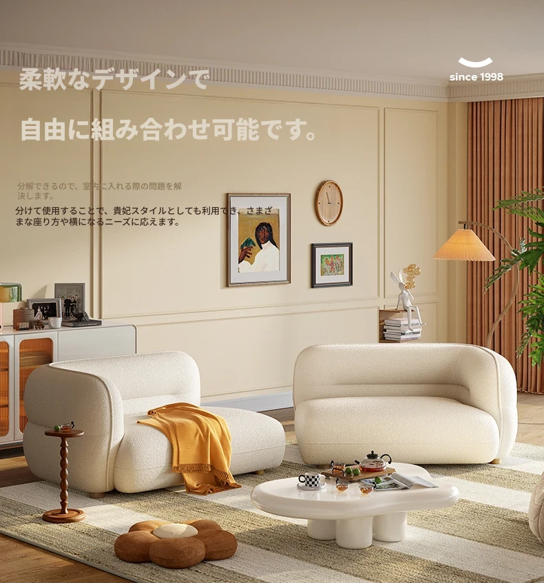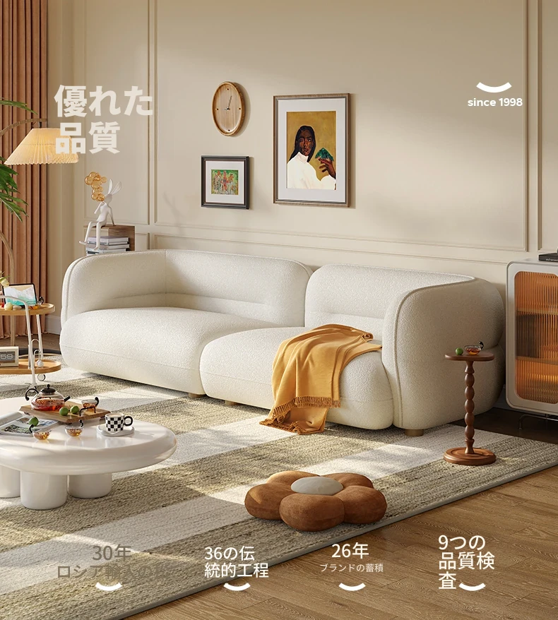 浪度家居2025年新作!波波球布艺沙发,完美契合小户型,网红法式奶油风格,豆腐块设计,给你的客厅增添温馨与时尚感!