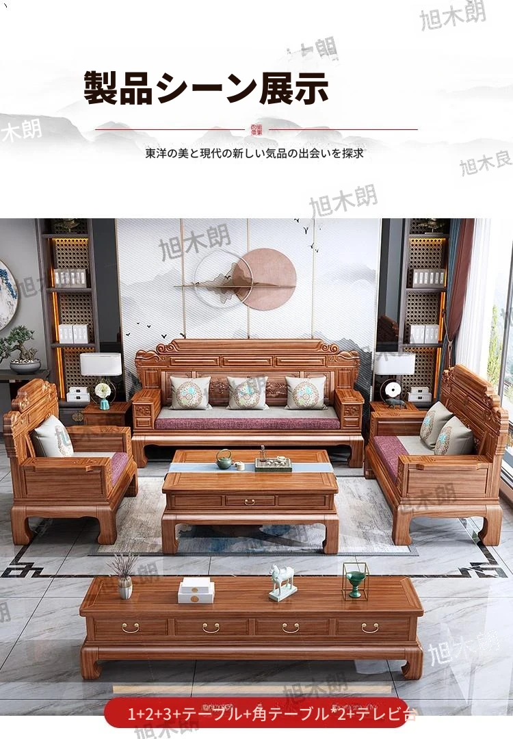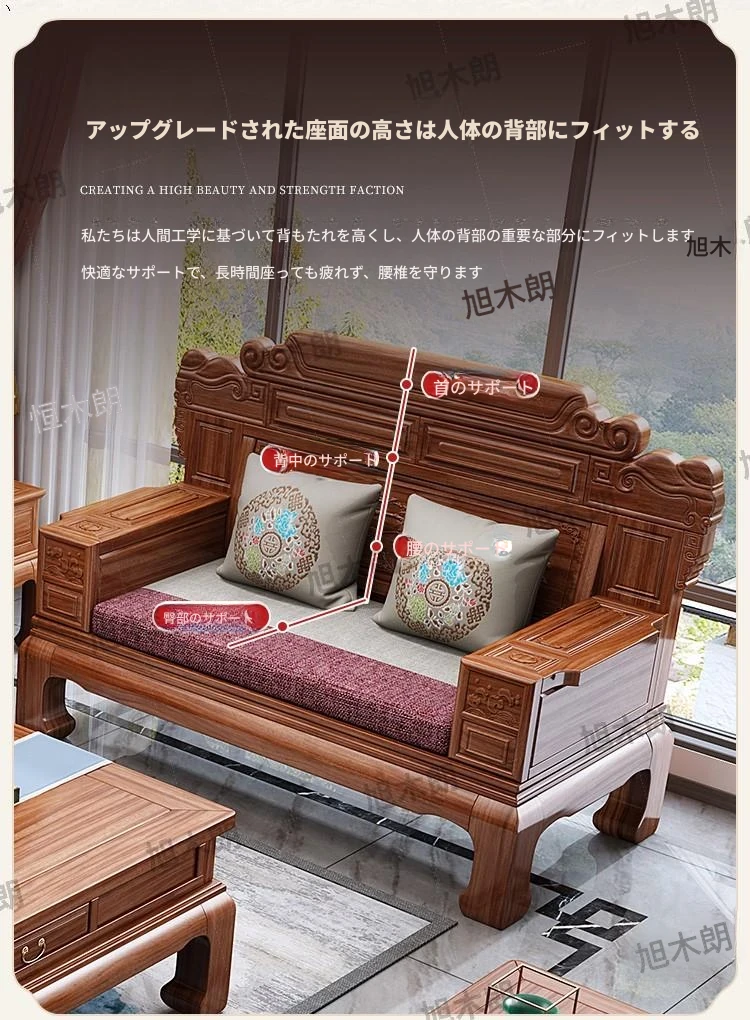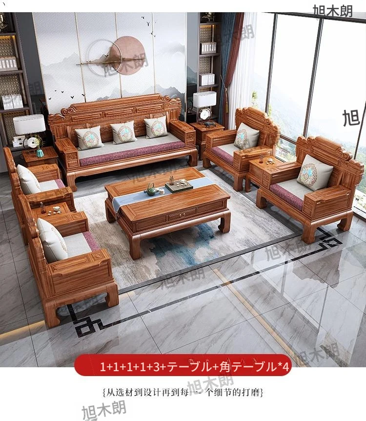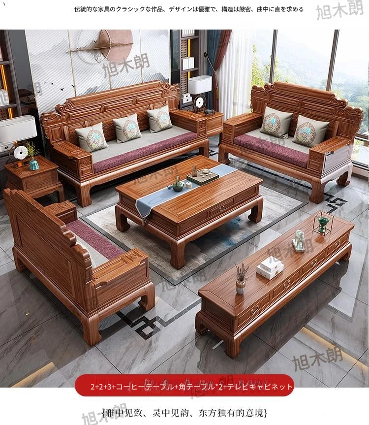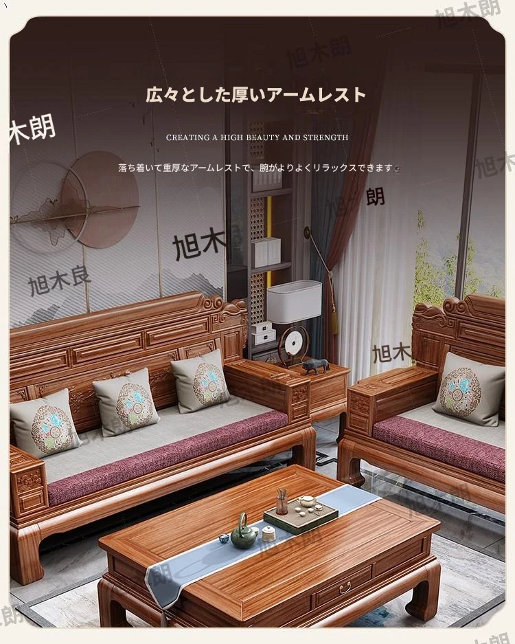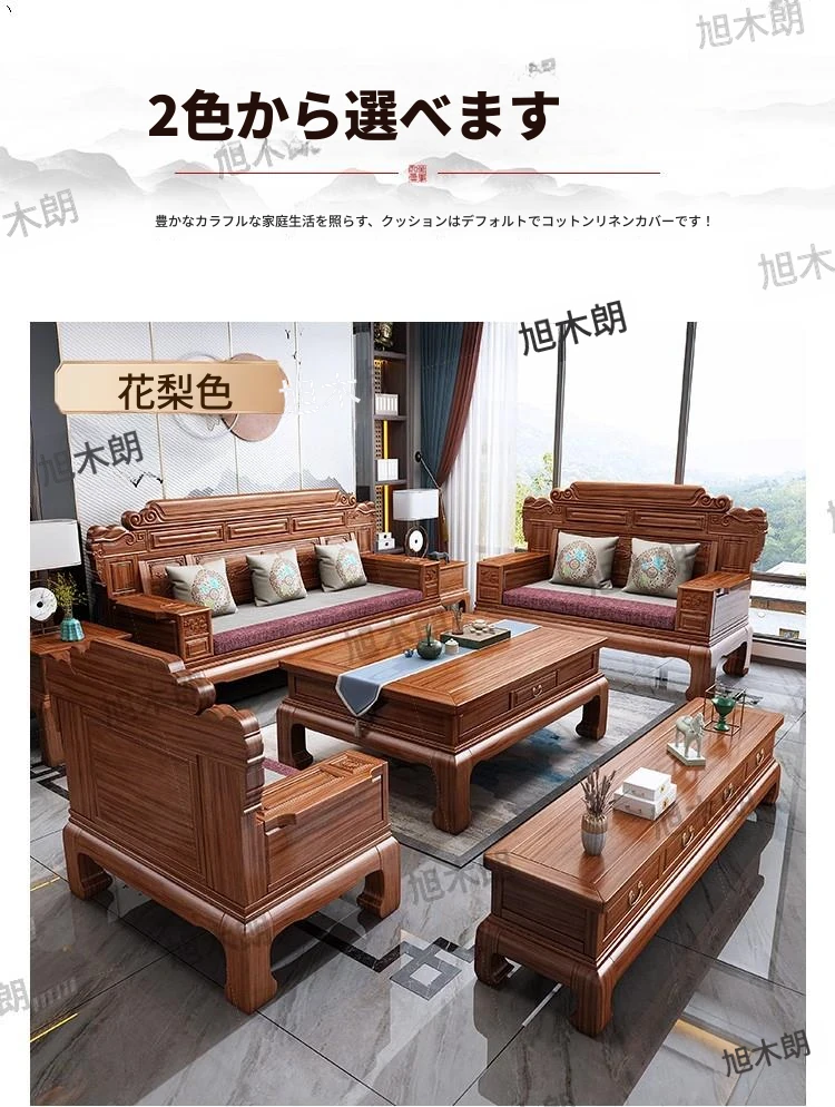 高級感溢れる中式金花梨実木ソファセット - 冬夏両用、古典彫刻デザインの大容量リビング向け。贅沢な赤木の美しさで、あなたの客間を華やかに彩ります。