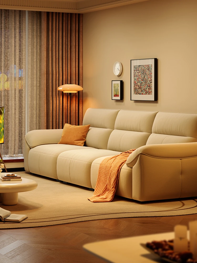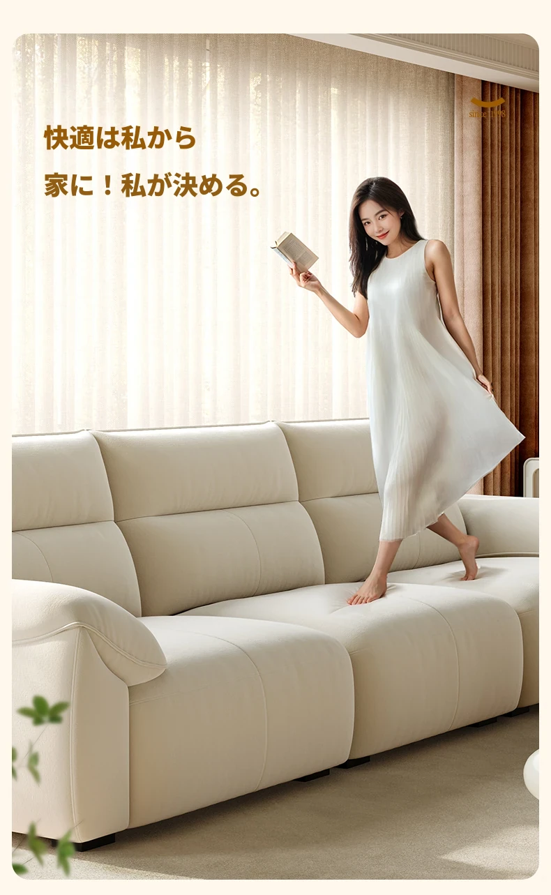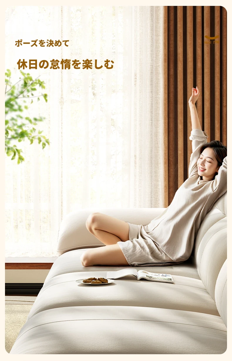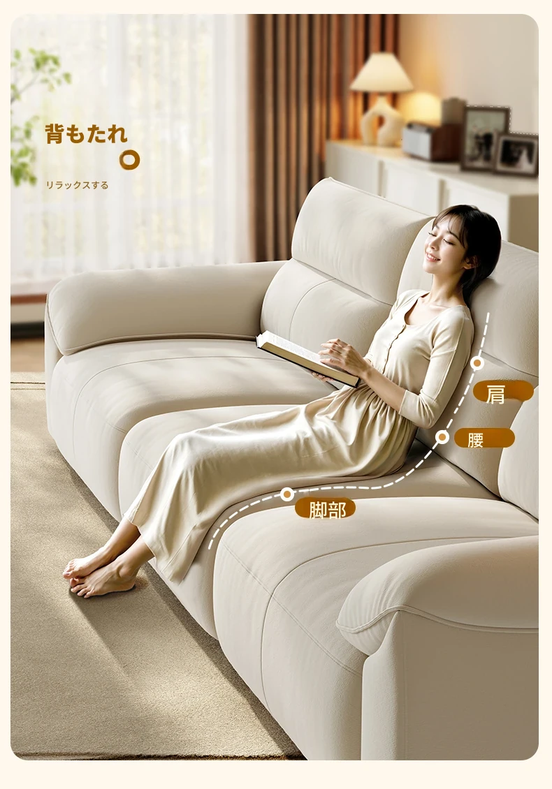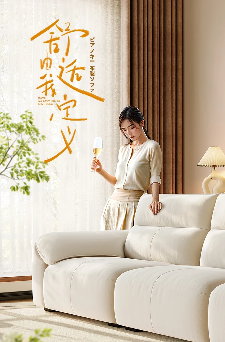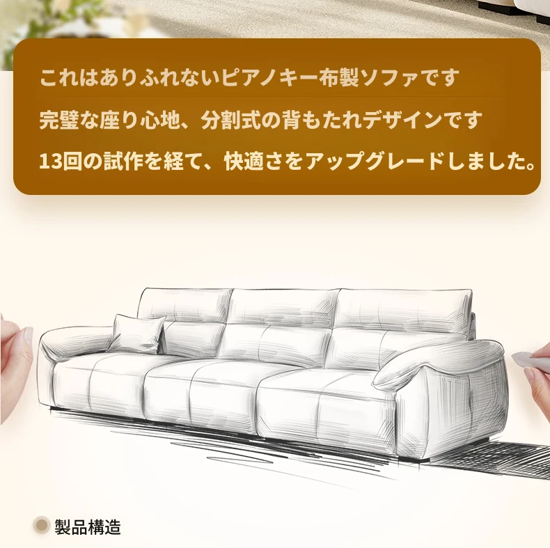 ラグジュアリー感あふれる浪度ピアノキー生地ソファ - 家庭用・小型住居に最適な直排3人掛け、かわいいクリーム風デザインで猫の爪にも強い!おしゃれなリビングを演出します。