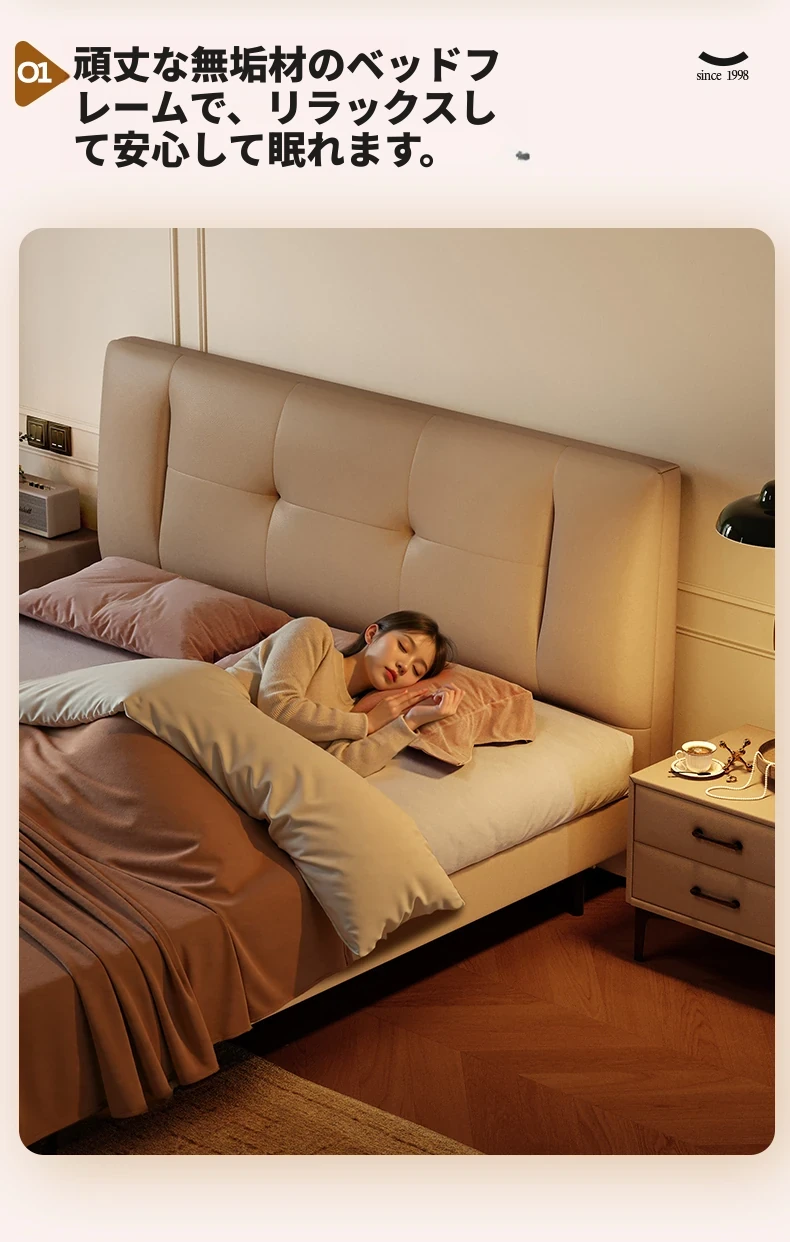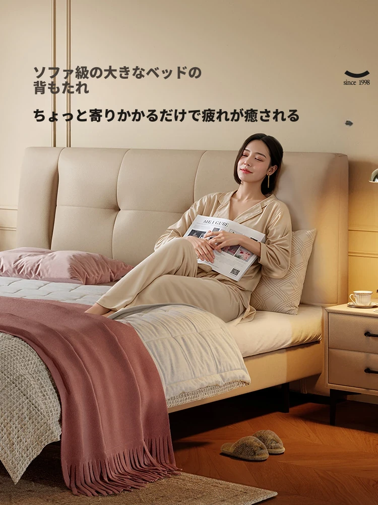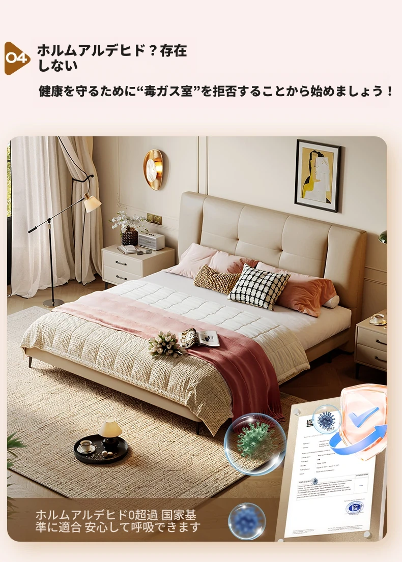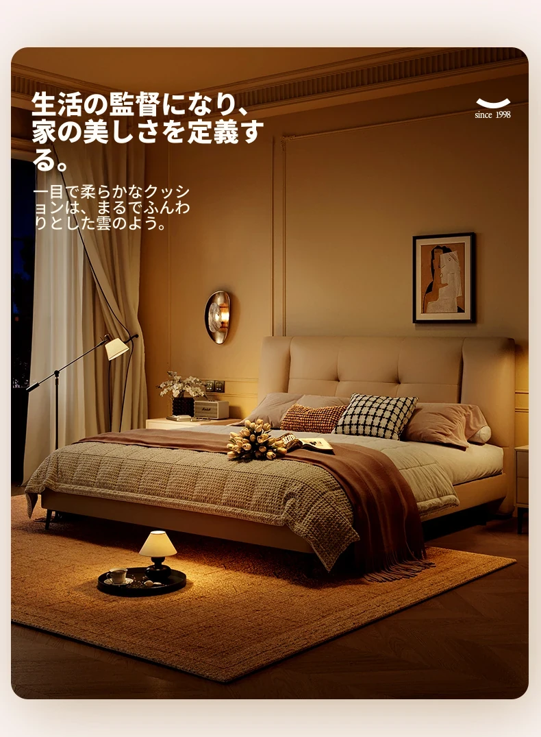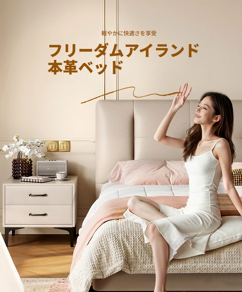 【友達を作ろう】ラグジュアリーなダブルベッド、上質な本革使用のフリーダムアイランド。快適な眠りを提供し、あなたの寝室をスタイリッシュに演出!