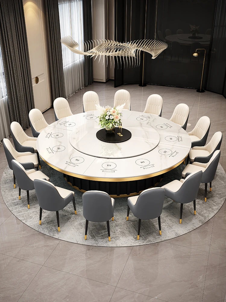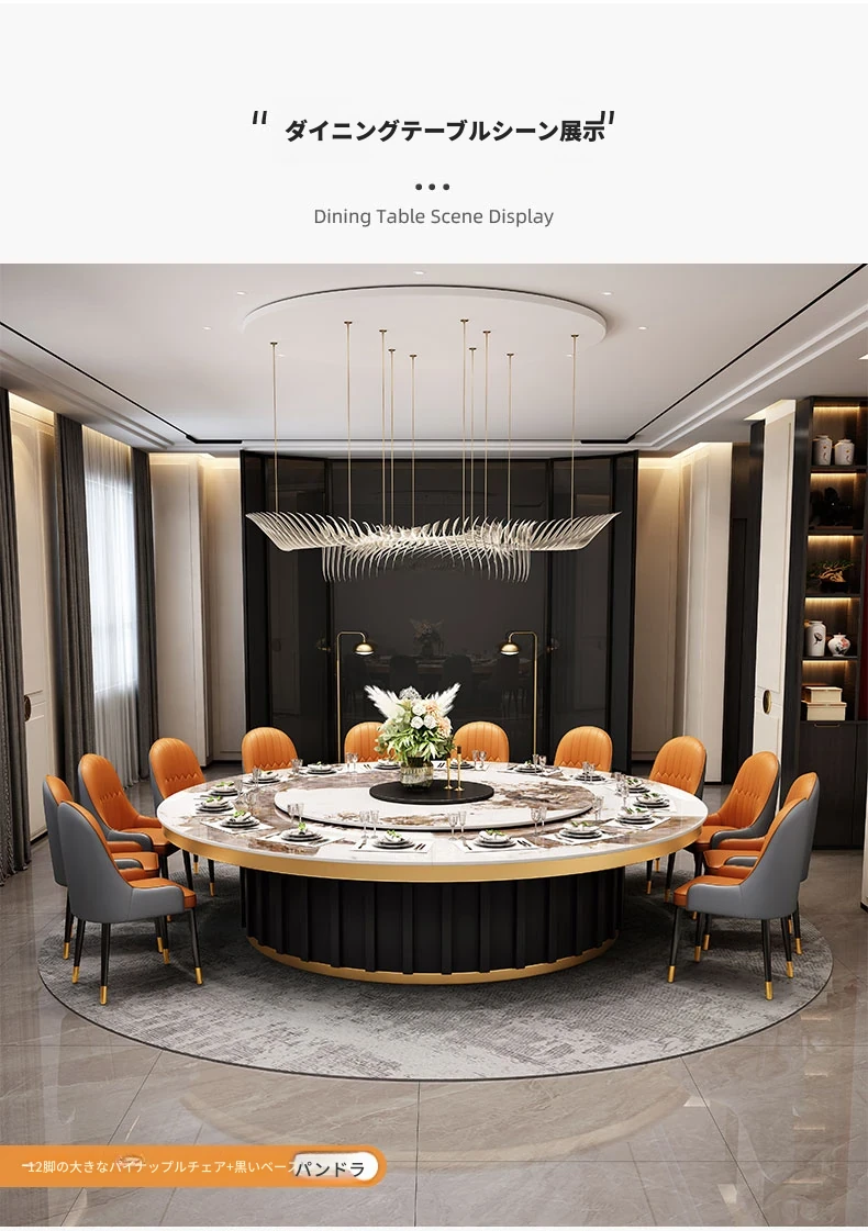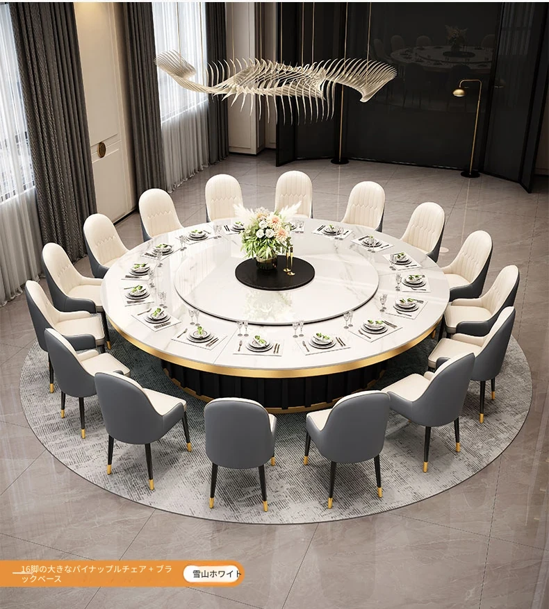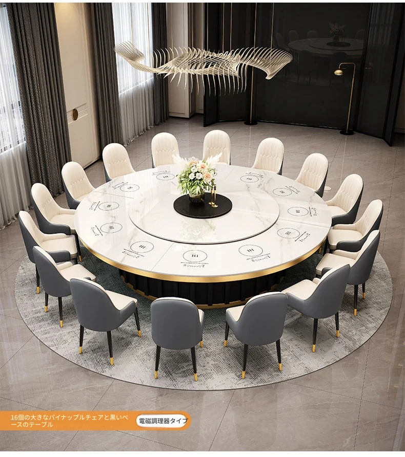 ホテル用電動ダイニングテーブル 大型サークルテーブル 20人用 回転式 軽奢華 モダンシンプル 電磁調理器付き 火鍋テーブル レストラン用テーブル&椅子 セットで贅沢な食事体験を提供!