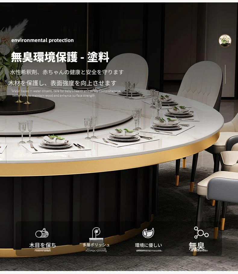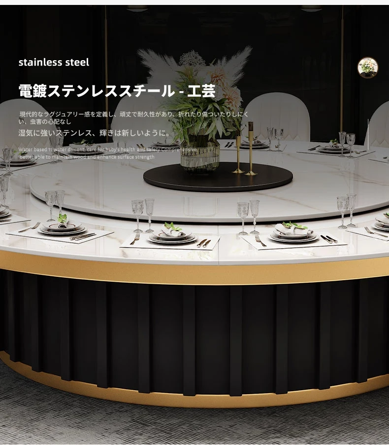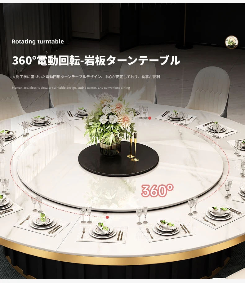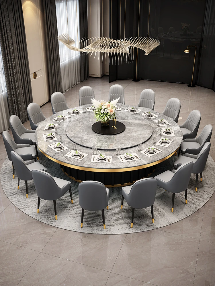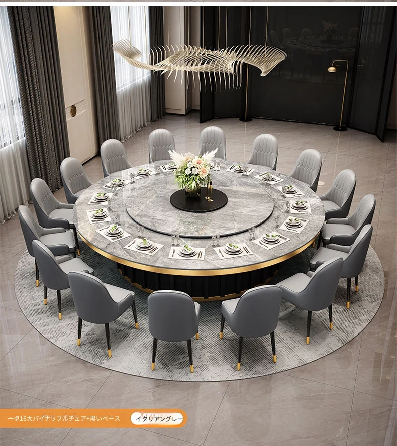 ホテル用電動ダイニングテーブル 大型サークルテーブル 20人用 回転式 軽奢華 モダンシンプル 電磁調理器付き 火鍋テーブル レストラン用テーブル&椅子 セットで贅沢な食事体験を提供!