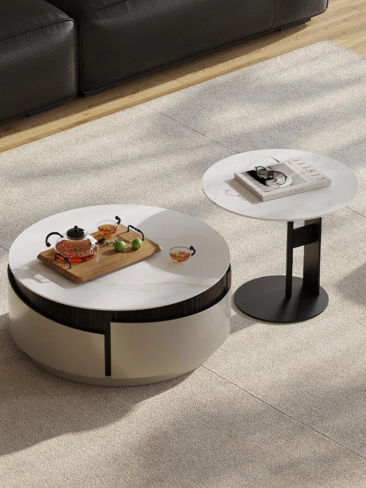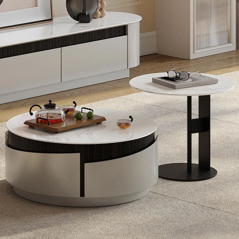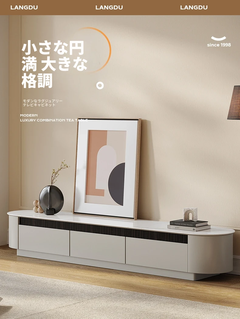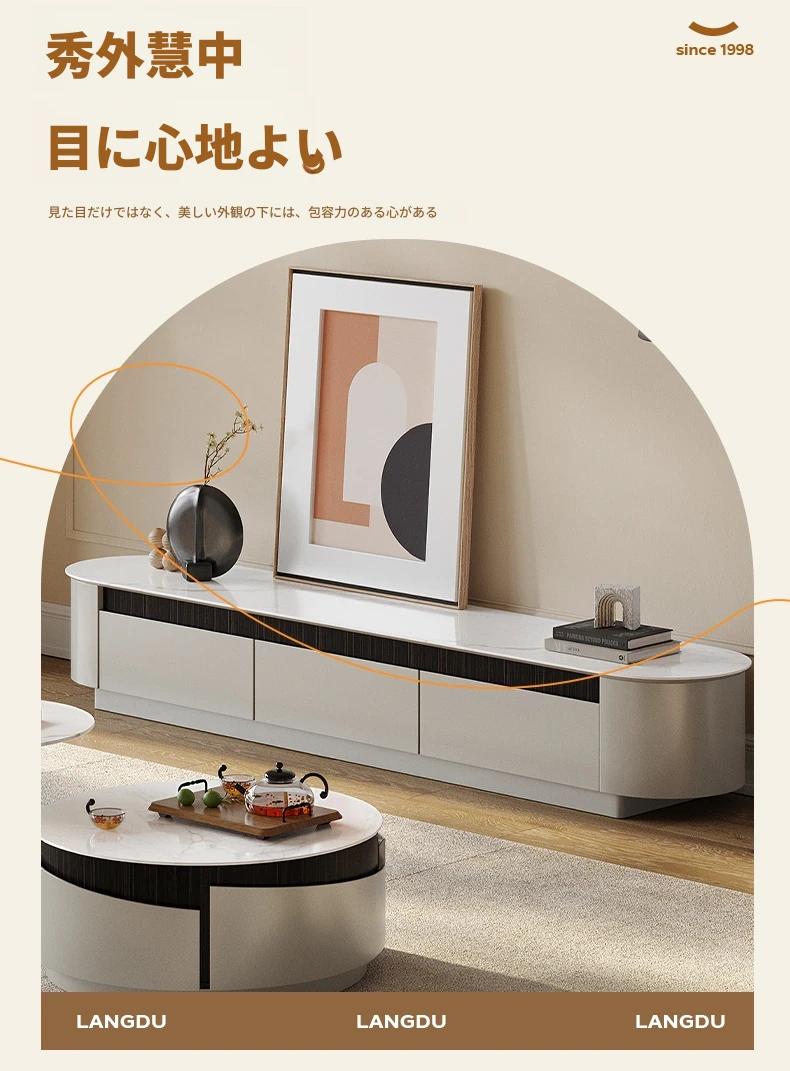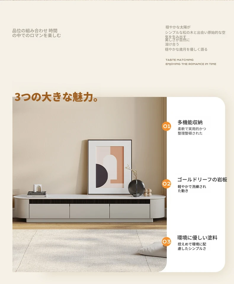 モダンな白いローボードとコーヒーテーブルのセット - 小さなリビングにぴったりなクリーミーなデザインで、スタイリッシュな空間を演出します!