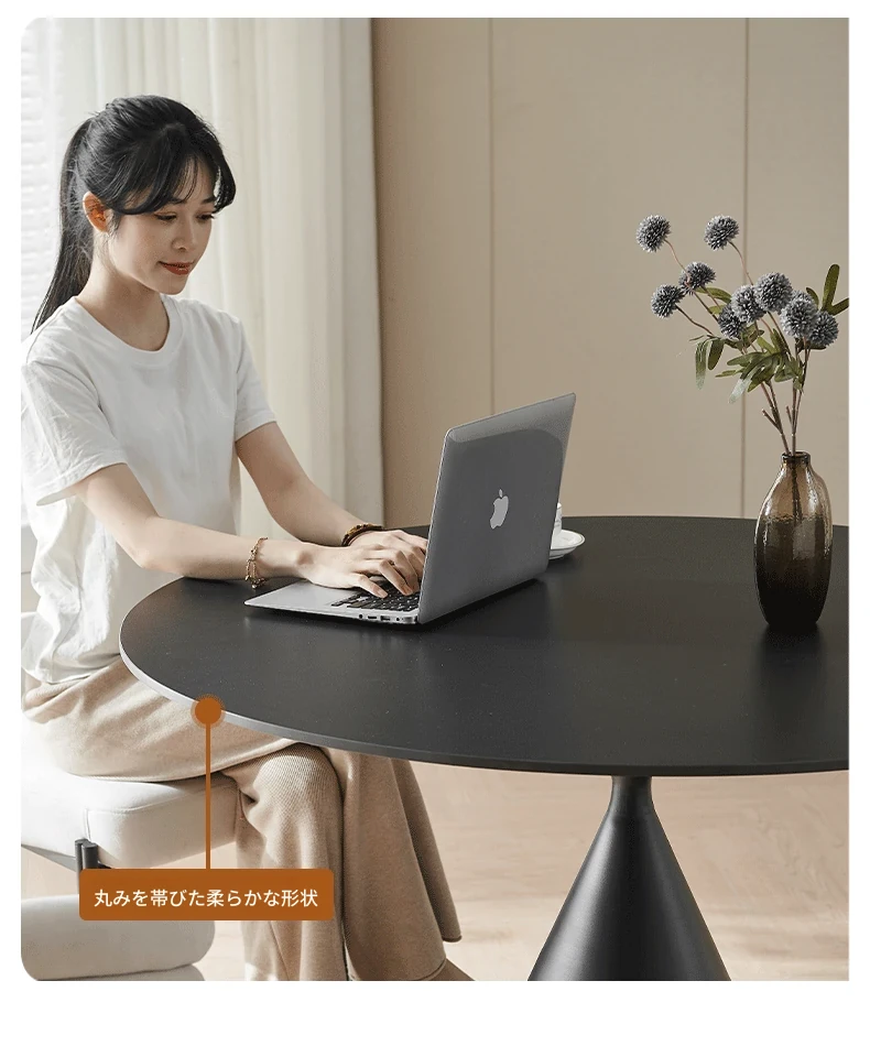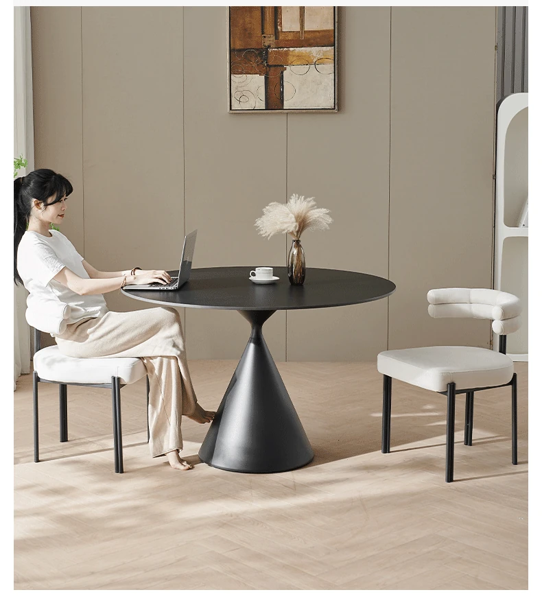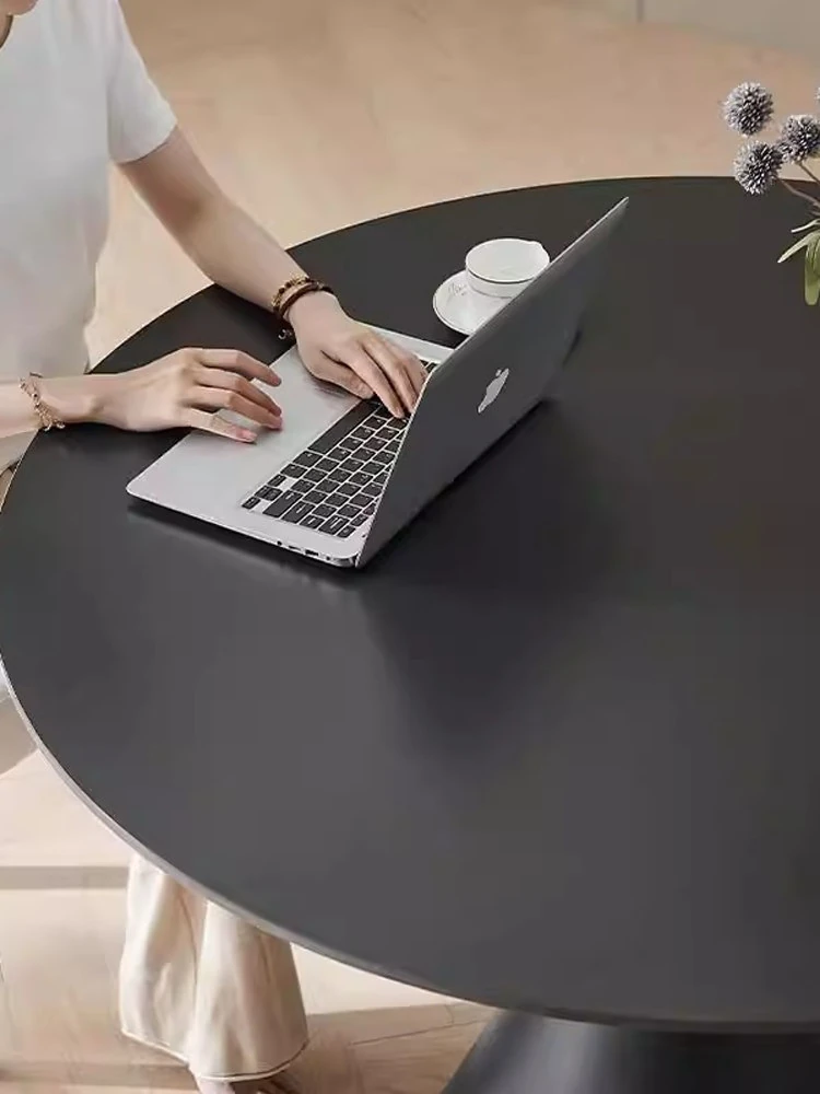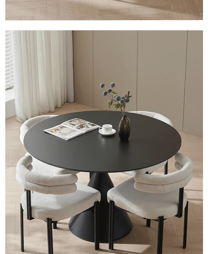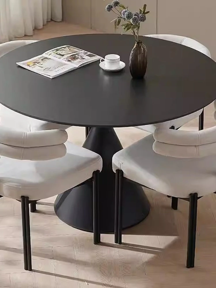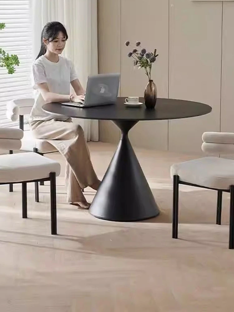 モダンシンプルな岩板丸テーブル|小型住居に最適な黒いレトロな円形ダイニングテーブル|おしゃれなカフェやビジネスミーティングにもぴったり!