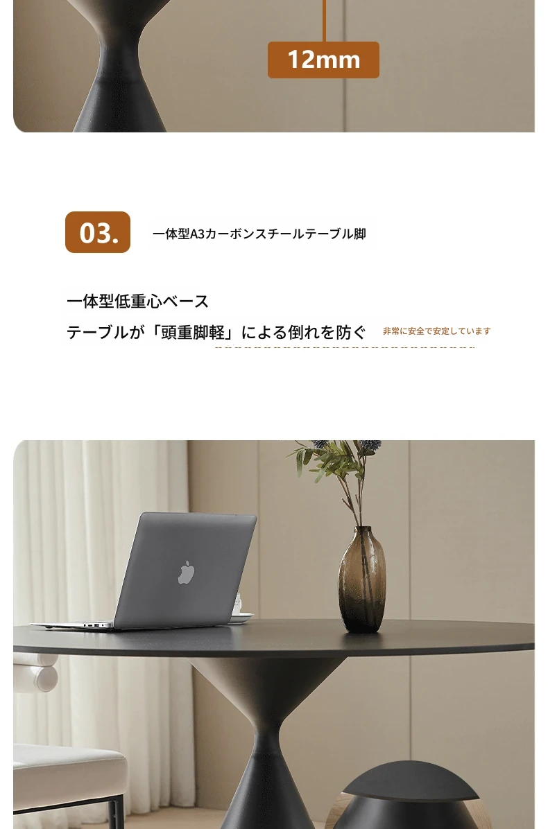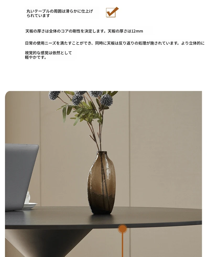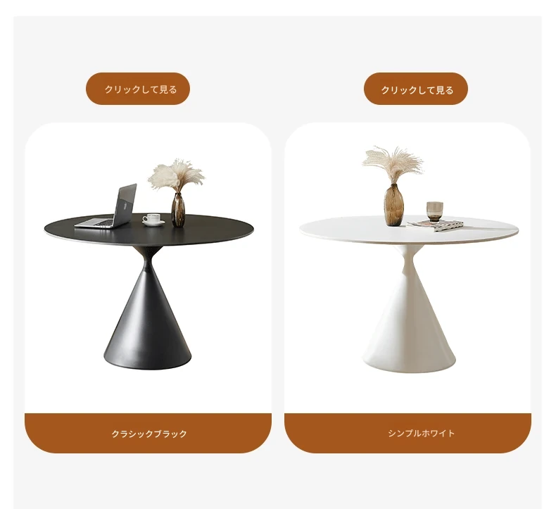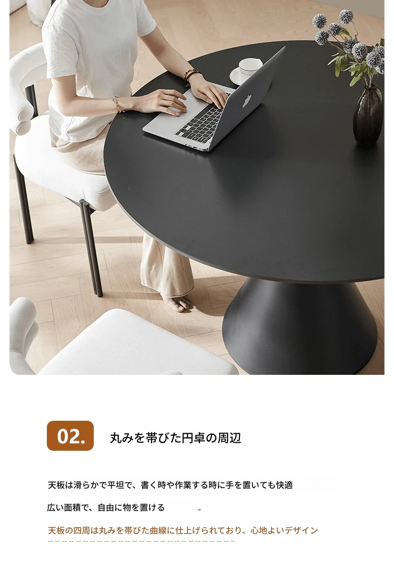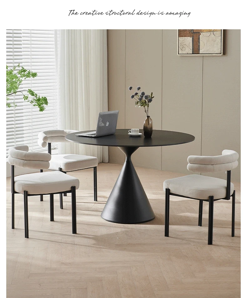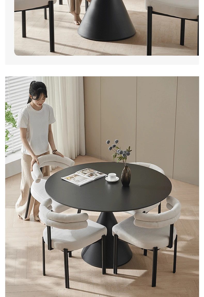 モダンシンプルな岩板丸テーブル|小型住居に最適な黒いレトロな円形ダイニングテーブル|おしゃれなカフェやビジネスミーティングにもぴったり!