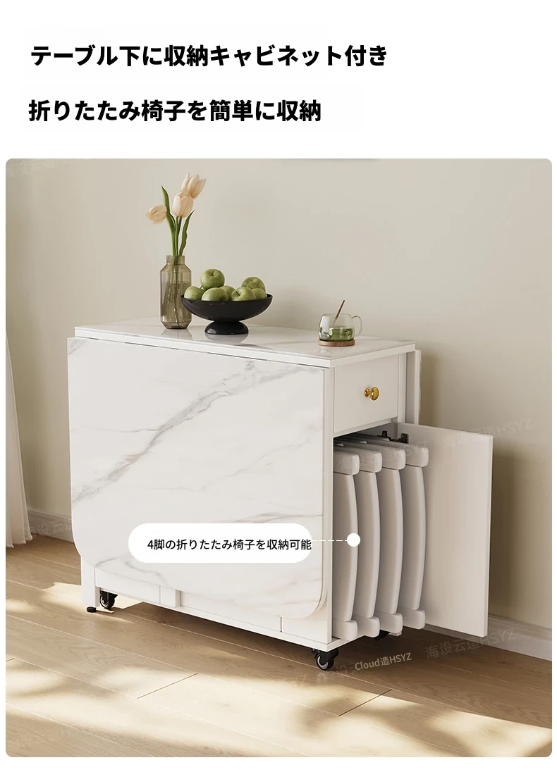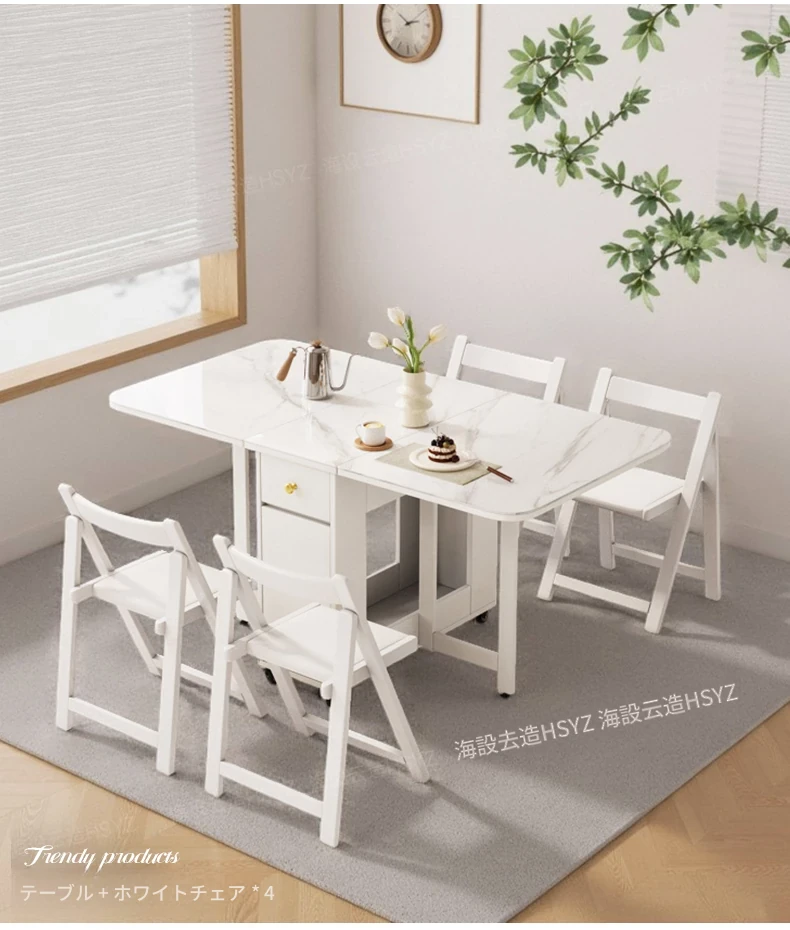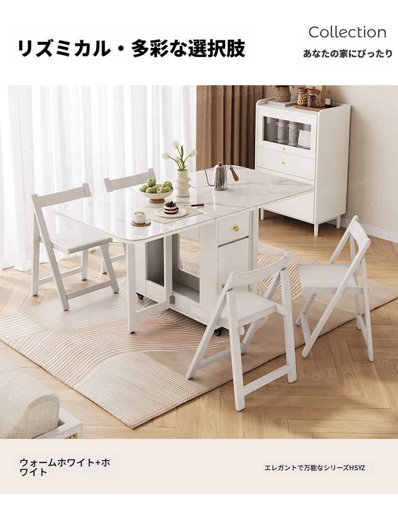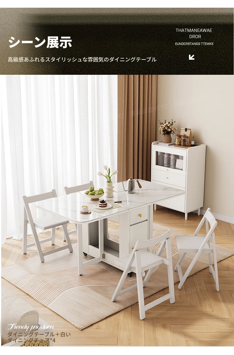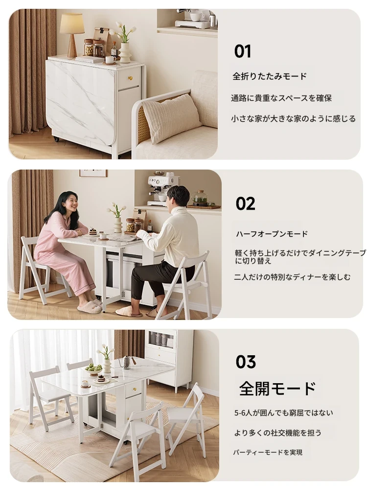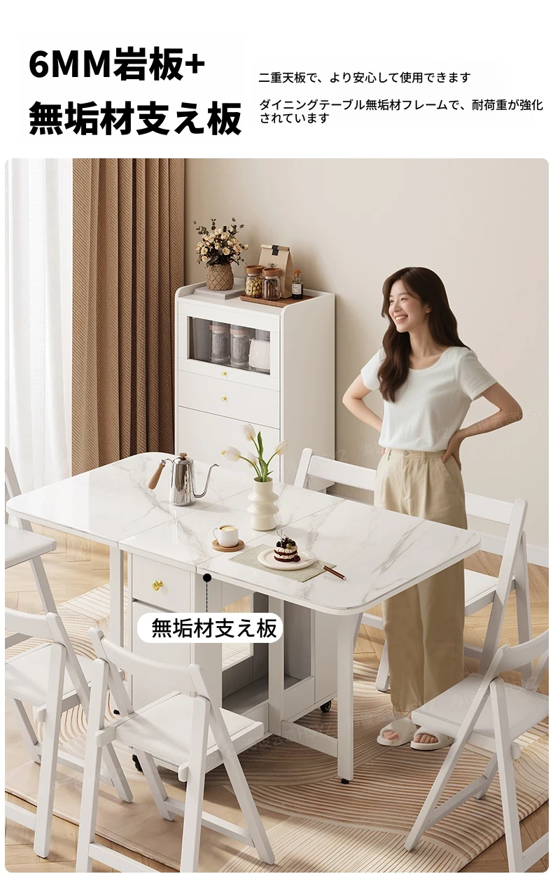 2025年新作!モダンミニマリストの岩板ダイニングテーブル&チェアセット - 家庭用クリームカラー、折りたたみ式で小スペースにも最適な多機能テーブル!おしゃれで実用的な食事空間を実現!