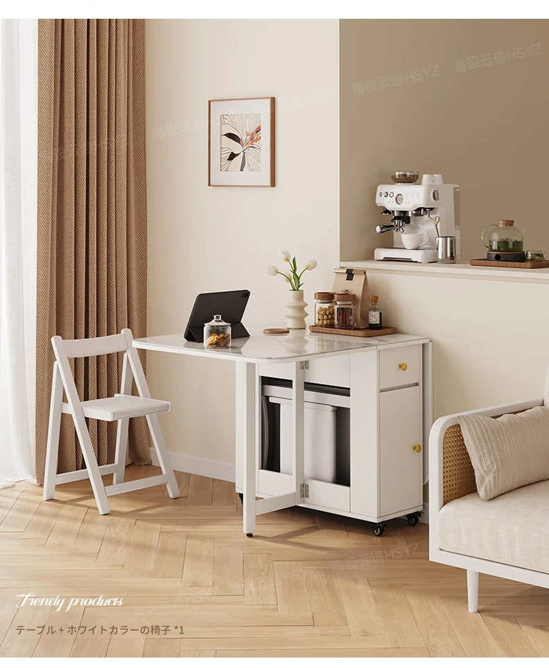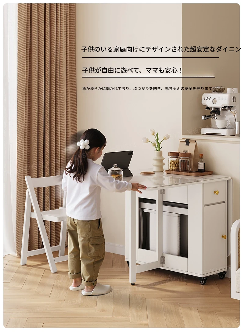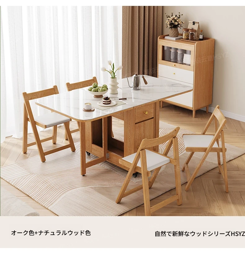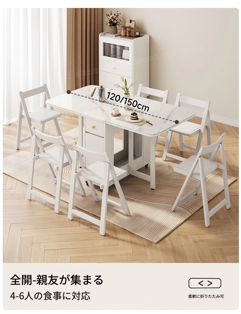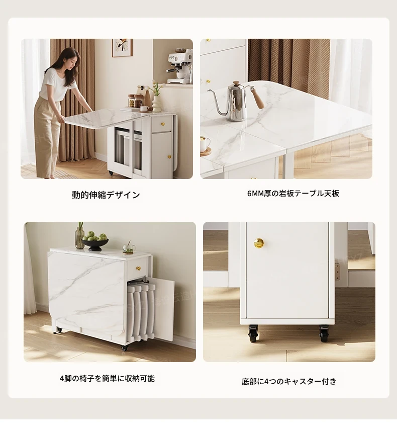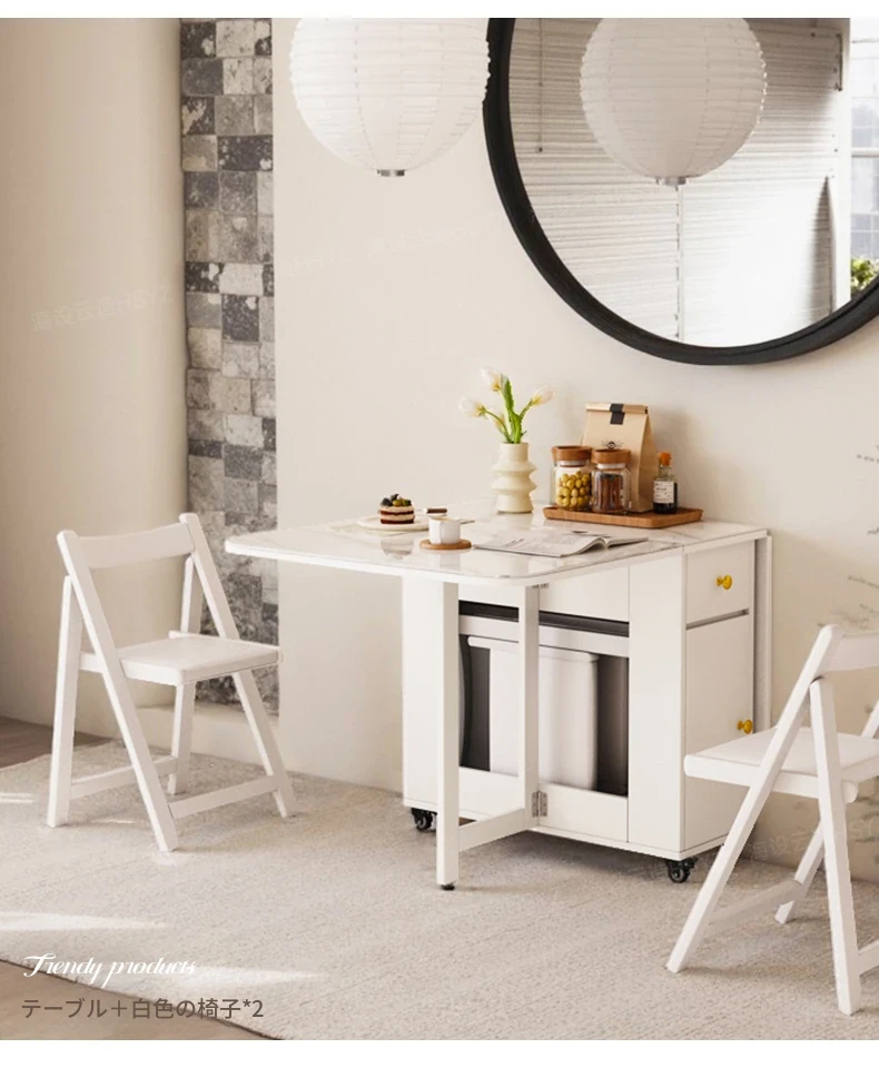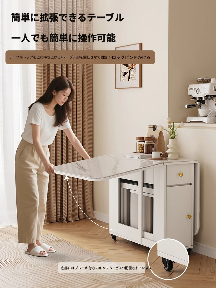 2025年新作!モダンミニマリストの岩板ダイニングテーブル&チェアセット - 家庭用クリームカラー、折りたたみ式で小スペースにも最適な多機能テーブル!おしゃれで実用的な食事空間を実現!