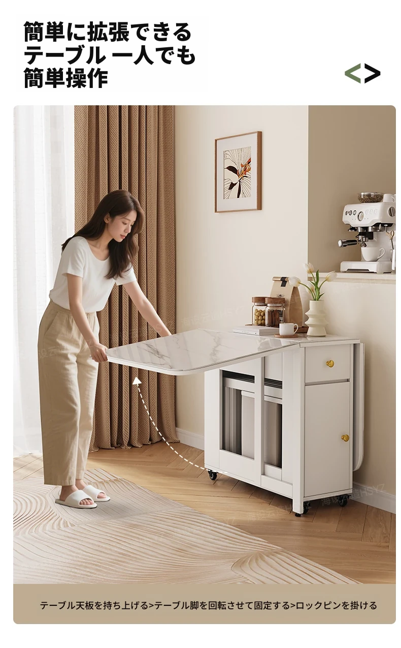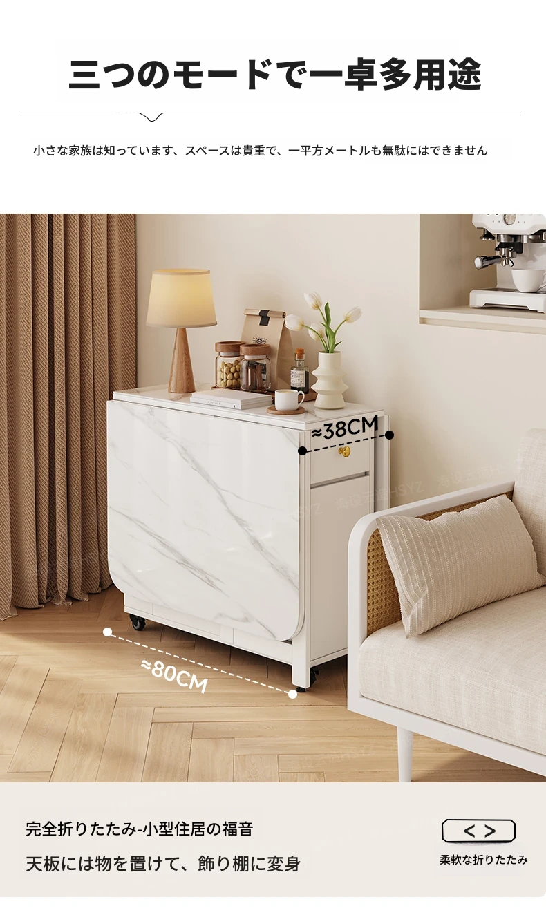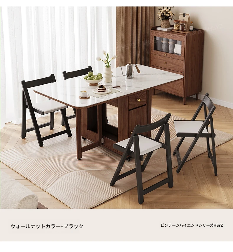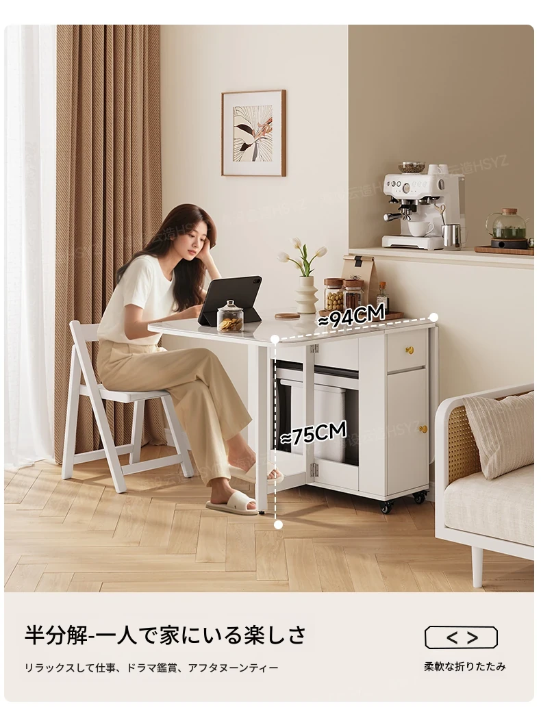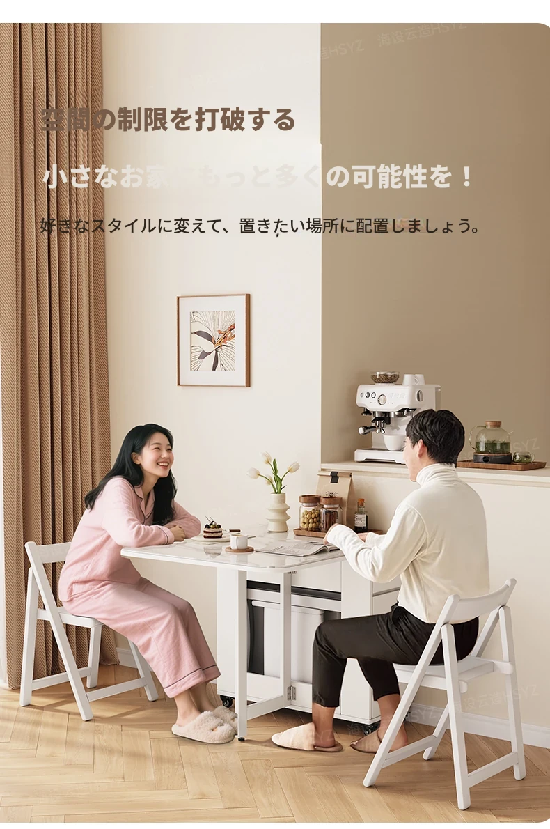 2025年新作!モダンミニマリストの岩板ダイニングテーブル&チェアセット - 家庭用クリームカラー、折りたたみ式で小スペースにも最適な多機能テーブル!おしゃれで実用的な食事空間を実現!