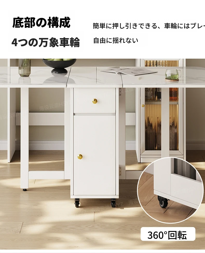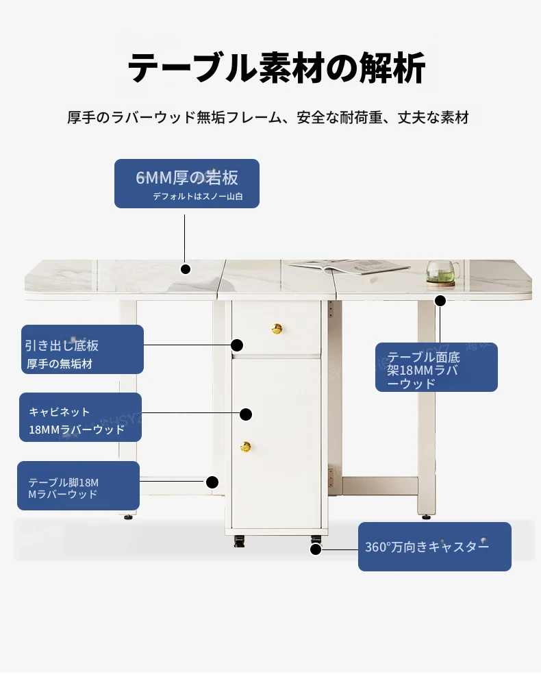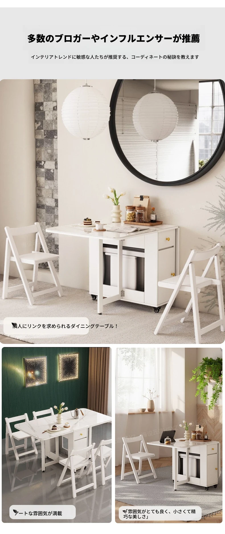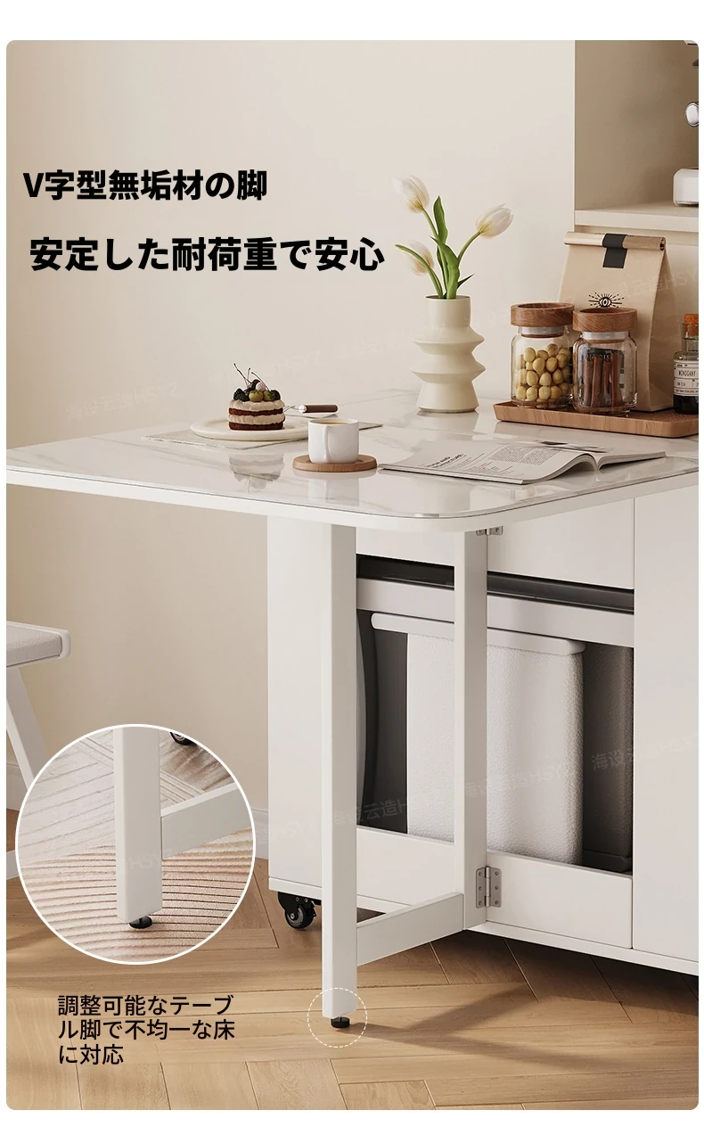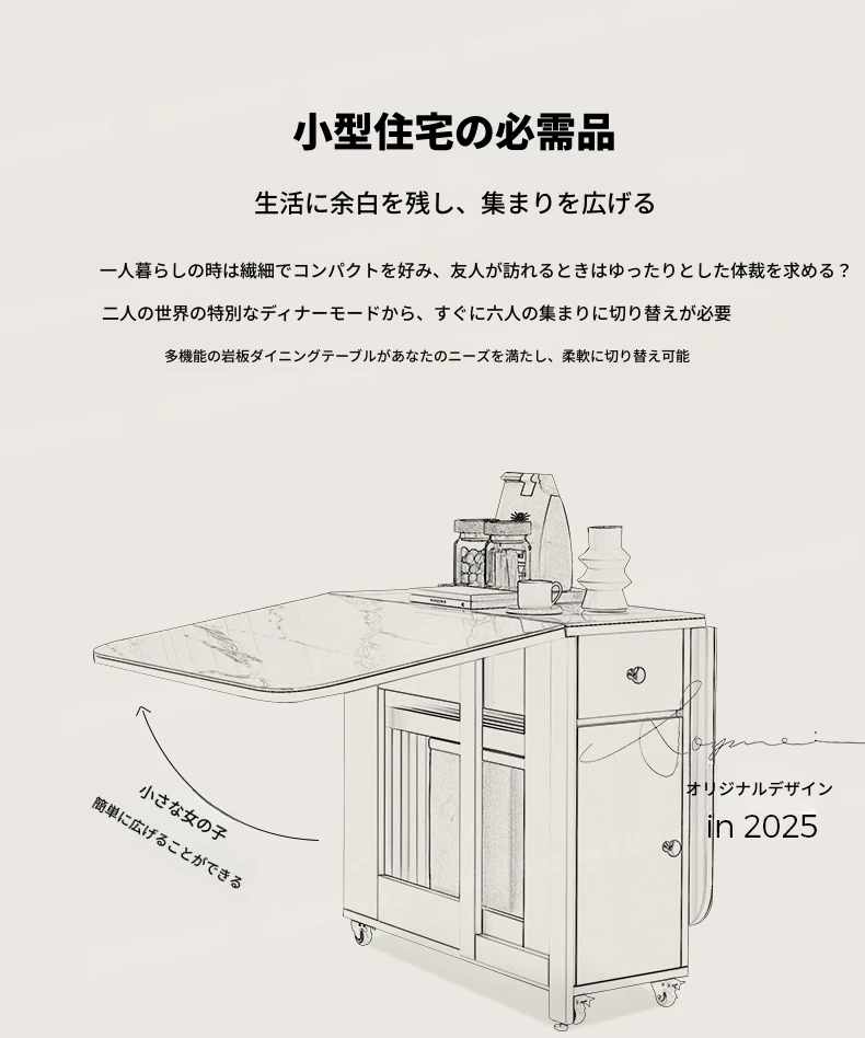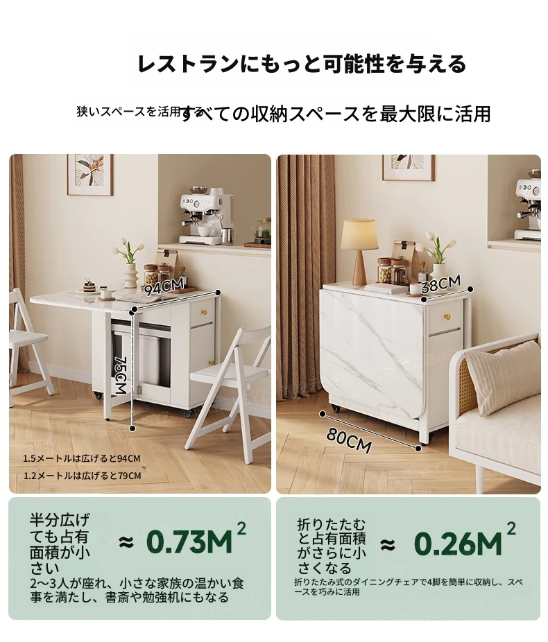 2025年新作!モダンミニマリストの岩板ダイニングテーブル&チェアセット - 家庭用クリームカラー、折りたたみ式で小スペースにも最適な多機能テーブル!おしゃれで実用的な食事空間を実現!
