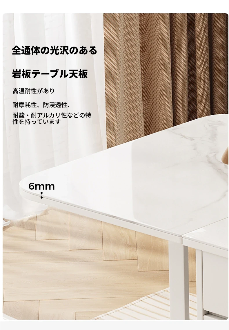 0.8*1.5 岩板単独ダイニングテーブル暖白色+6ダイニングチェア白色