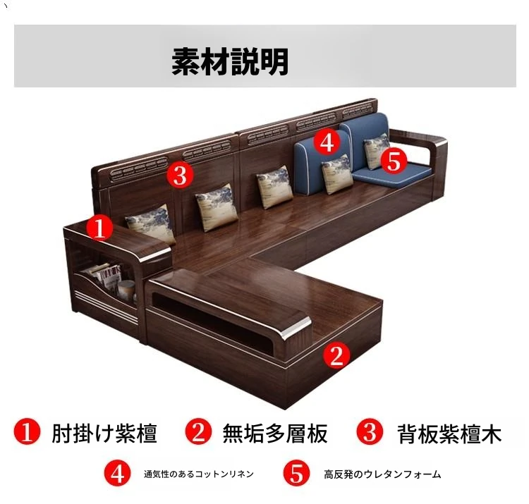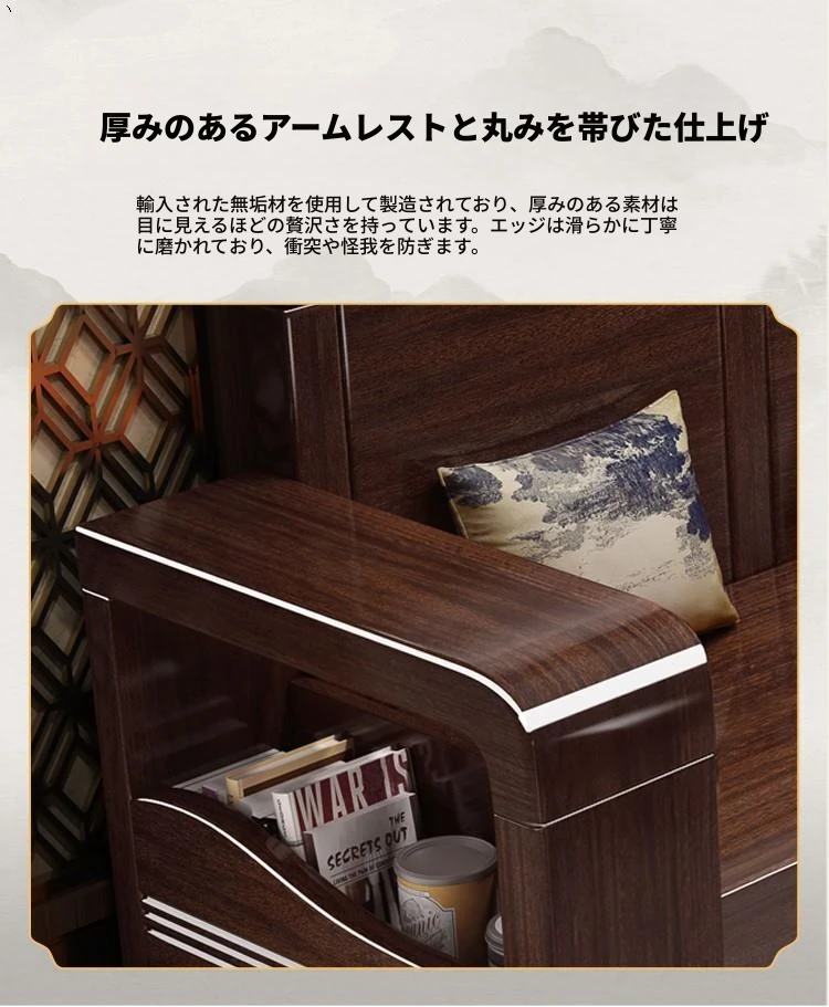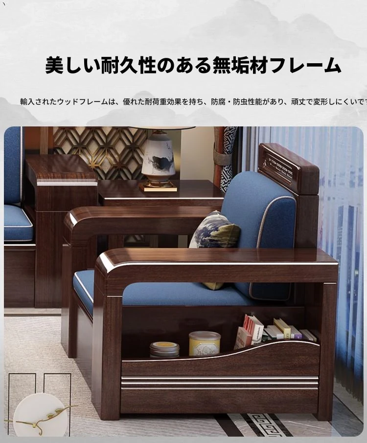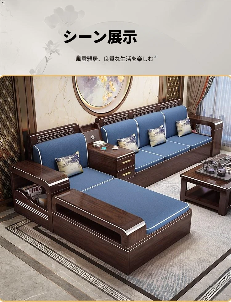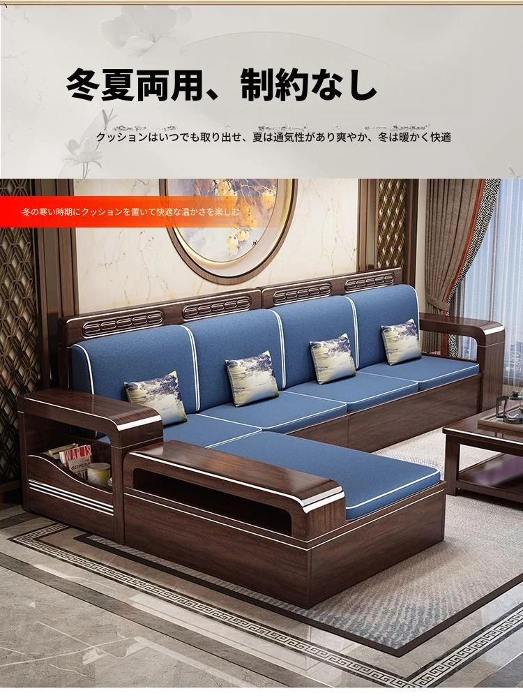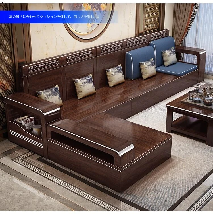 紫金檀木の無垢材を使用した、モダンでシンプルなリビング用ソファ。収納機能付きで、冬と夏の両方に対応したコンビネーションソファ。限られたスペースでもスタイリッシュにおしゃれを楽しめます!