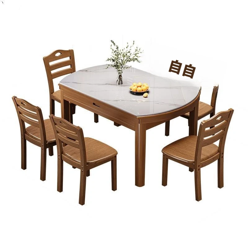 【アップグレード四軌道】一卓六椅+岩板回転盤+電磁炉